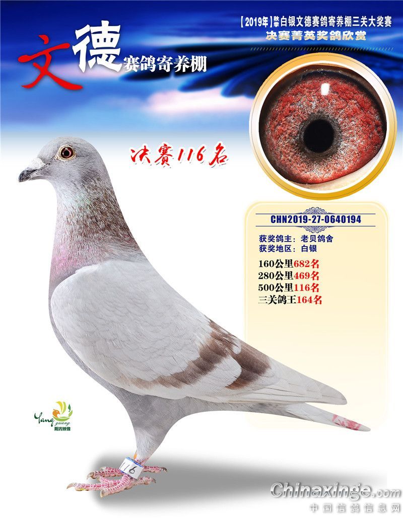 白银文德赛鸽寄养棚获奖鸽101-150名欣赏