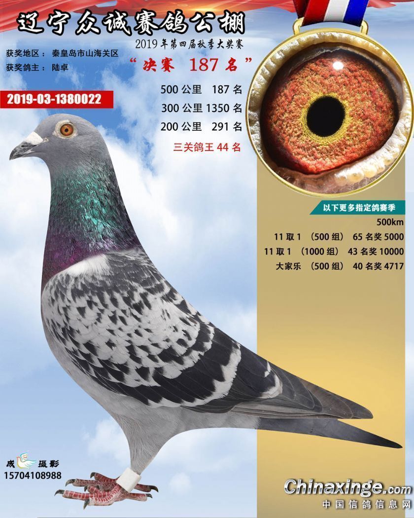 辽宁众诚公棚获奖鸽欣赏181-240名