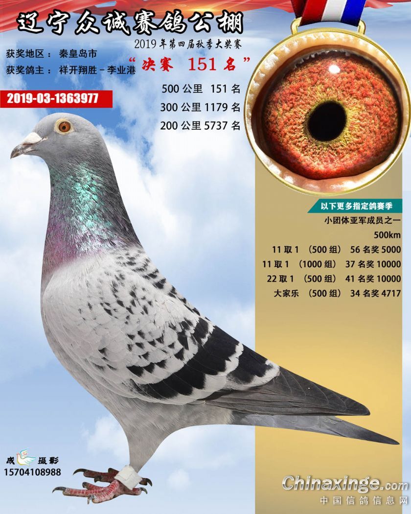 辽宁众诚公棚获奖鸽欣赏121-180名