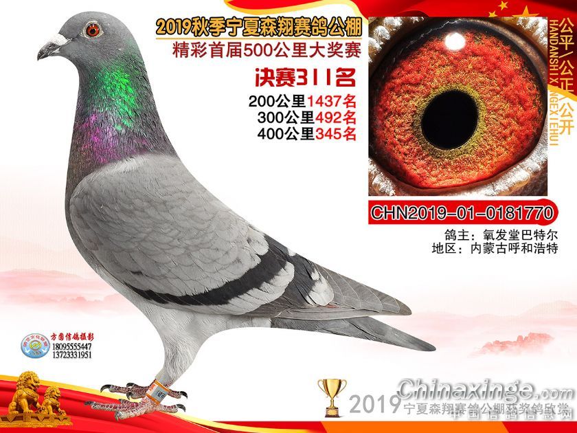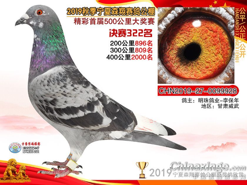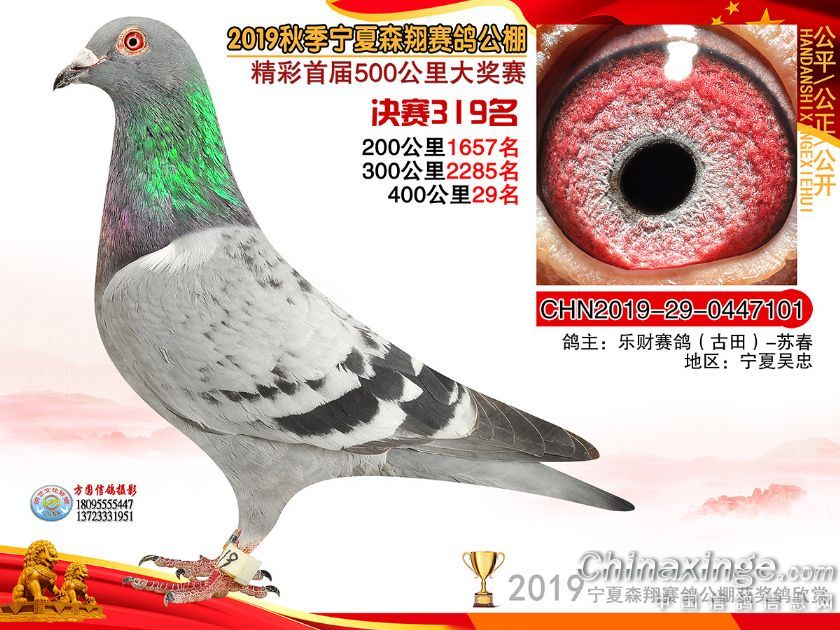 2019年秋季宁夏森翔赛鸽公棚获奖鸽照片301-330