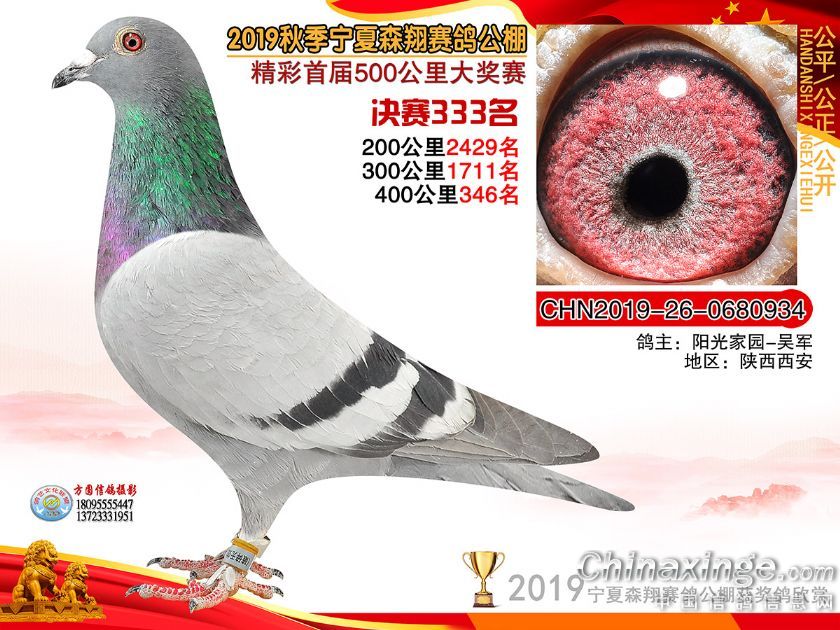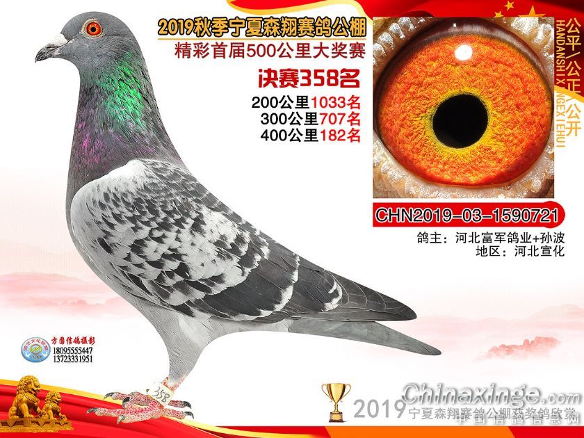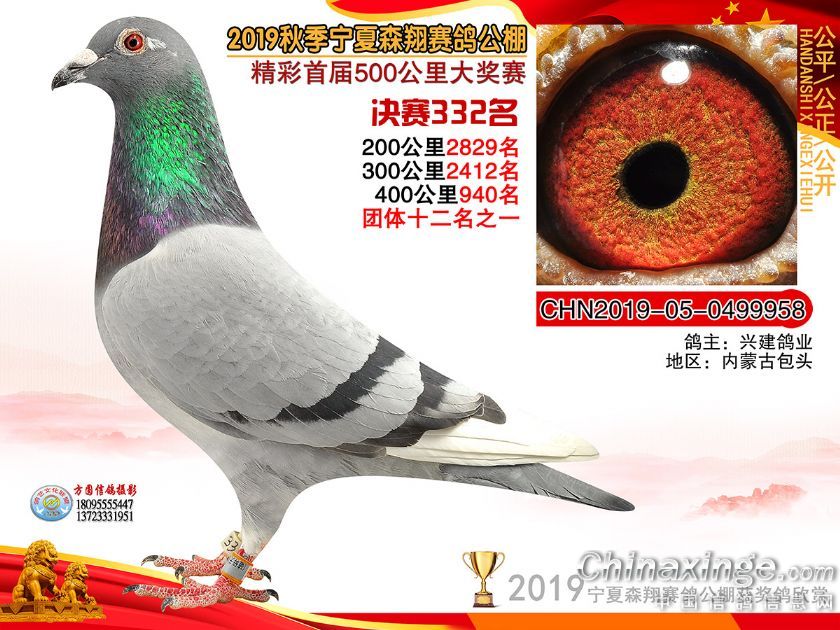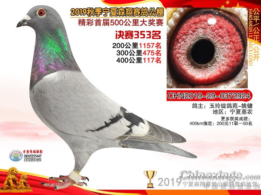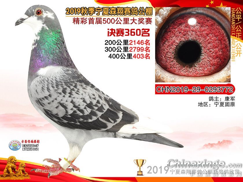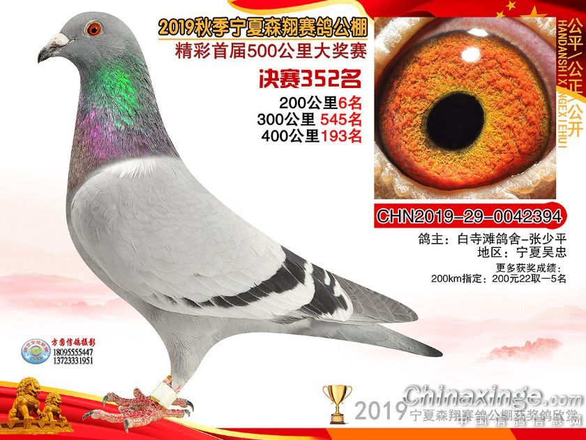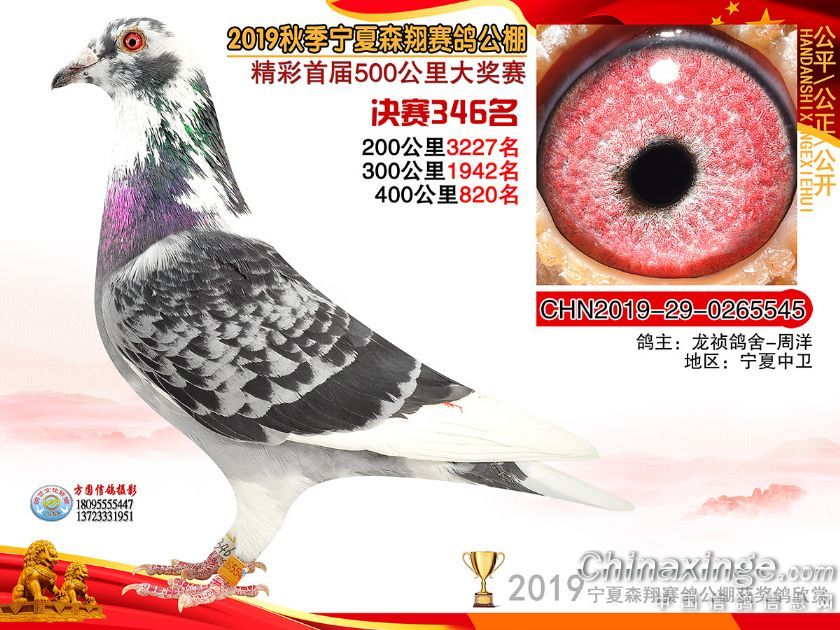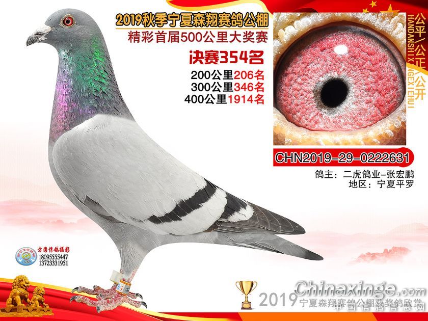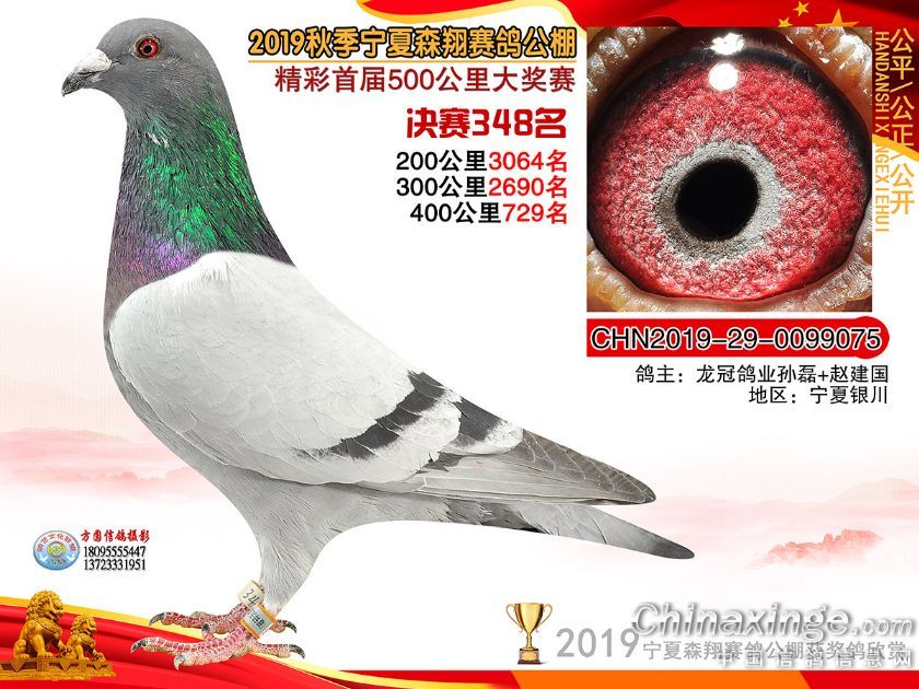 作品说明: 2019年秋季宁夏森翔赛鸽公棚获奖鸽照片331-360