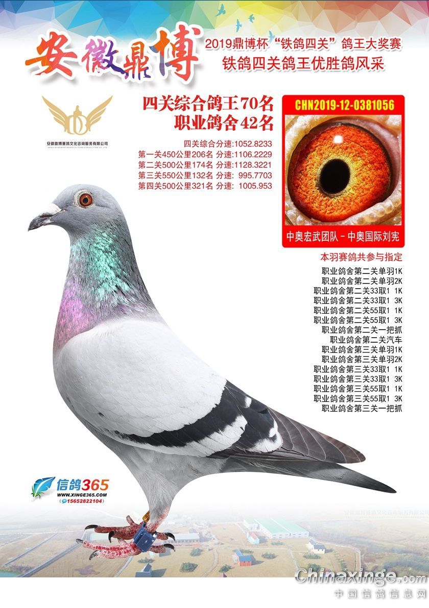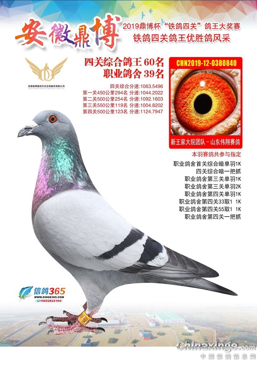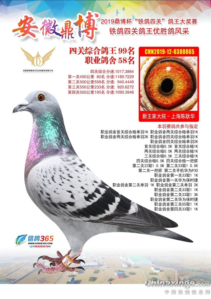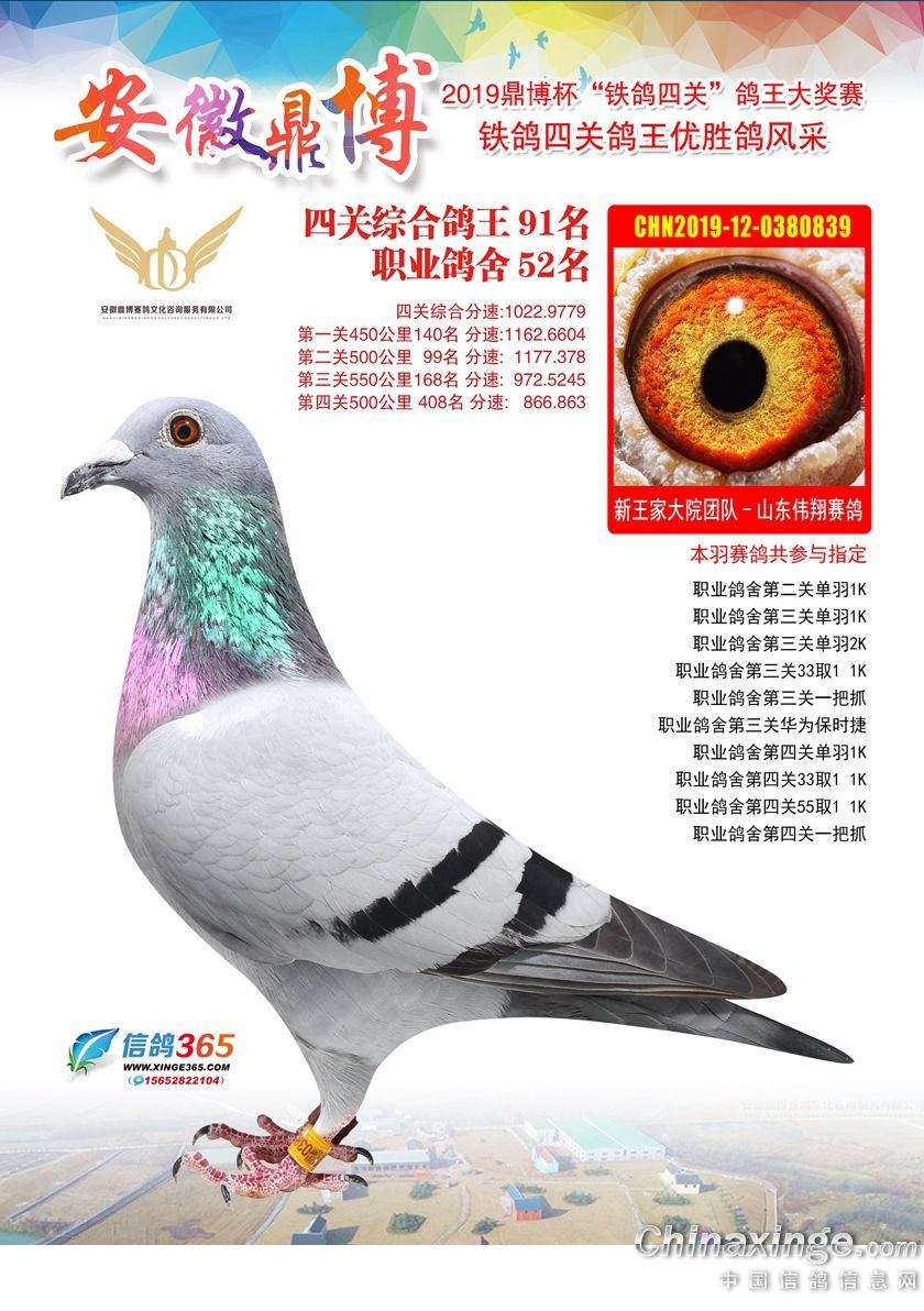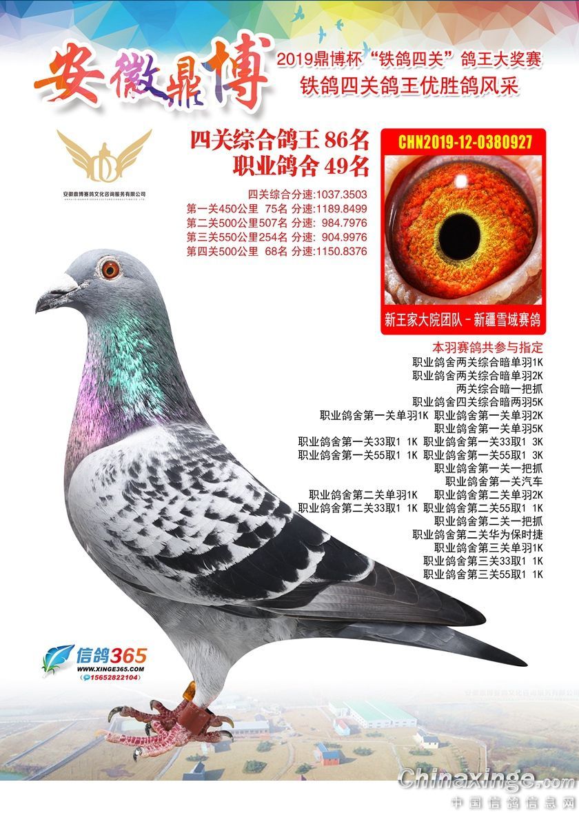 作品说明: 安徽鼎博赛鸽俱乐部2019年铁鸽四关鸽王51-100名