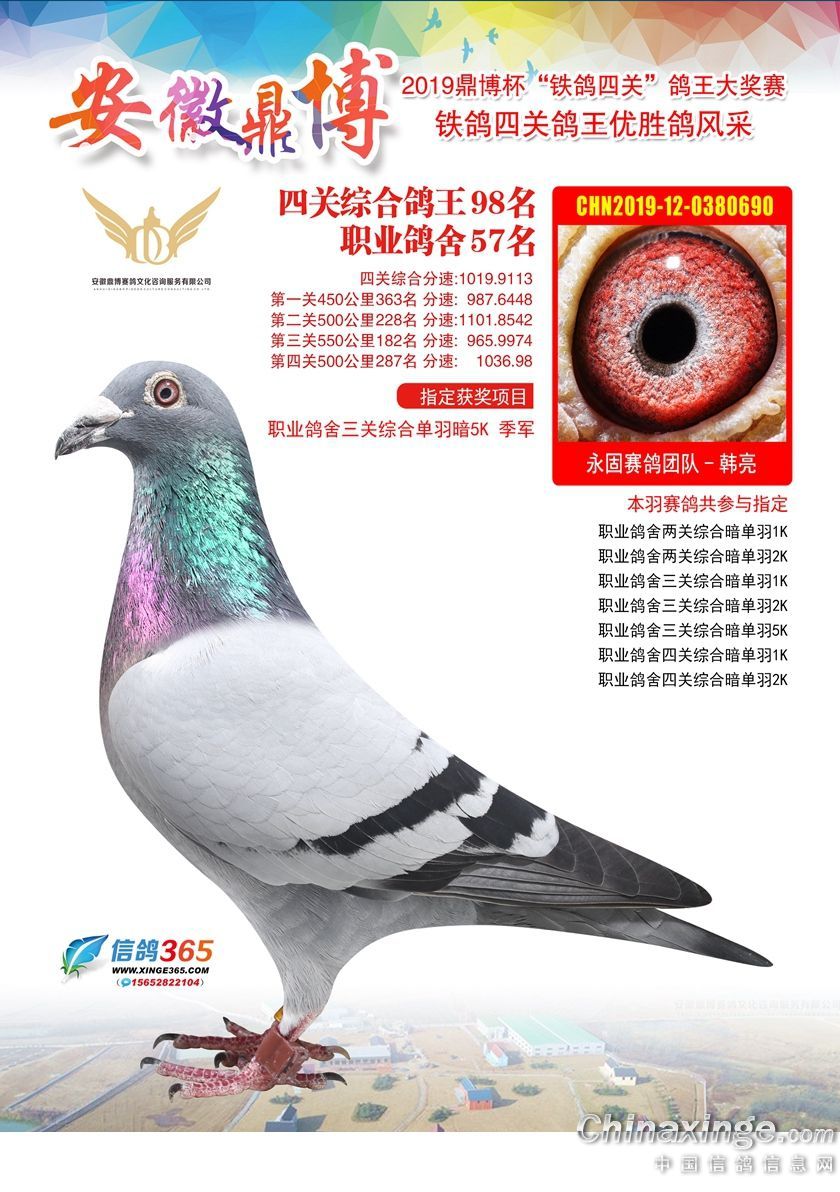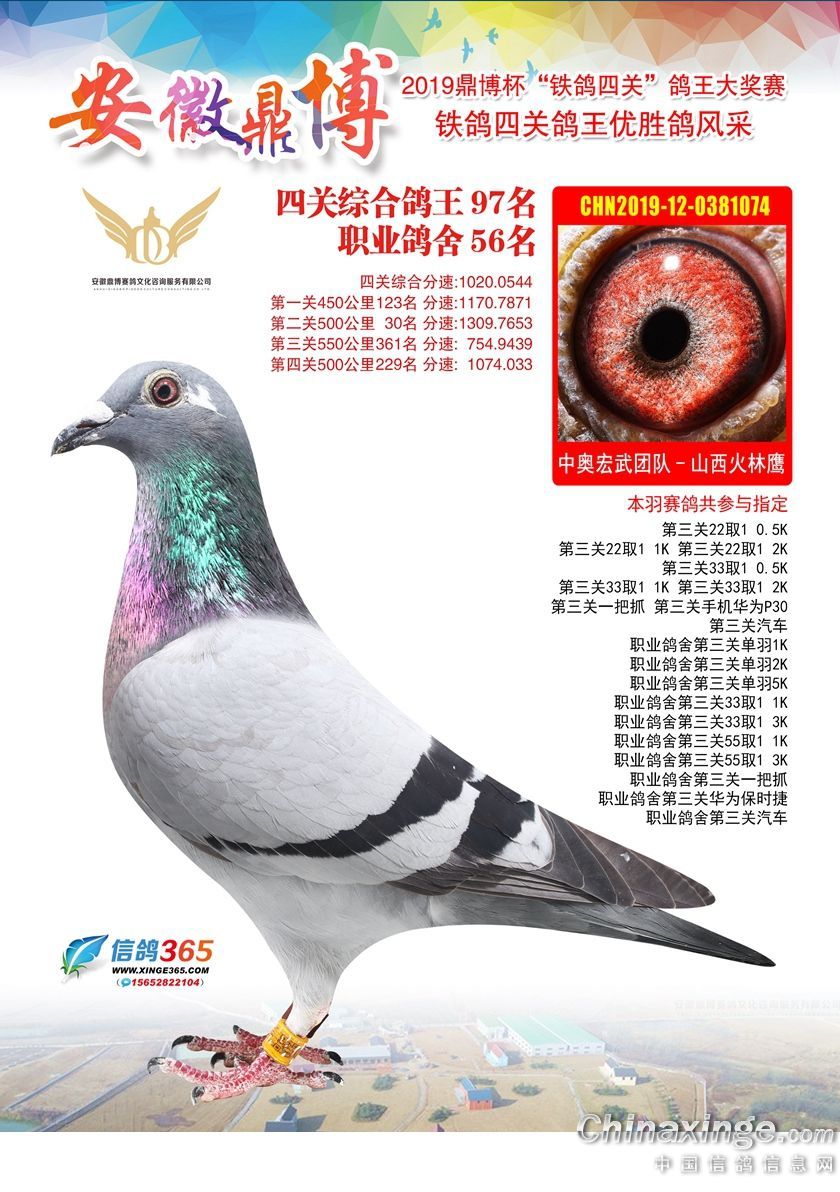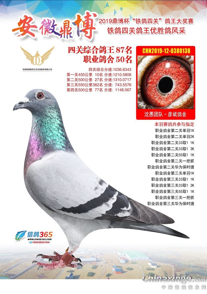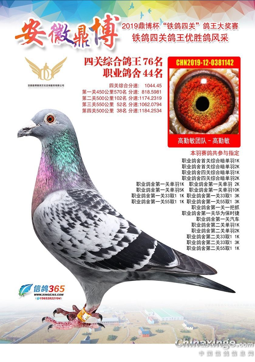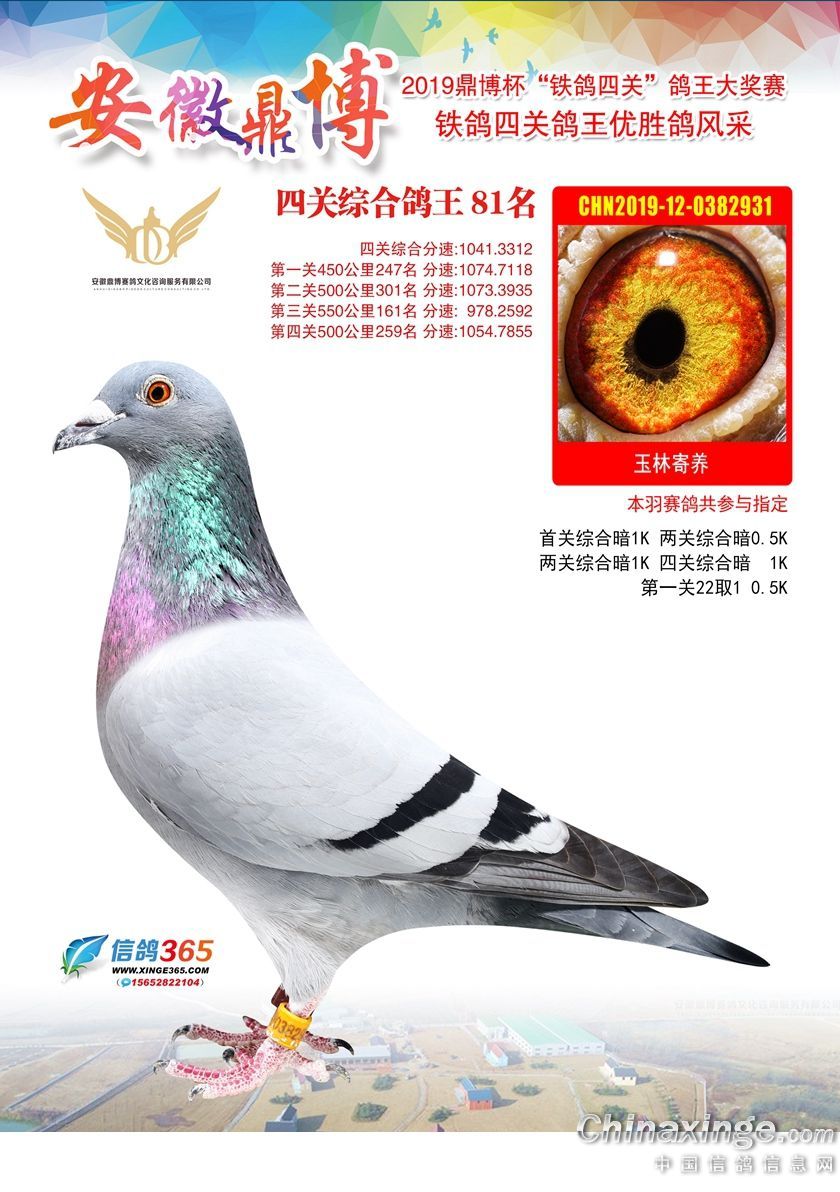 作品说明: 安徽鼎博赛鸽俱乐部2019年铁鸽四关鸽王51-100名