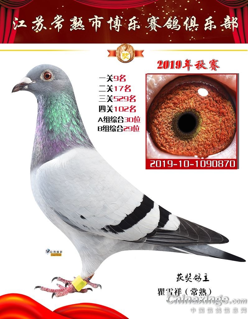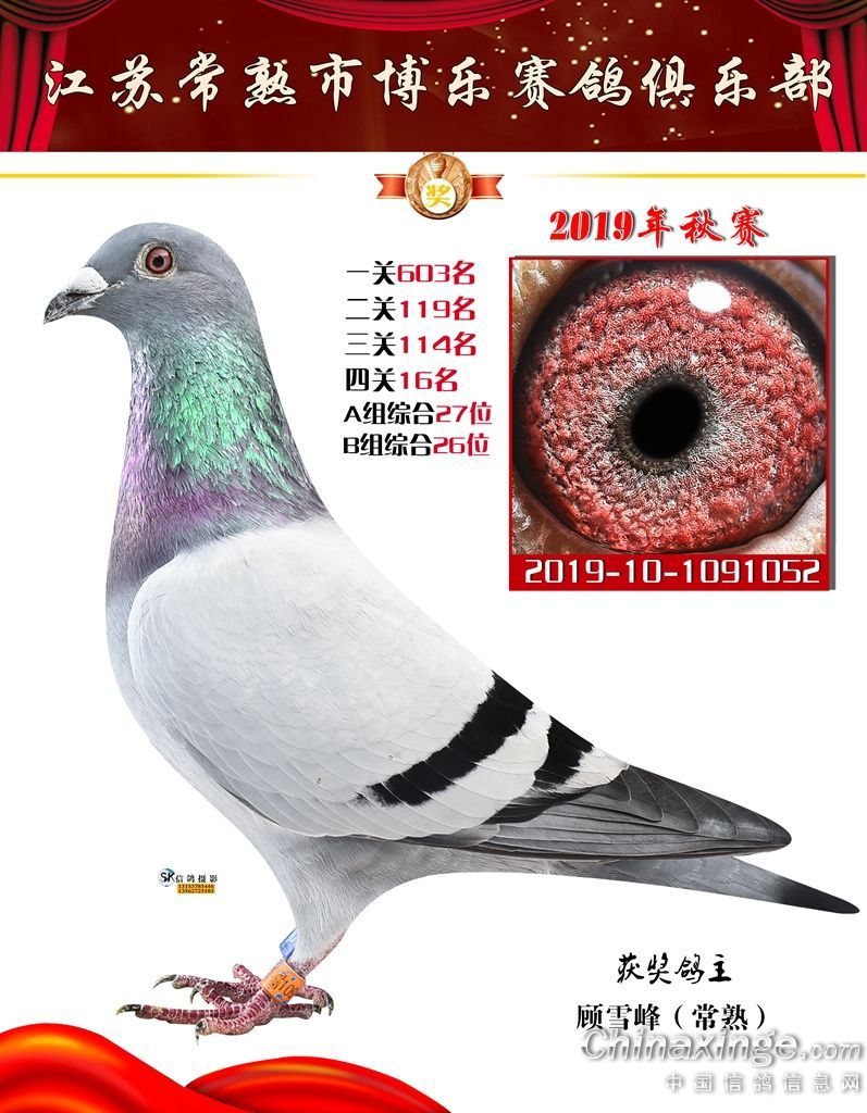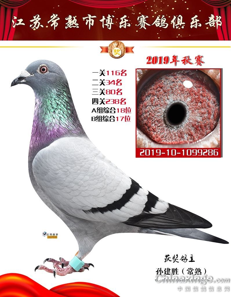 2019年秋江苏常熟市博乐赛鸽俱乐部获奖鸽欣赏1-30名