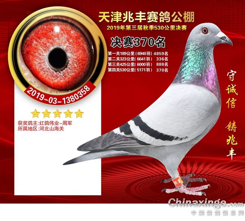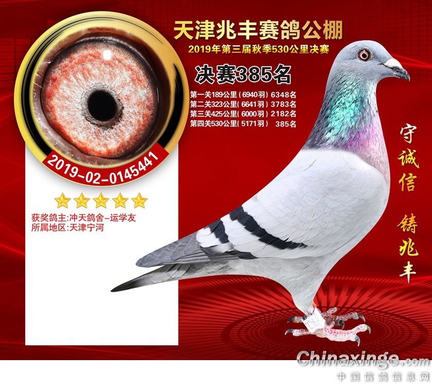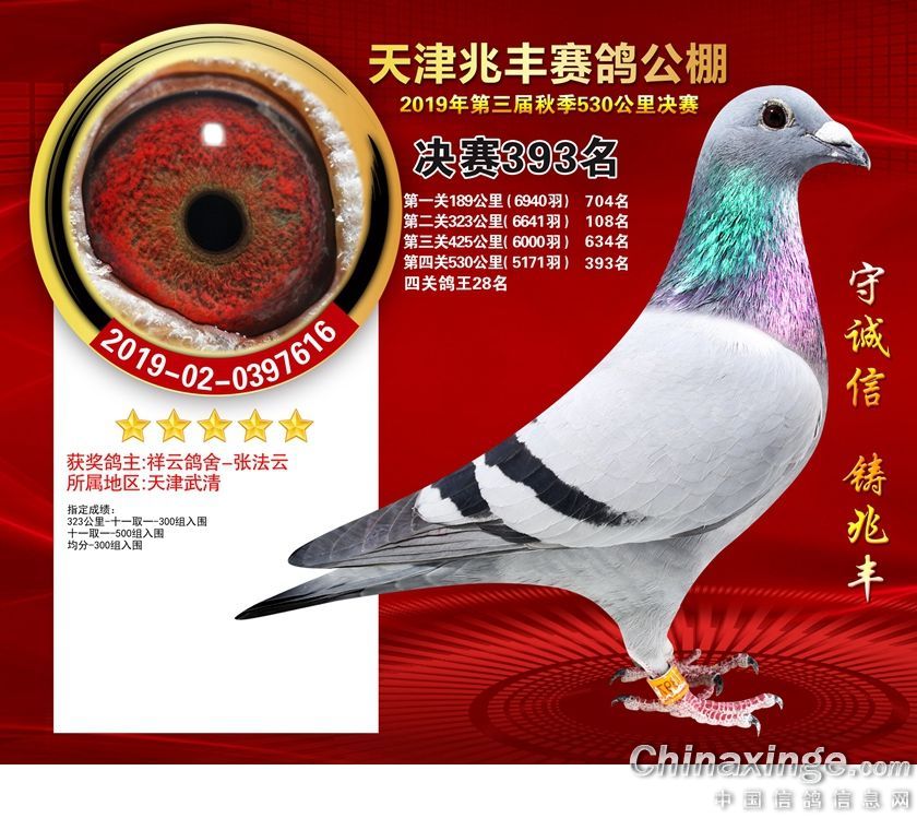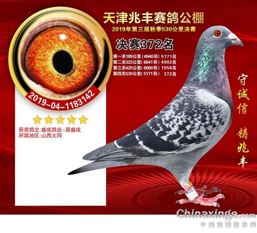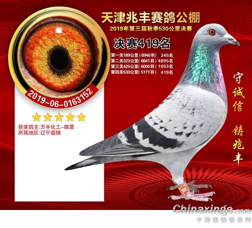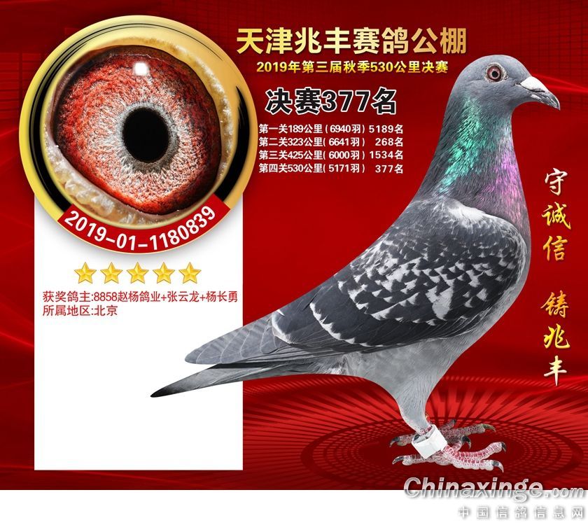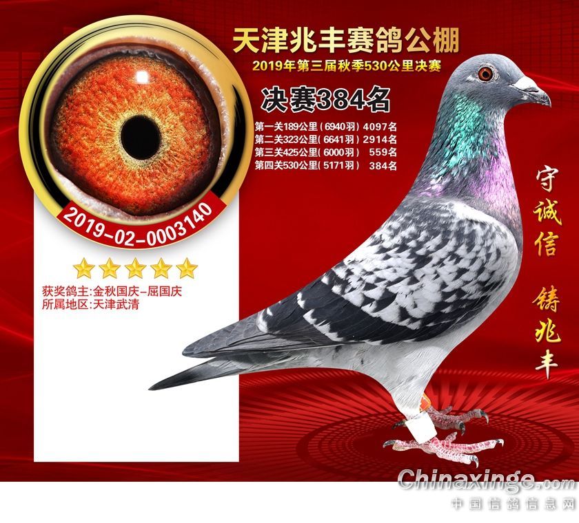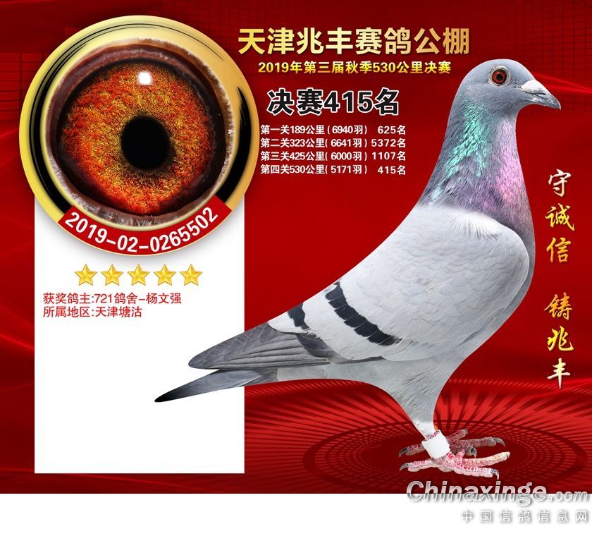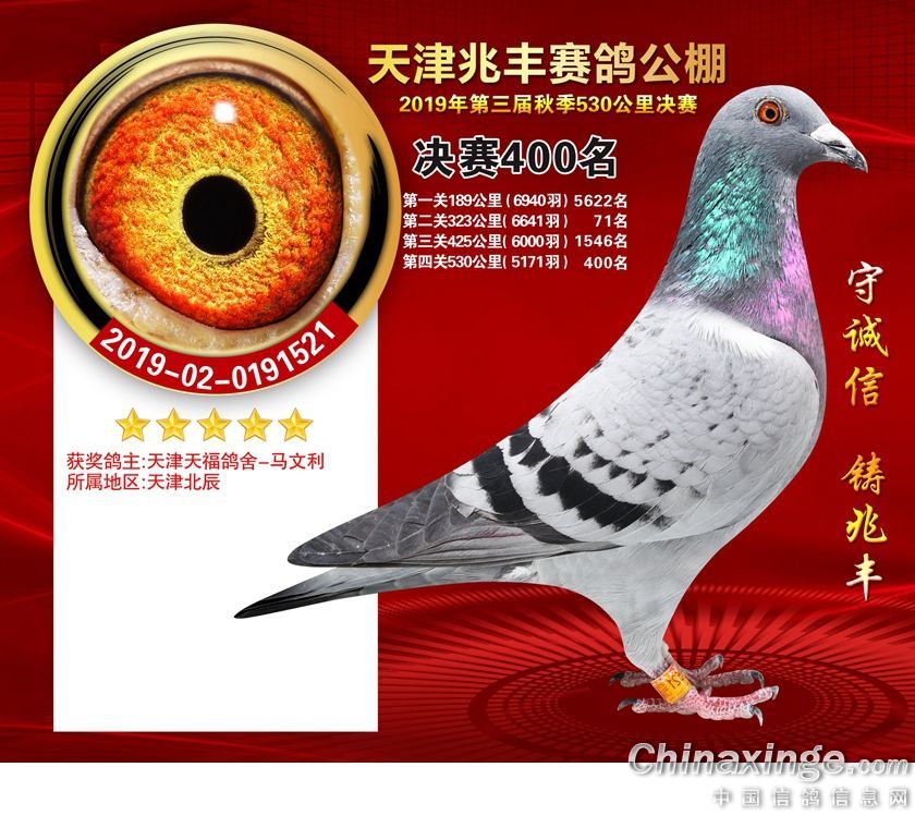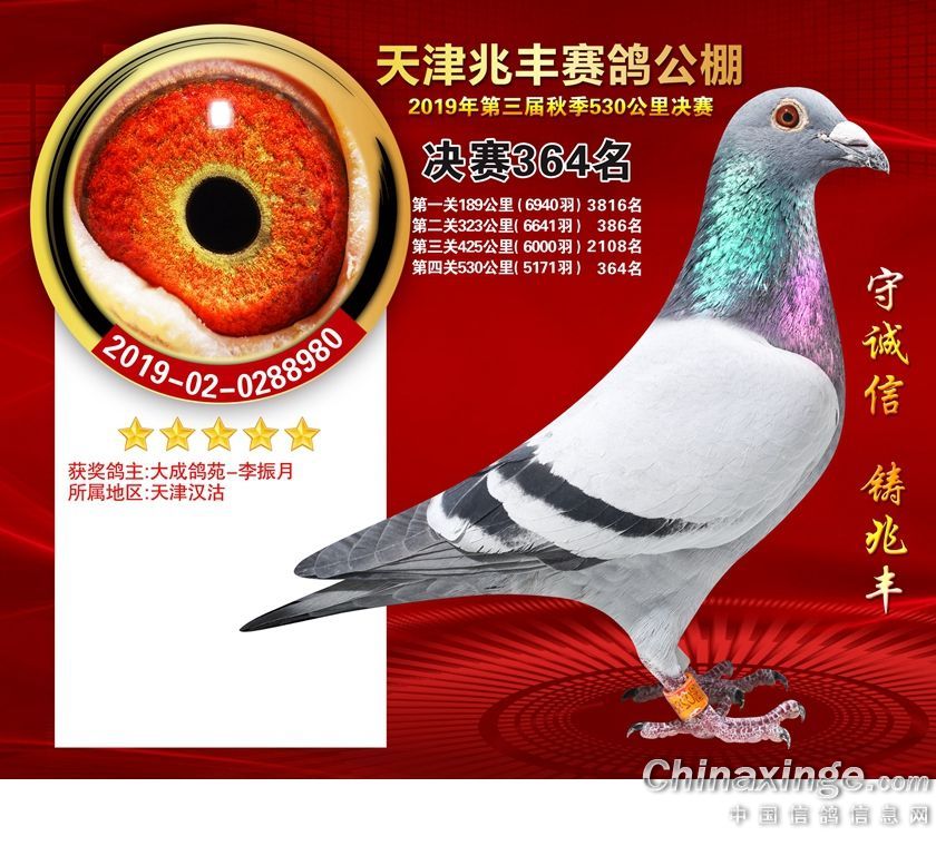 天津兆丰赛鸽公棚2019年获奖鸽361-420名