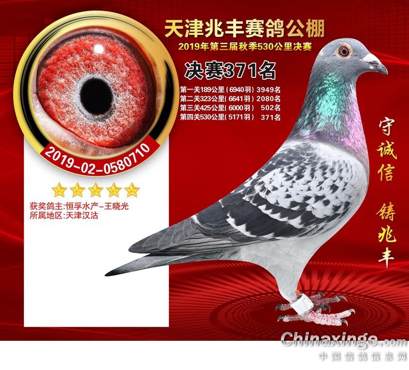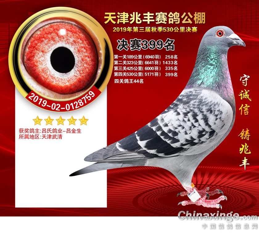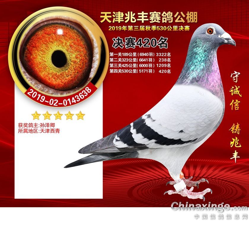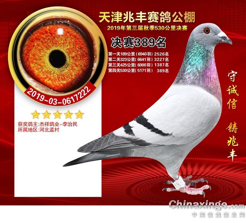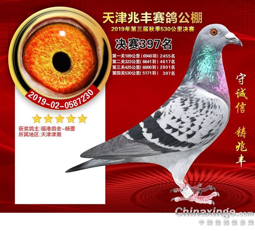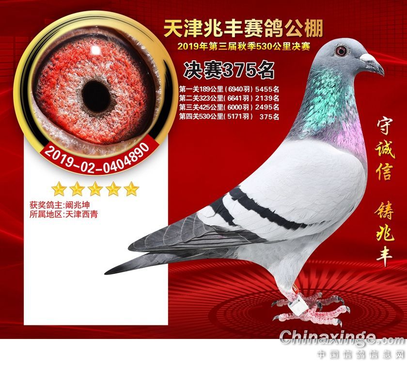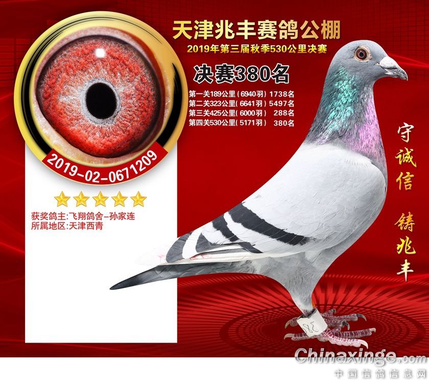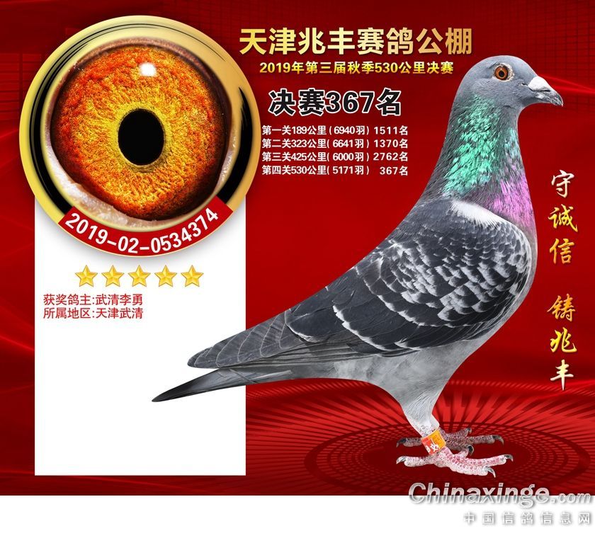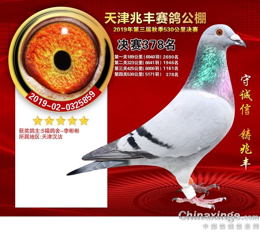 天津兆丰赛鸽公棚2019年获奖鸽361-420名