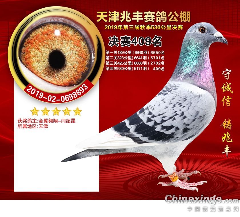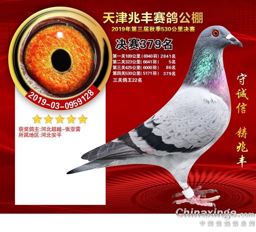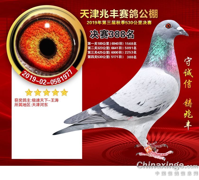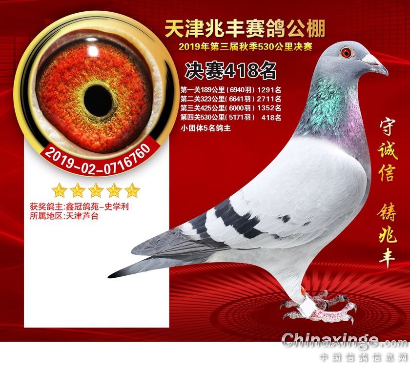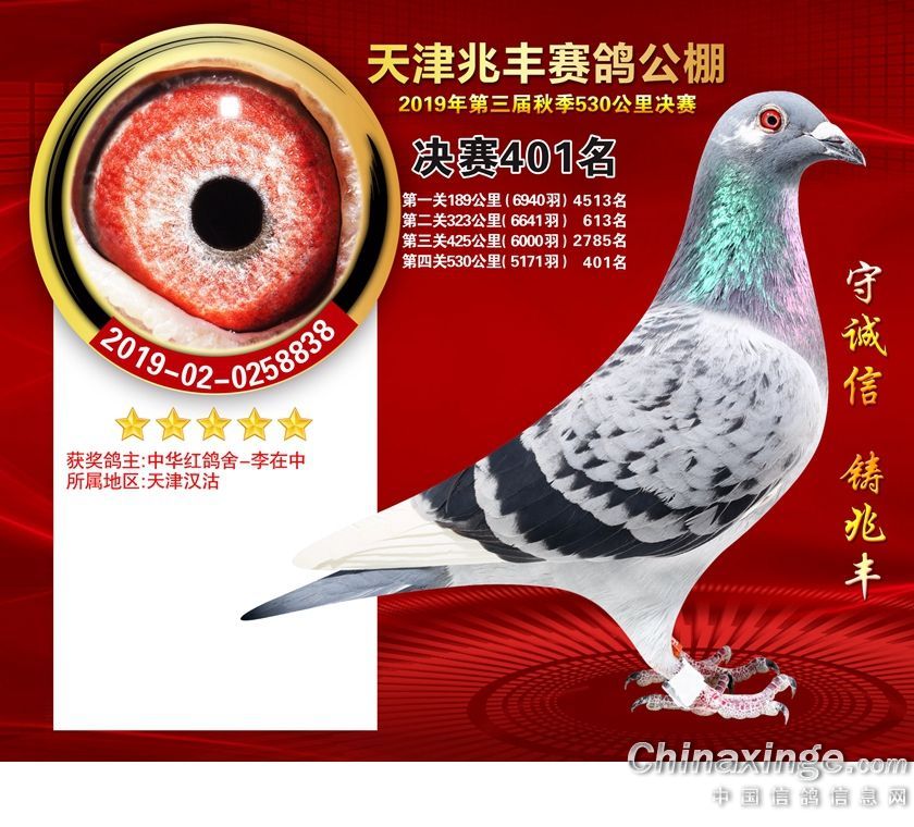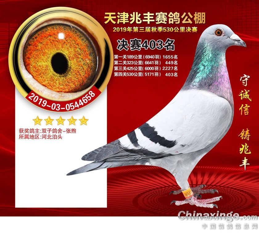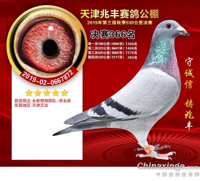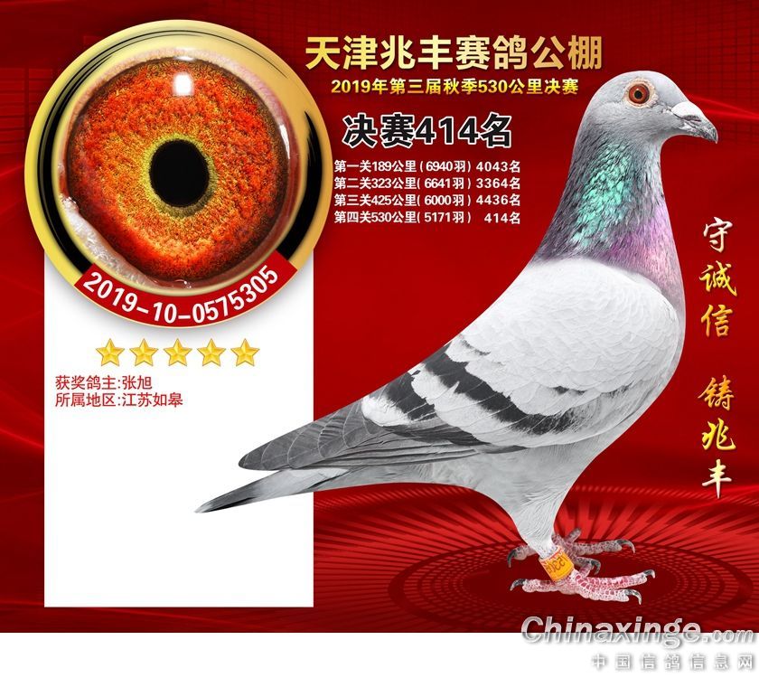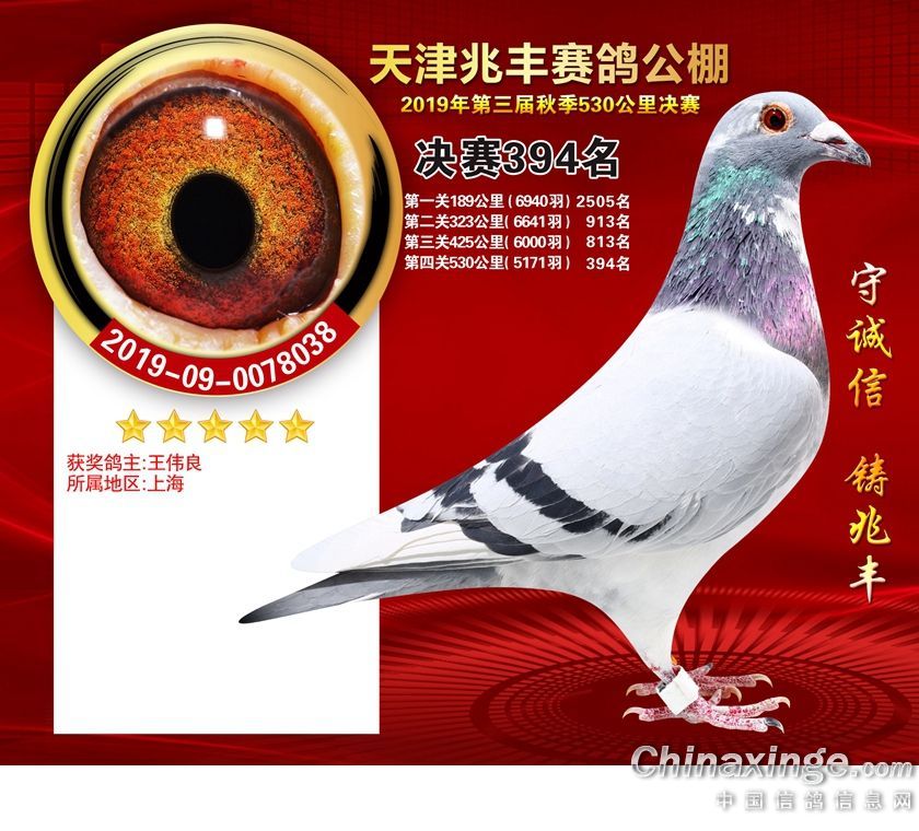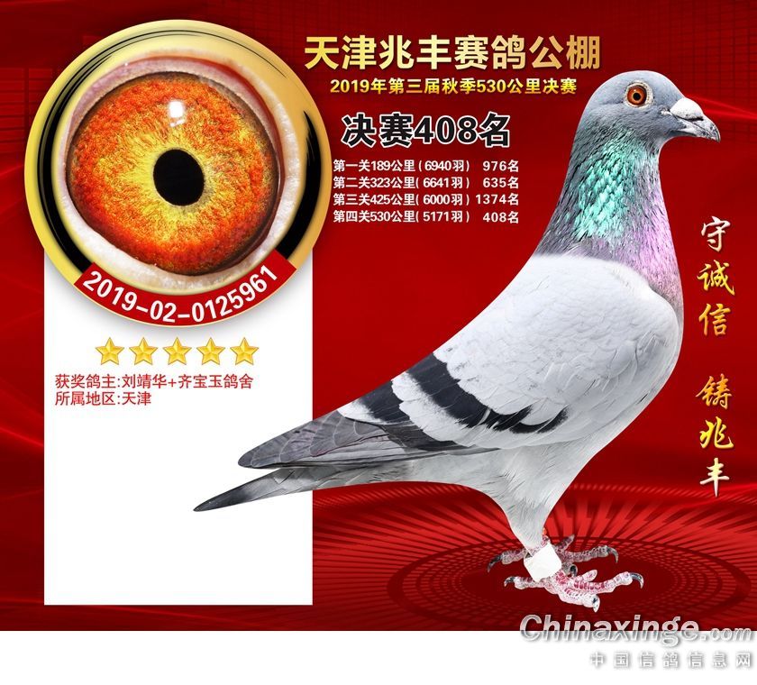 天津兆丰赛鸽公棚2019年获奖鸽361-420名