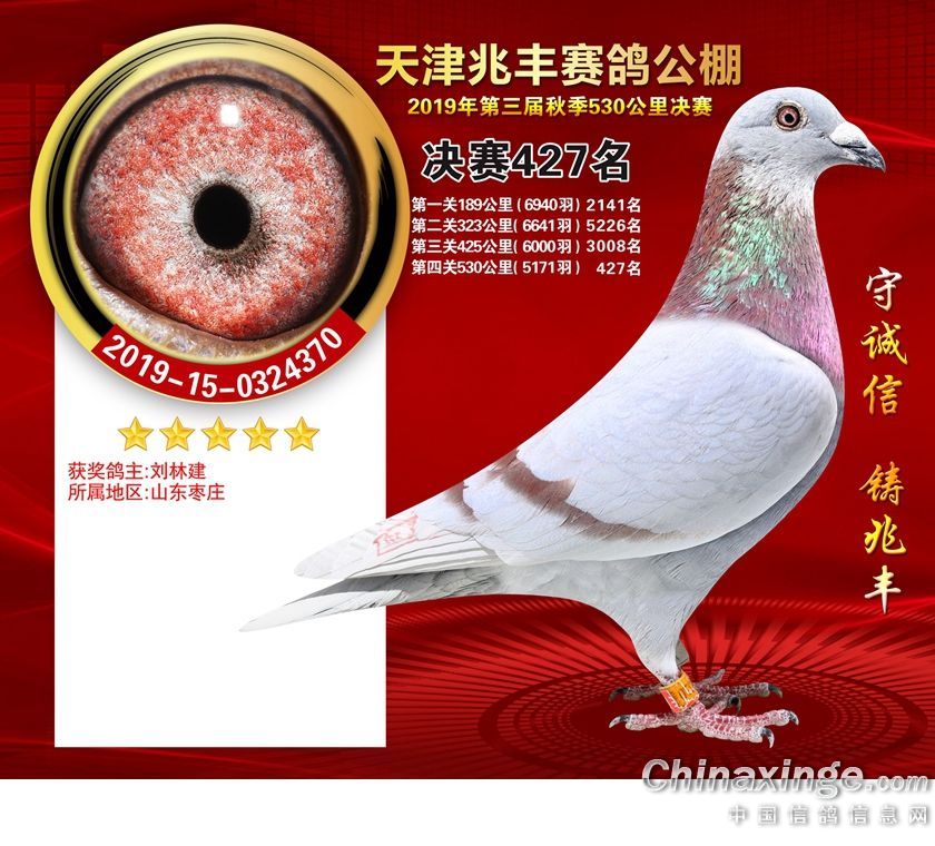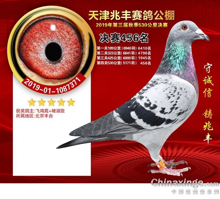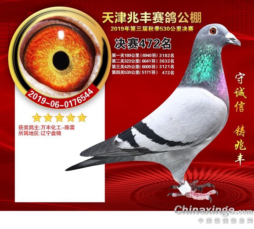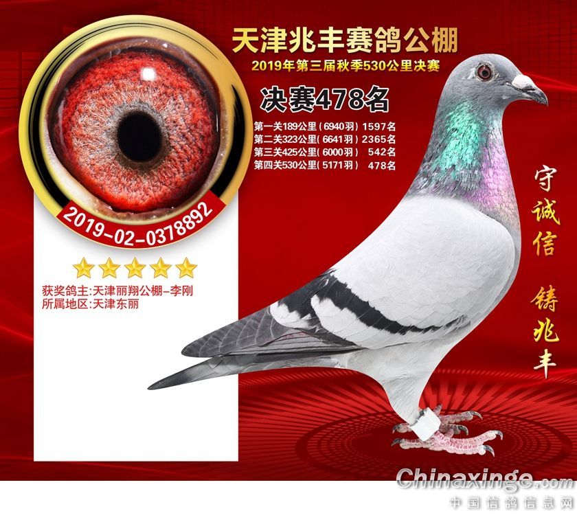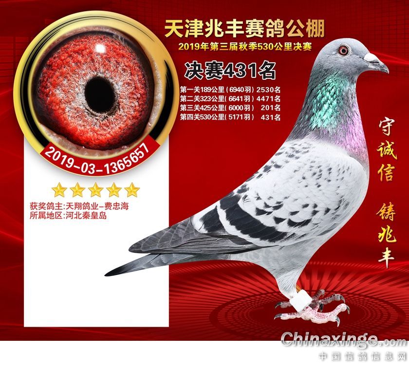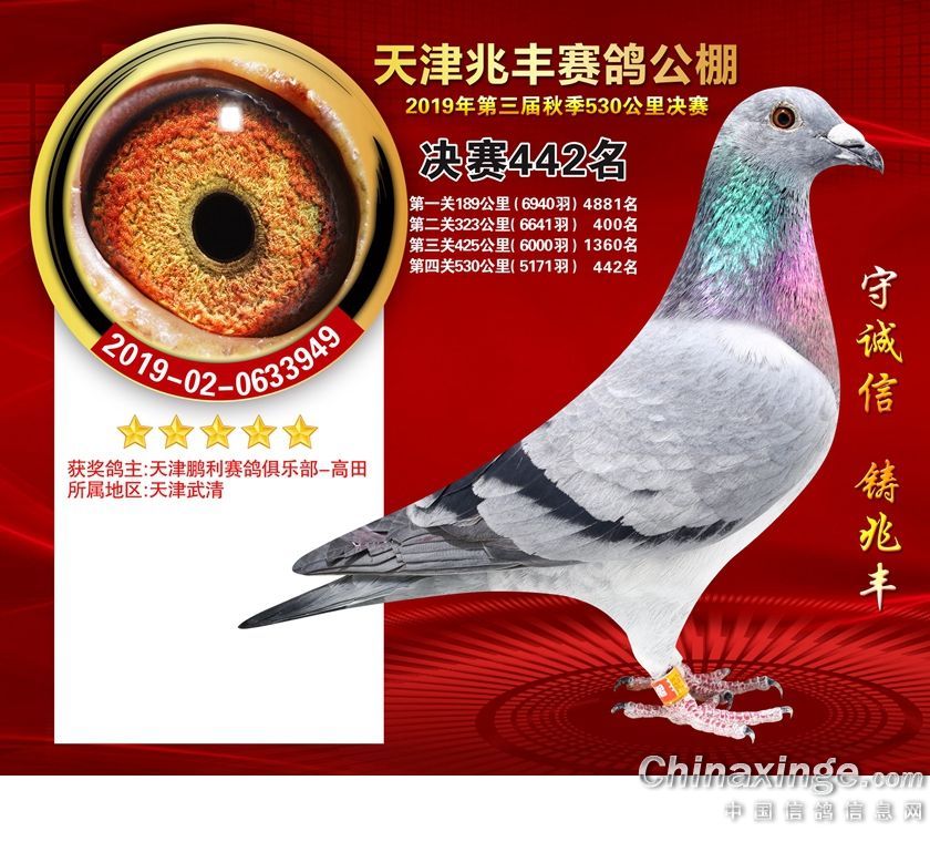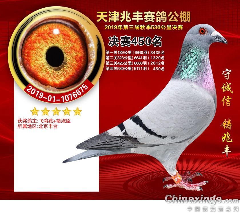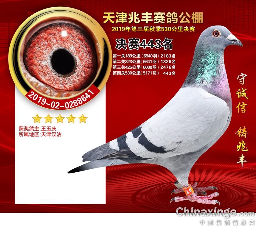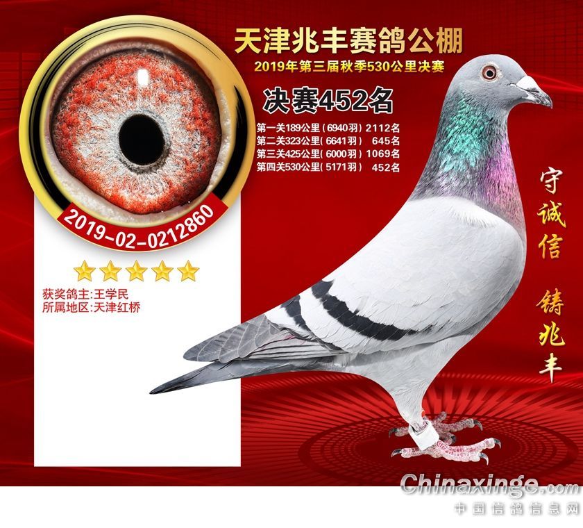 天津兆丰赛鸽公棚2019年获奖鸽421-480名