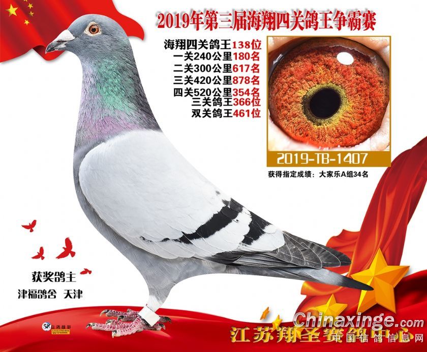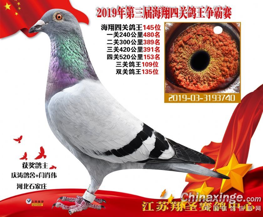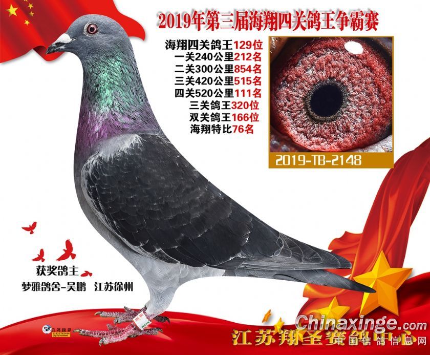 江苏翔圣赛鸽中心四关鸽王121-150名欣赏