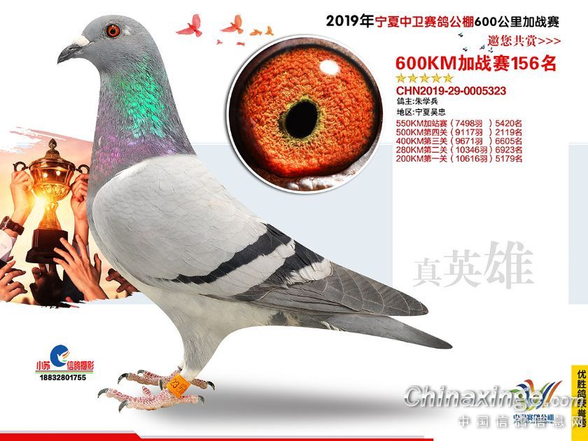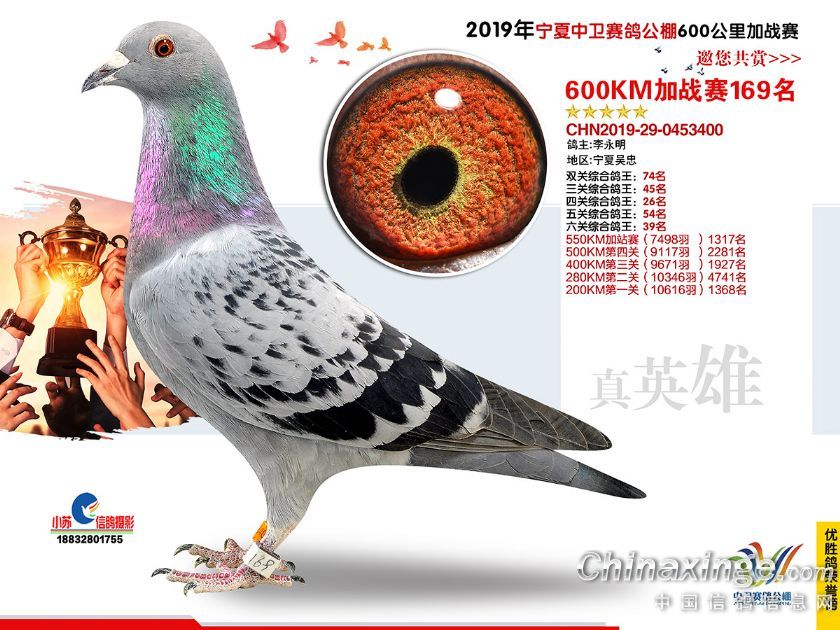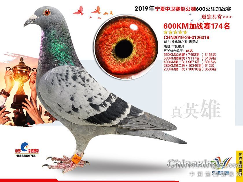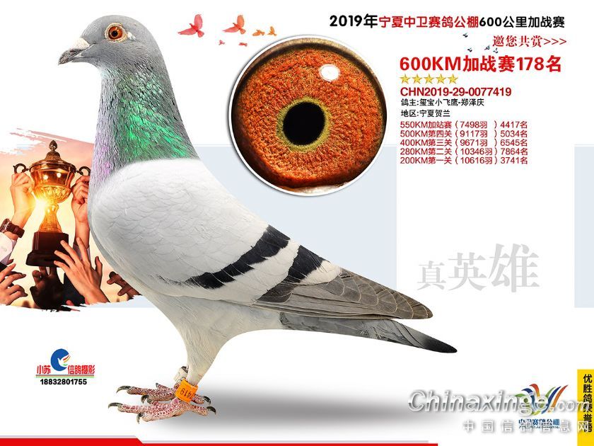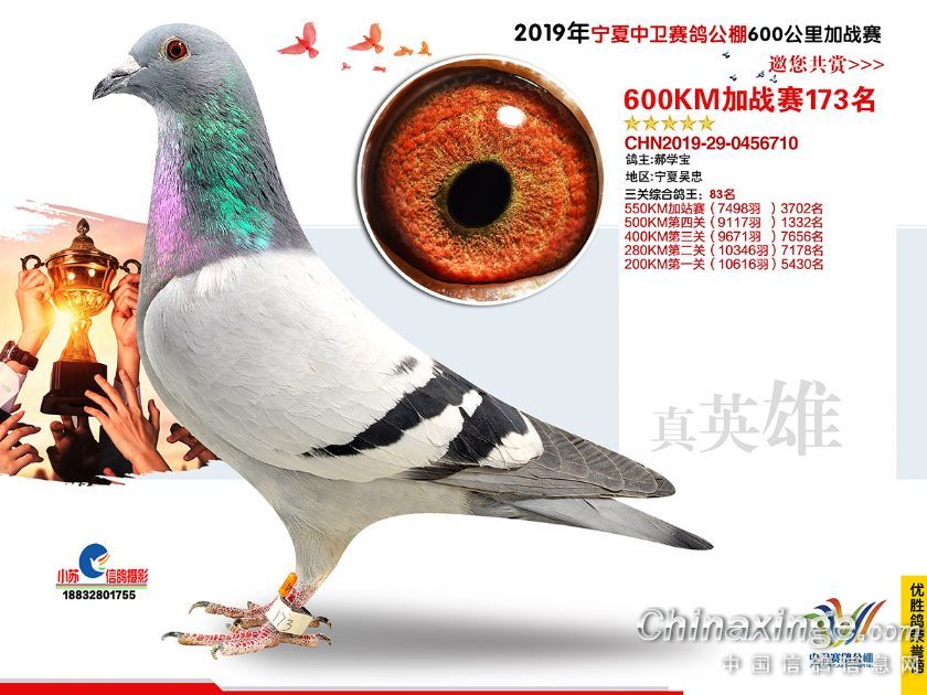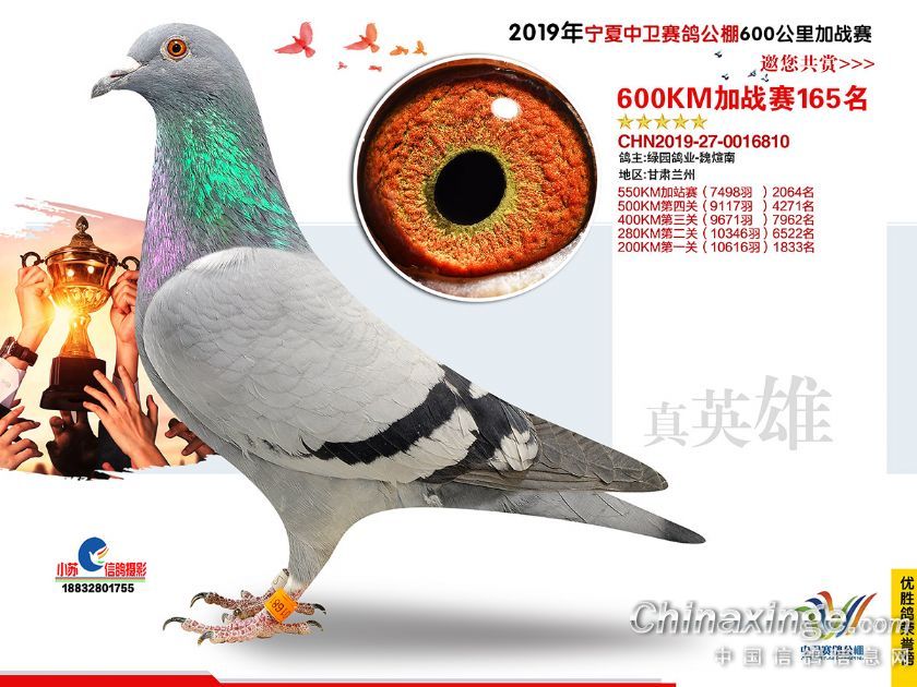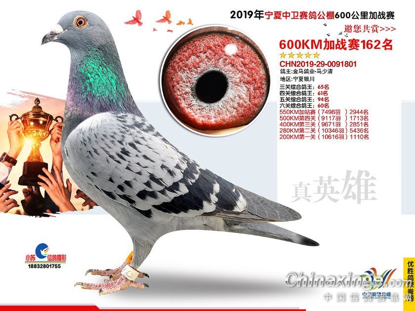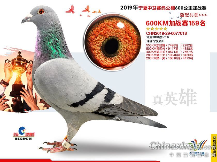 2019年宁夏中卫赛鸽公棚600公里加站赛获奖鸽151-180名
