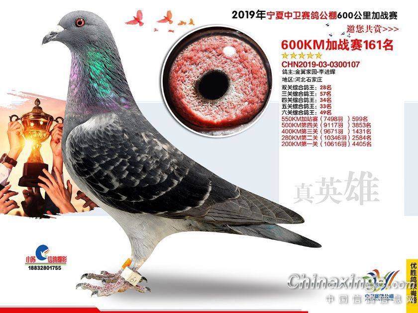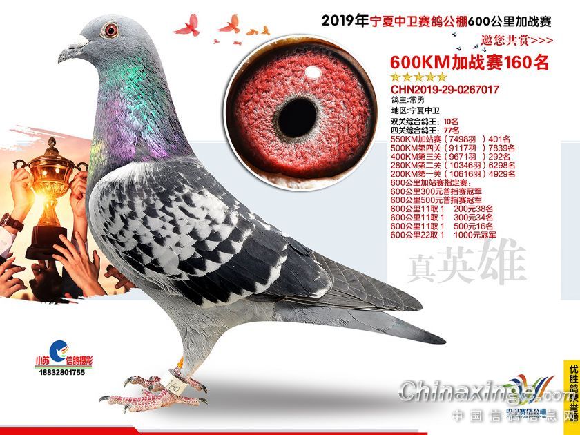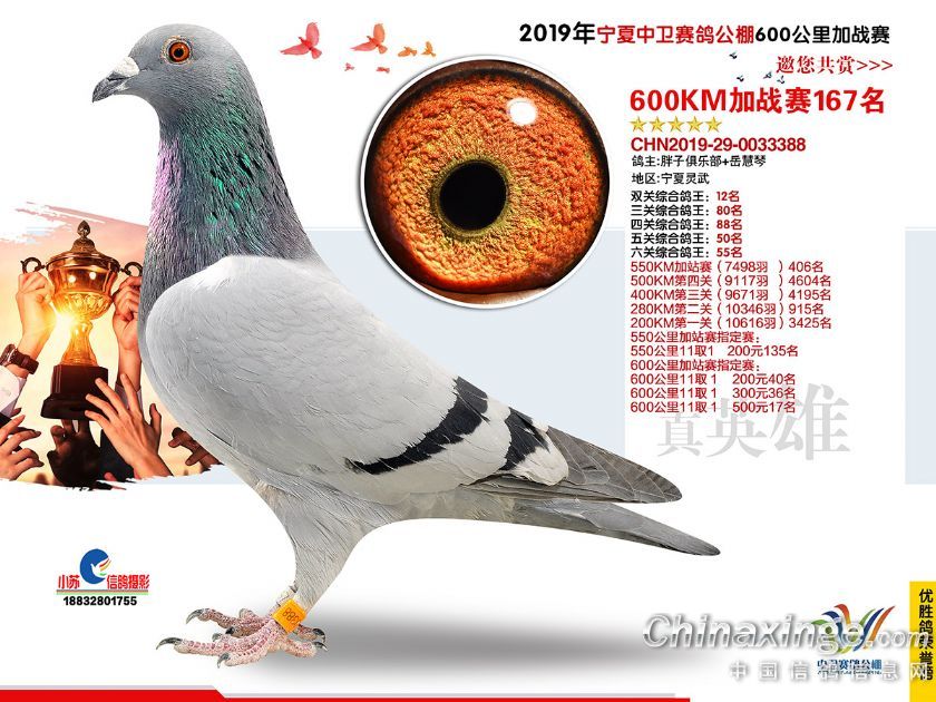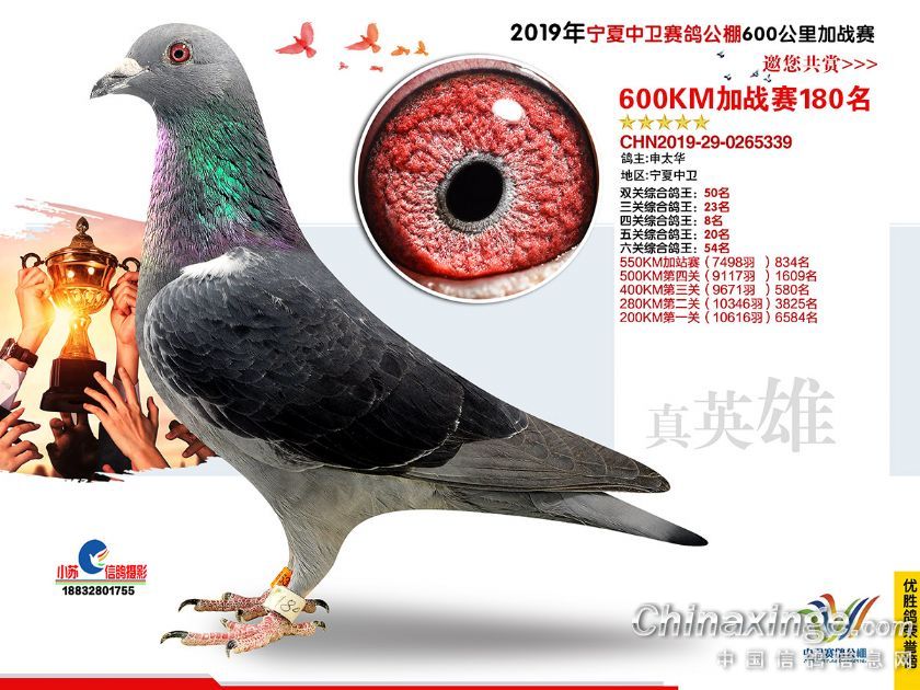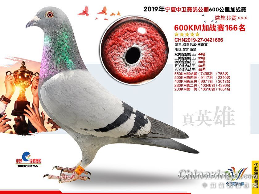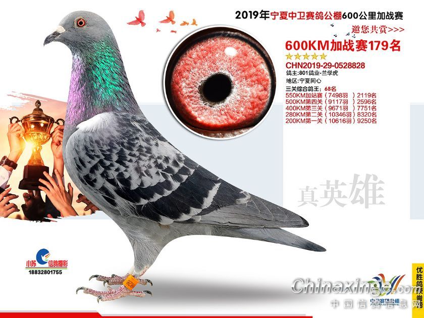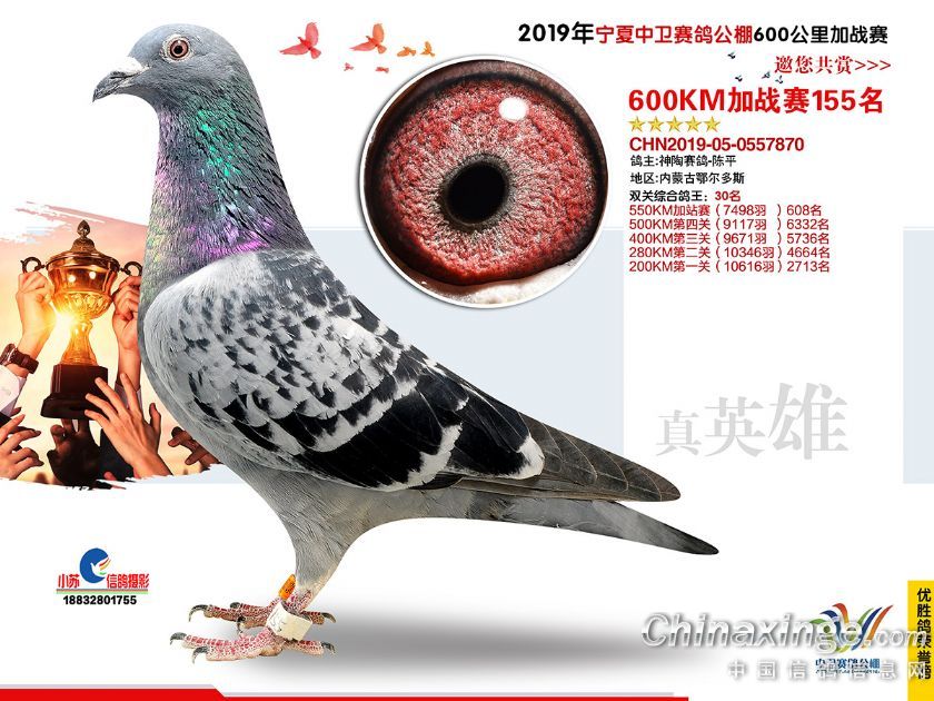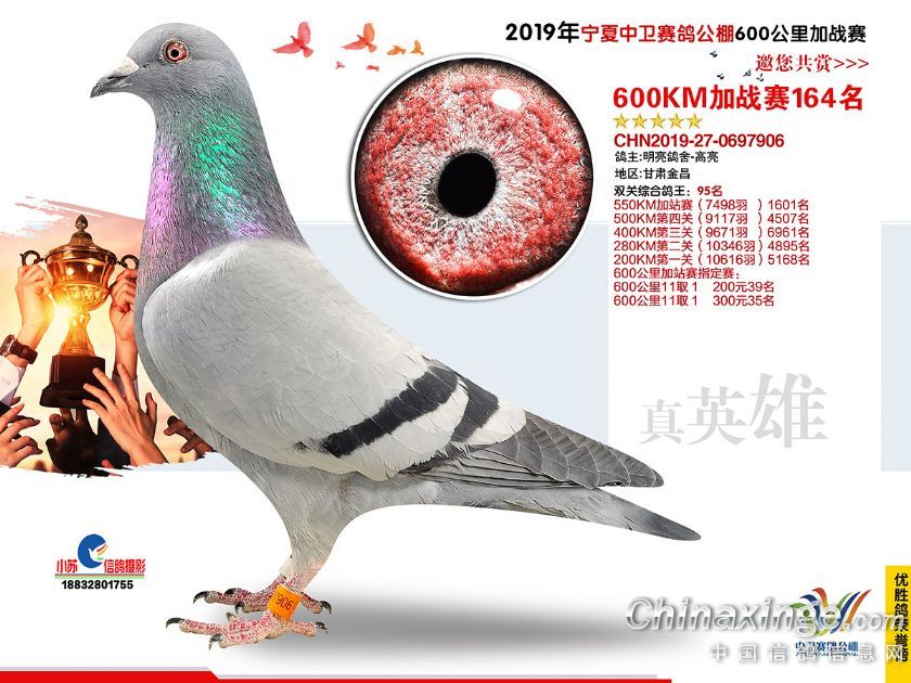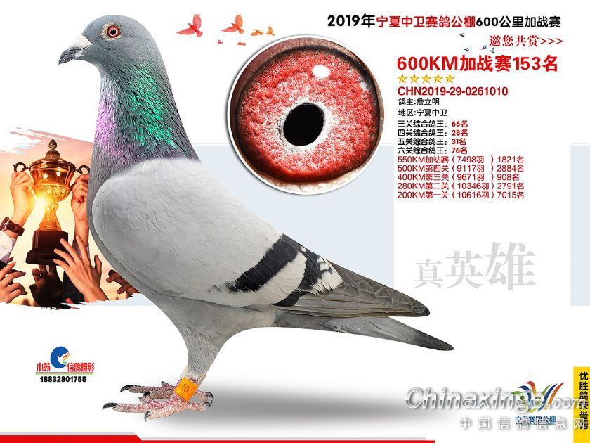 2019年宁夏中卫赛鸽公棚600公里加站赛获奖鸽151-180名