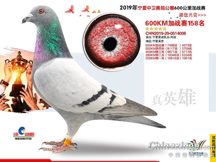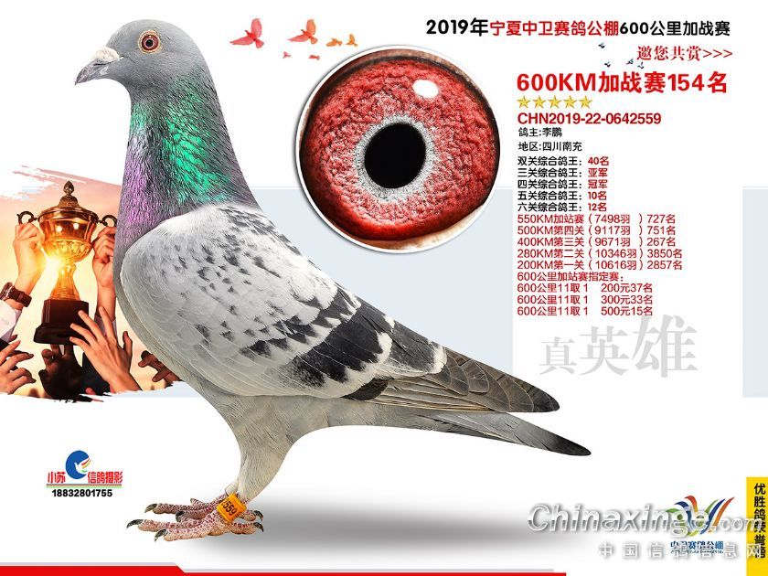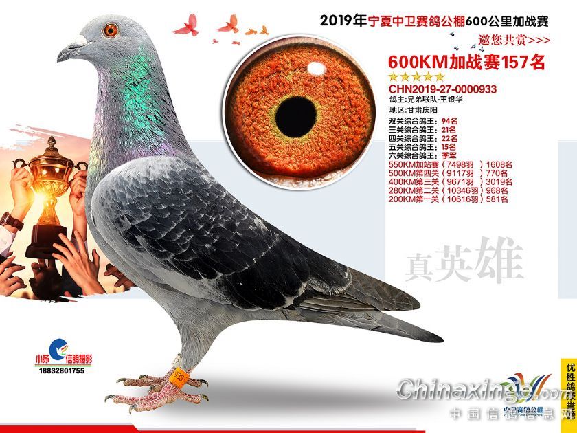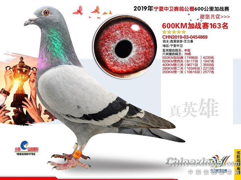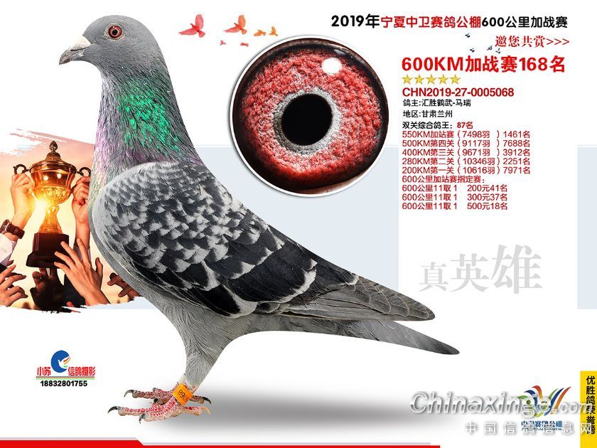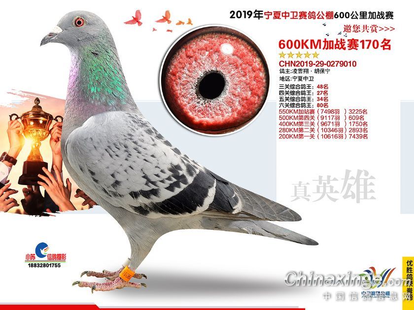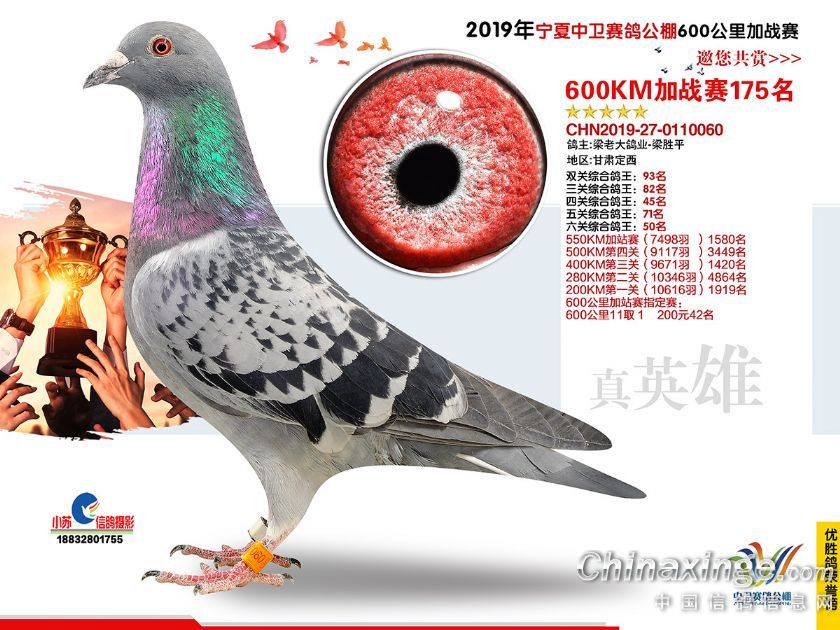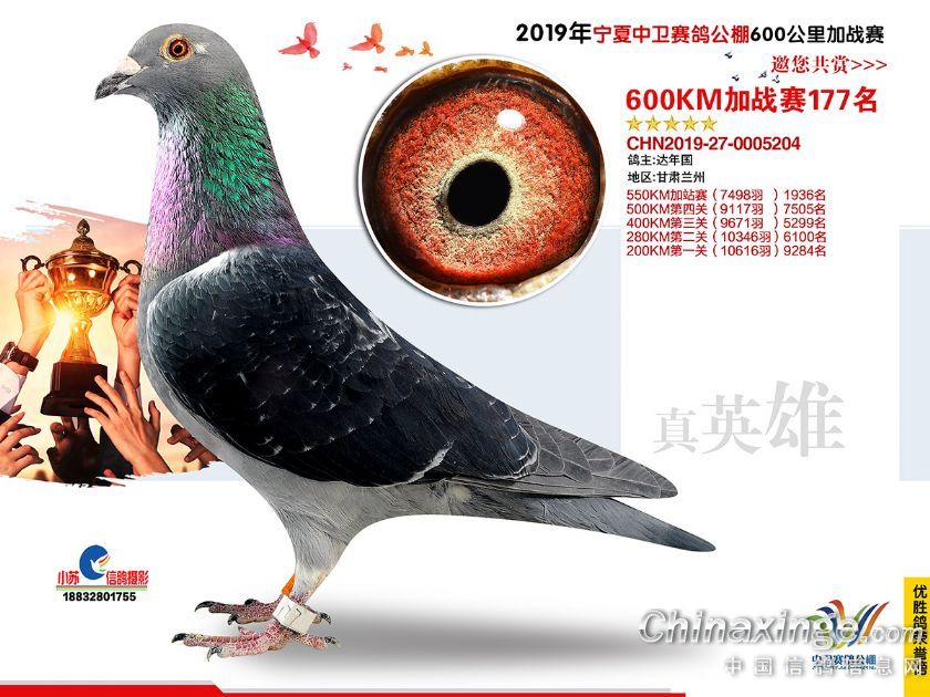 2019年宁夏中卫赛鸽公棚600公里加站赛获奖鸽151-180名