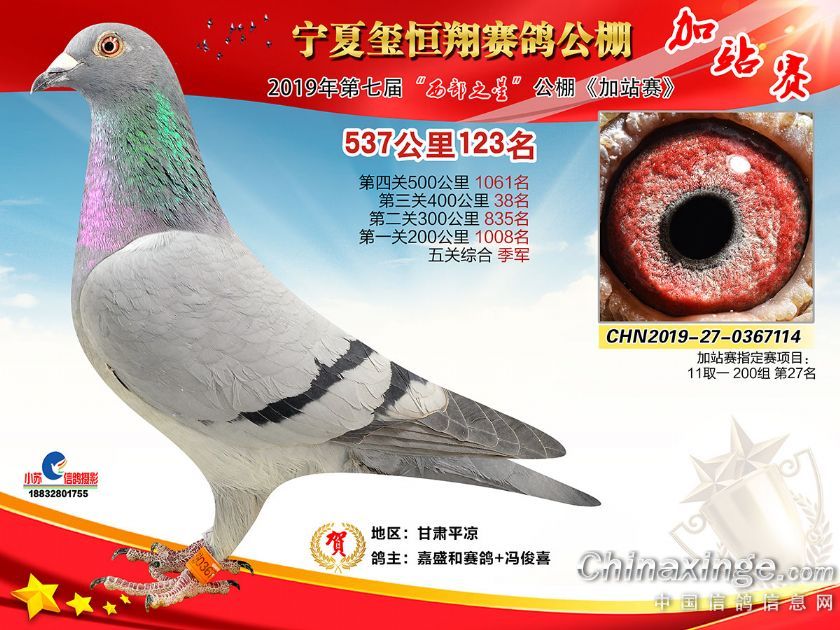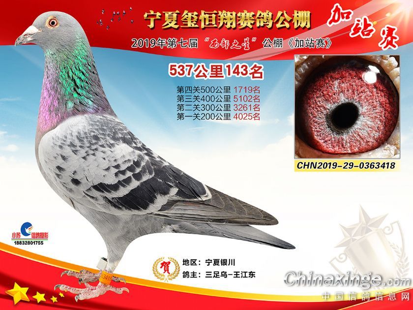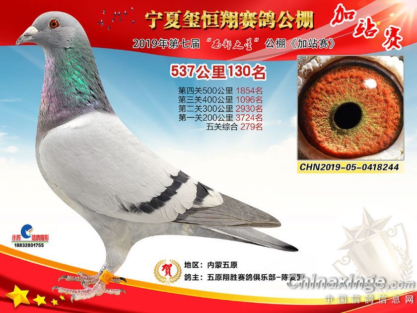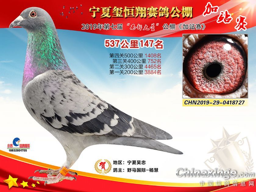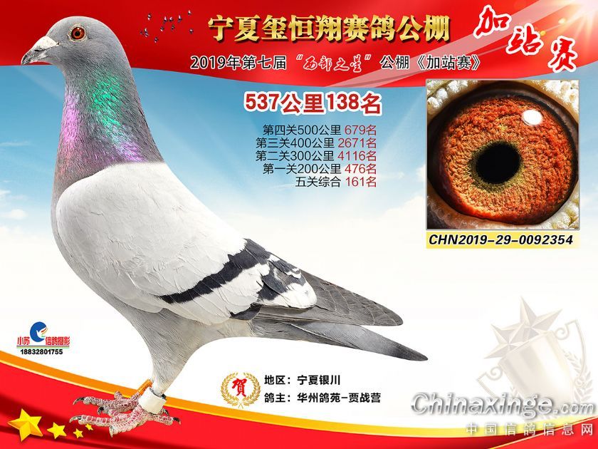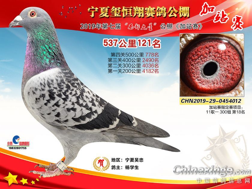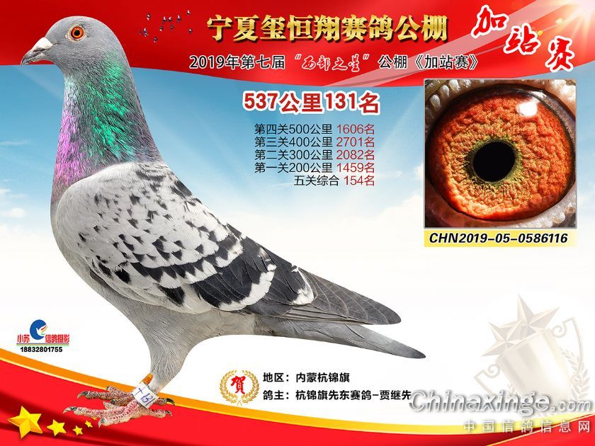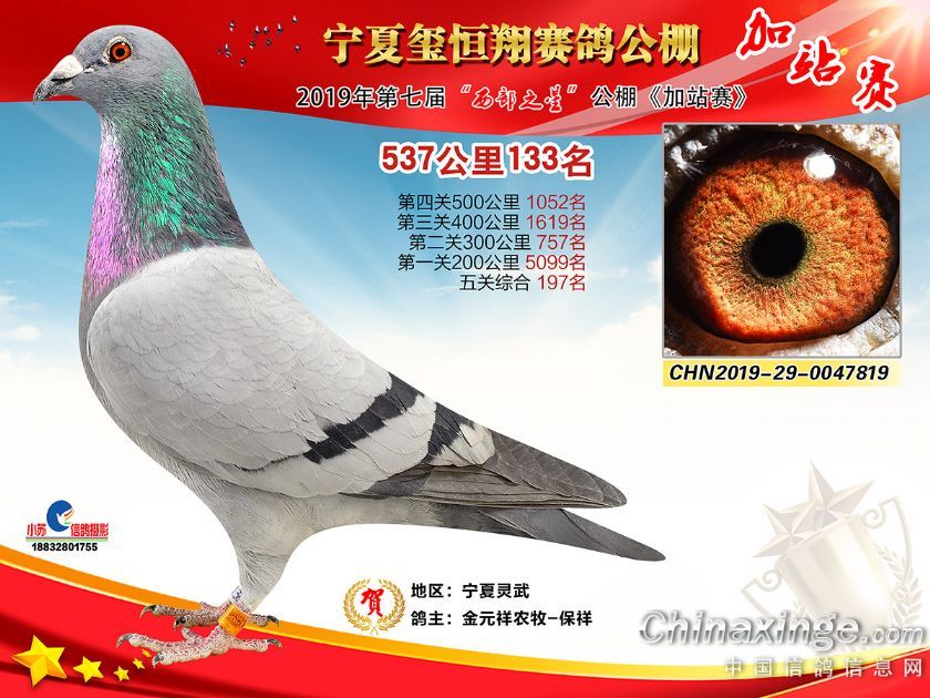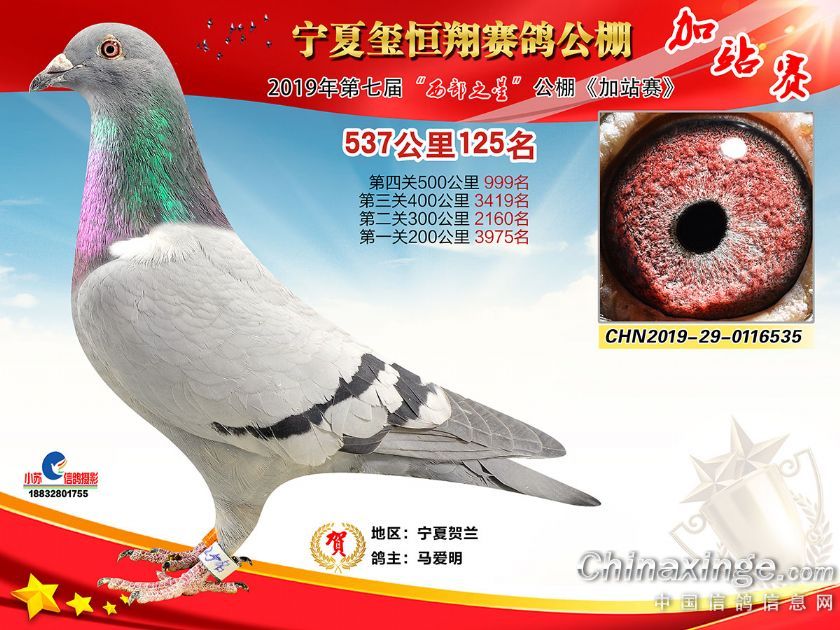 2019宁夏玺恒翔公棚537公里加站赛获奖鸽欣赏121-150名