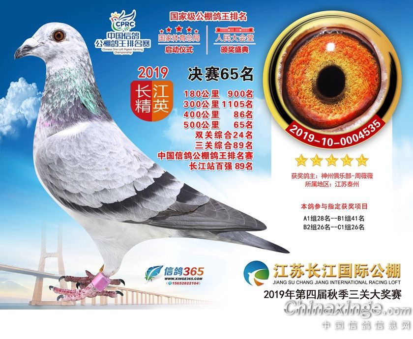 作品说明: 江苏长江公棚2019年获奖鸽欣赏61-90名