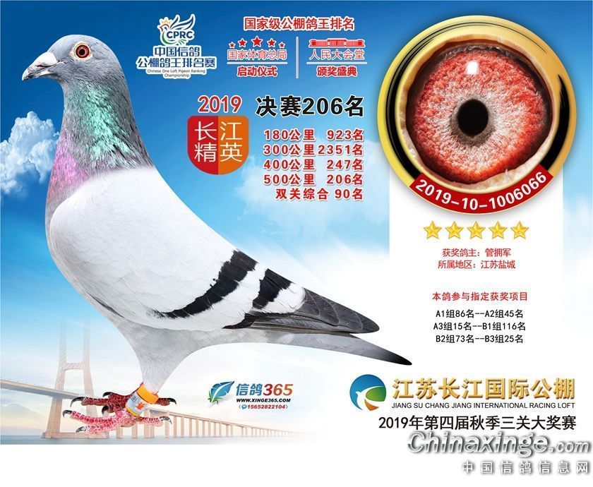作品说明: 江苏长江公棚2019年获奖鸽欣赏181-210名