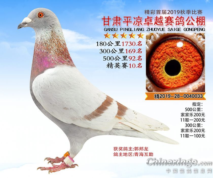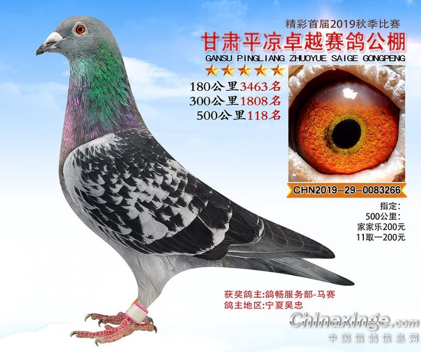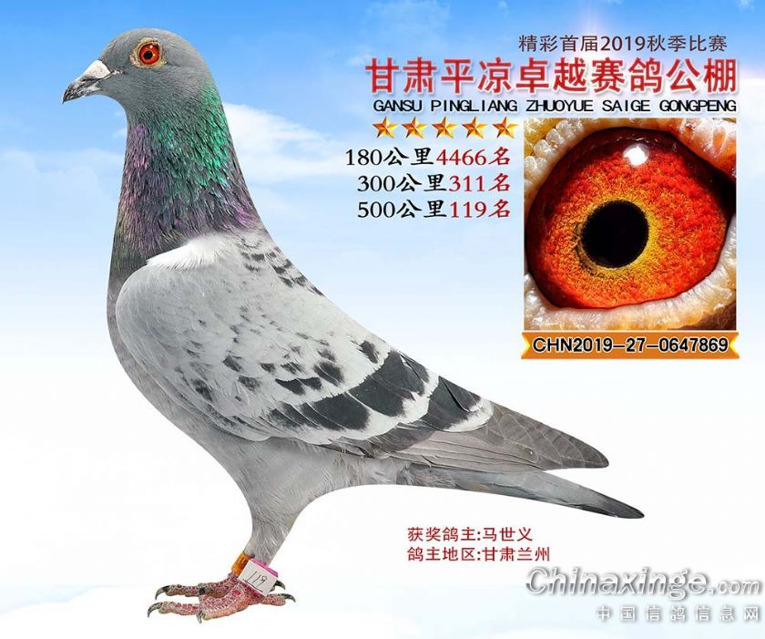 作品说明: 2019年甘肃平凉卓越赛鸽公棚获奖鸽照片61-120