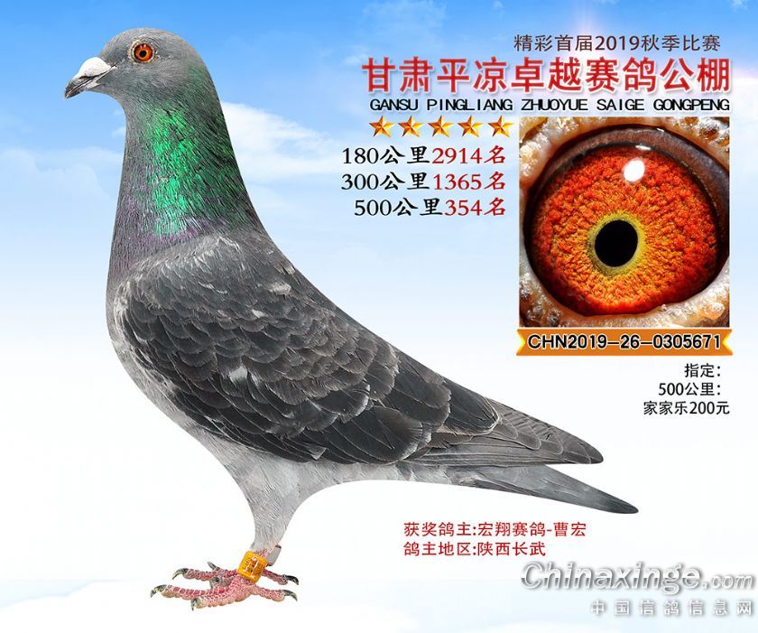 作品说明: 2019年甘肃平凉卓越赛鸽公棚获奖鸽照片301-360