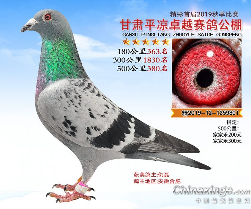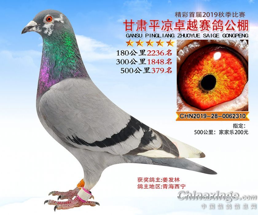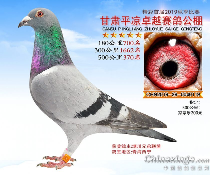 2019年甘肃平凉卓越赛鸽公棚获奖鸽照片361-400