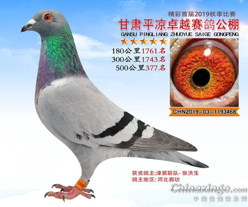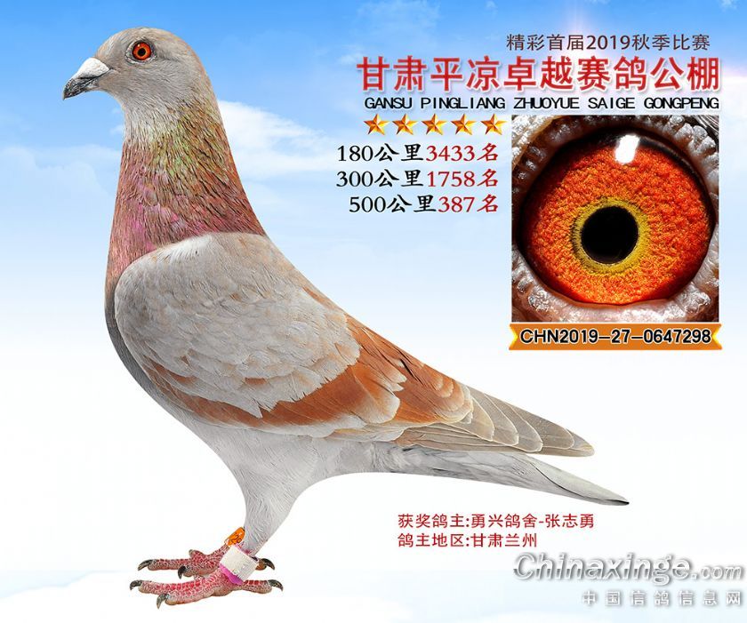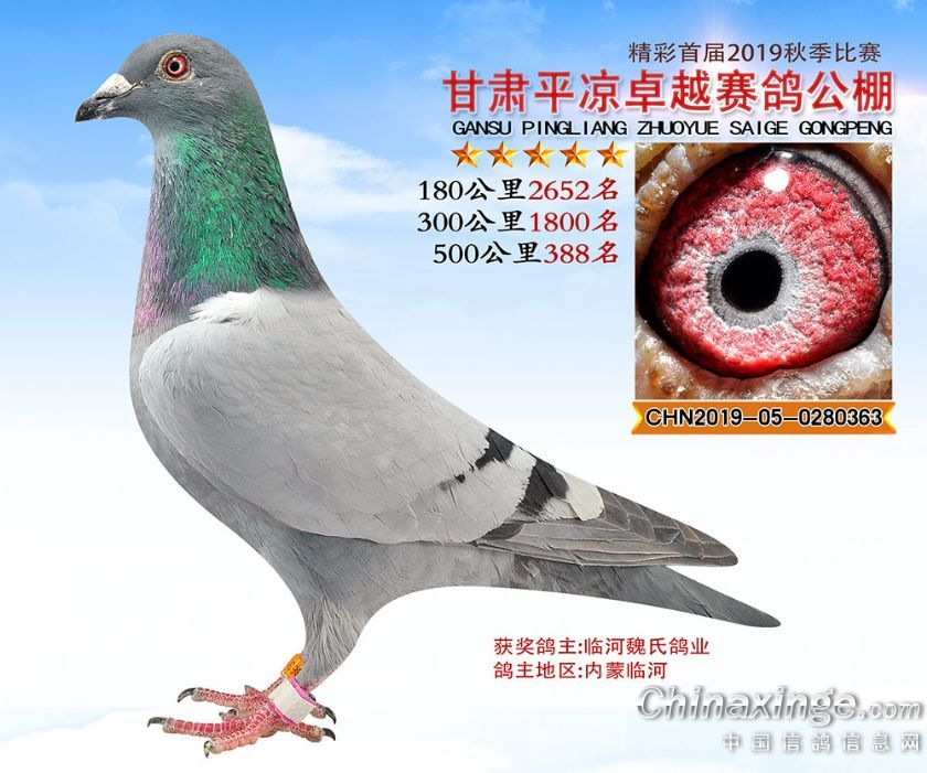 作品说明: 2019年甘肃平凉卓越赛鸽公棚获奖鸽照片361-400