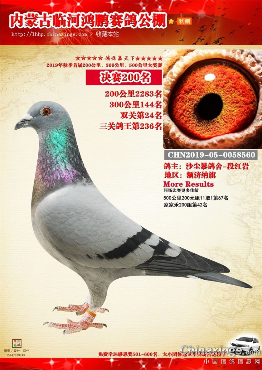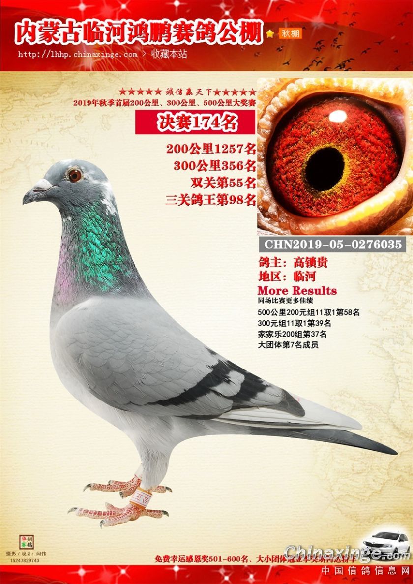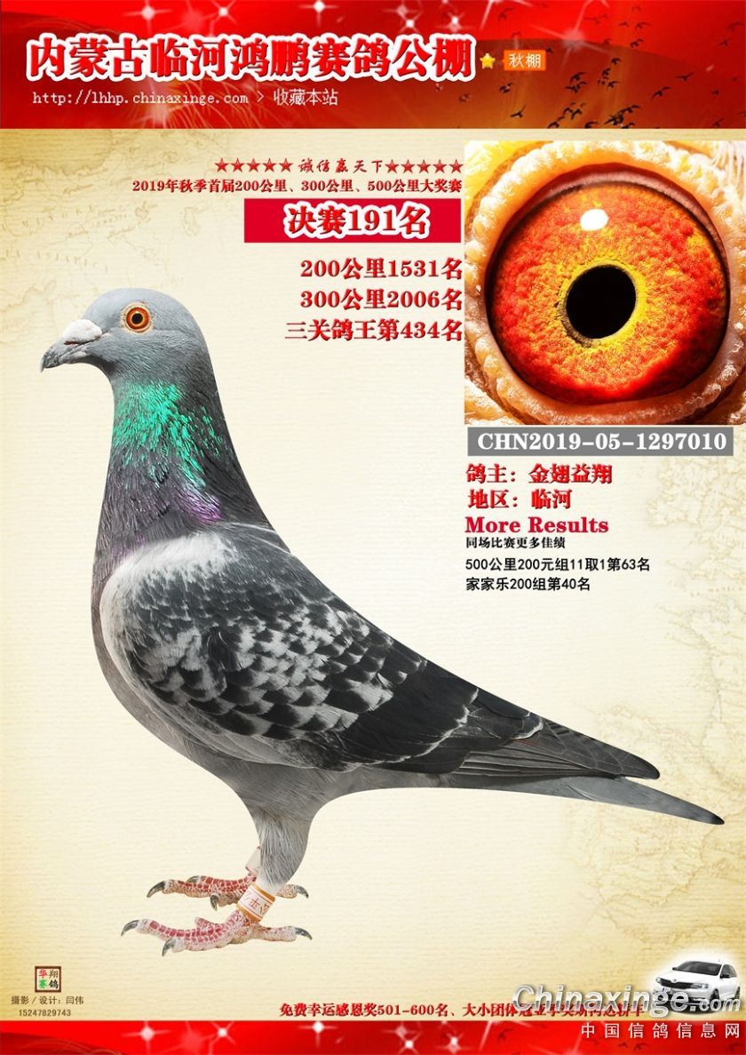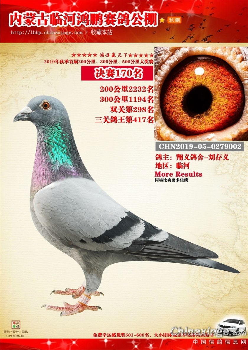 2019年临河鸿鹏赛鸽公棚获奖鸽151-200
