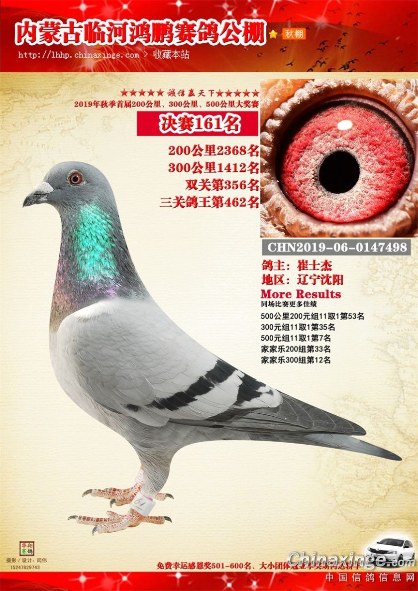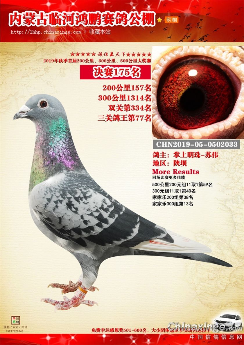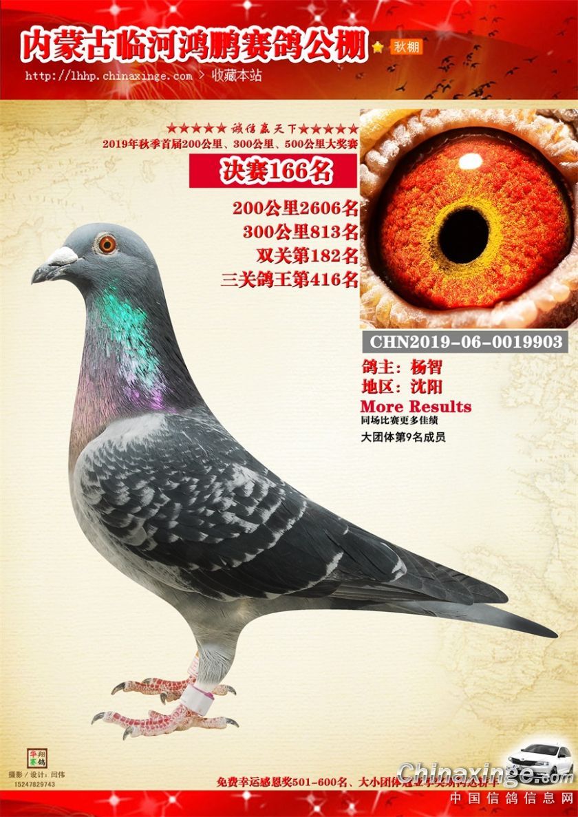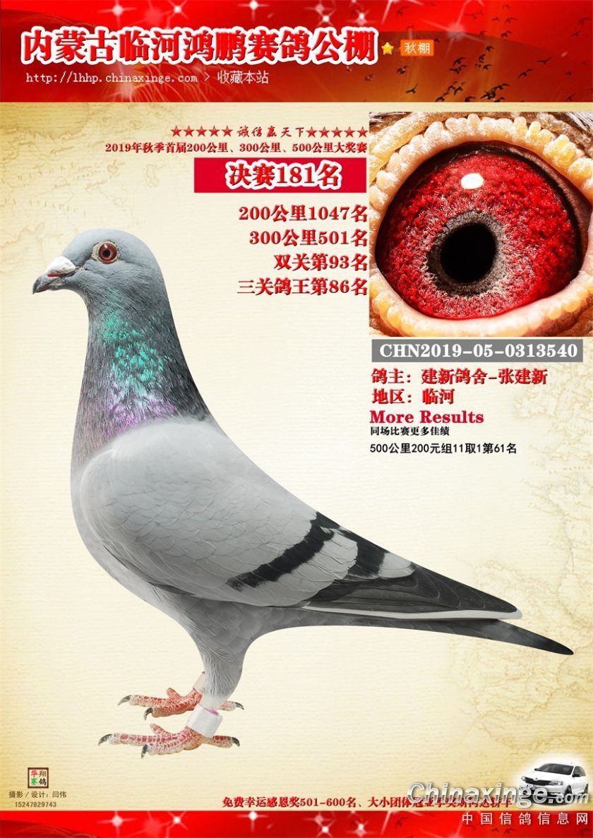2019年临河鸿鹏赛鸽公棚获奖鸽151-200