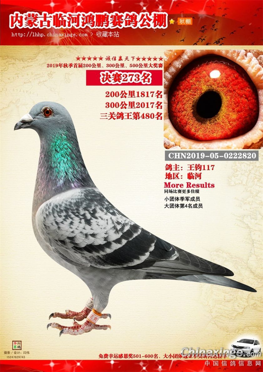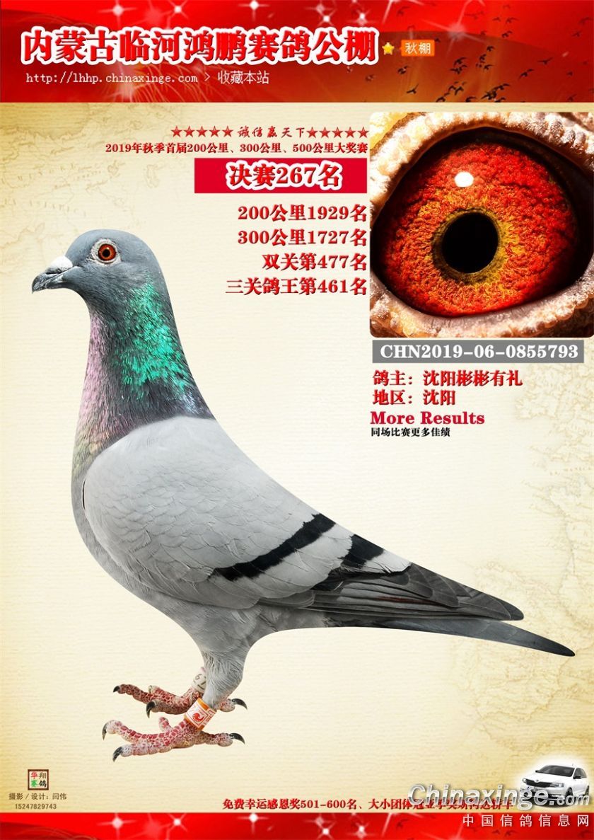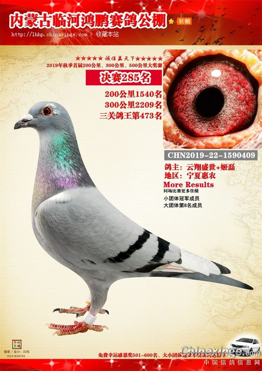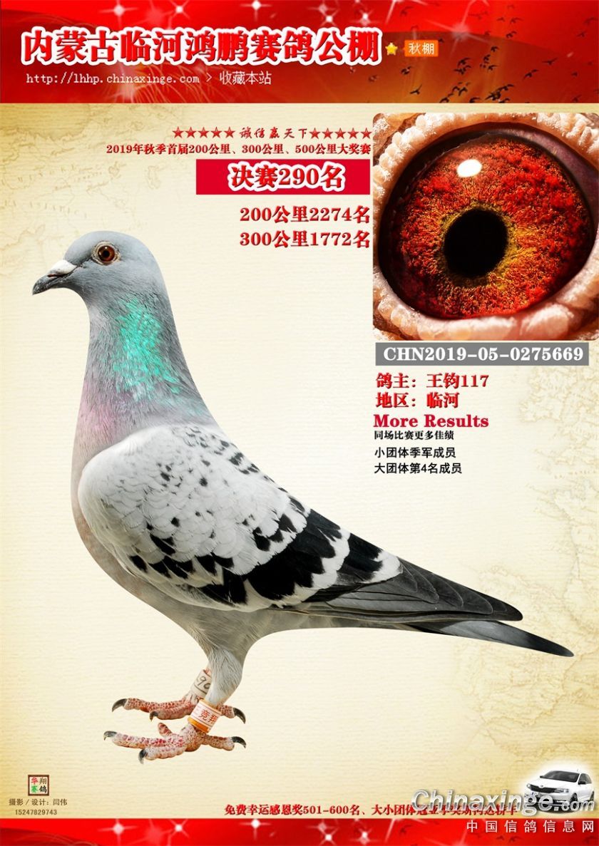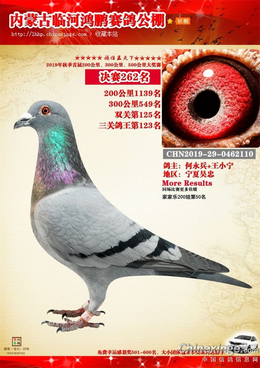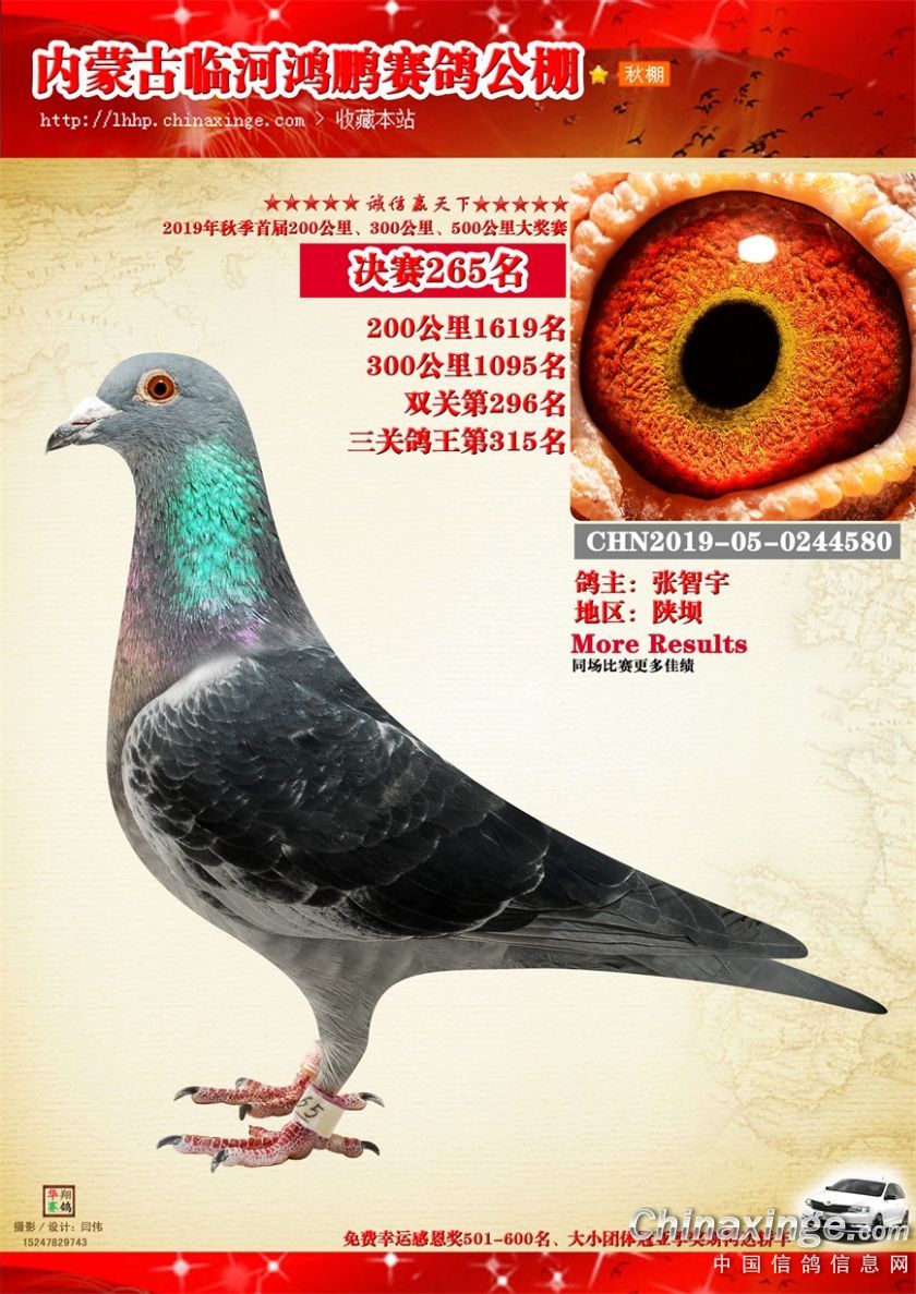 2019年临河鸿鹏赛鸽公棚获奖鸽261-320