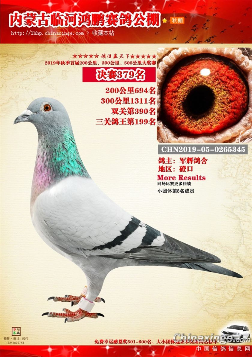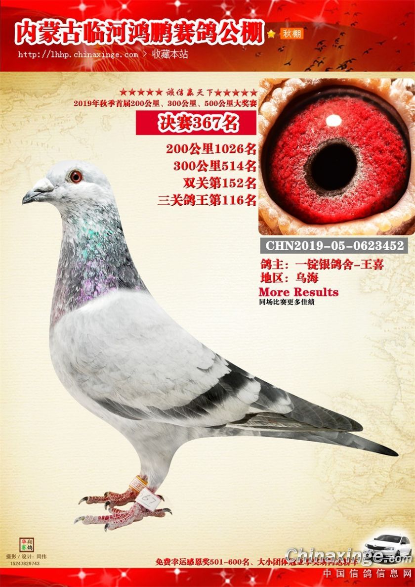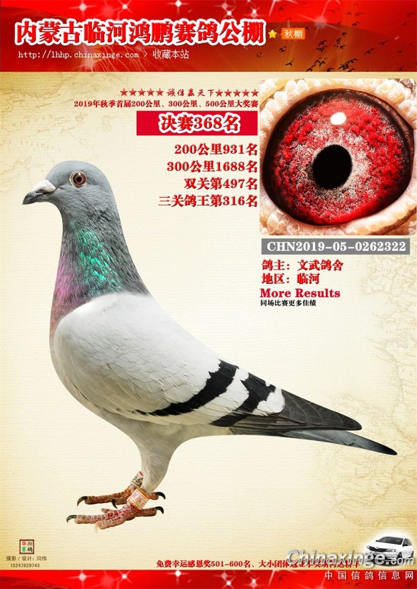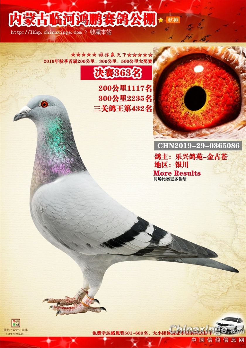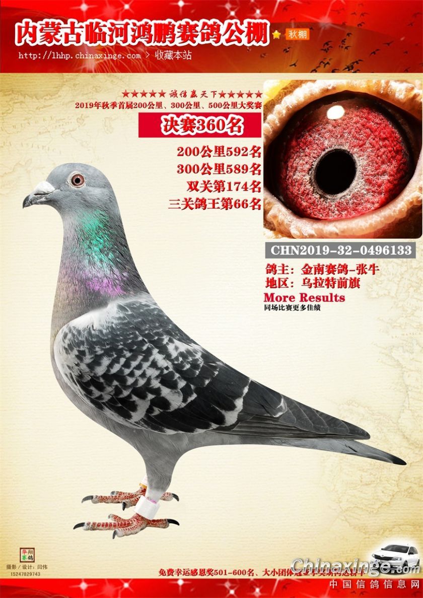 2019年临河鸿鹏赛鸽公棚获奖鸽321-380