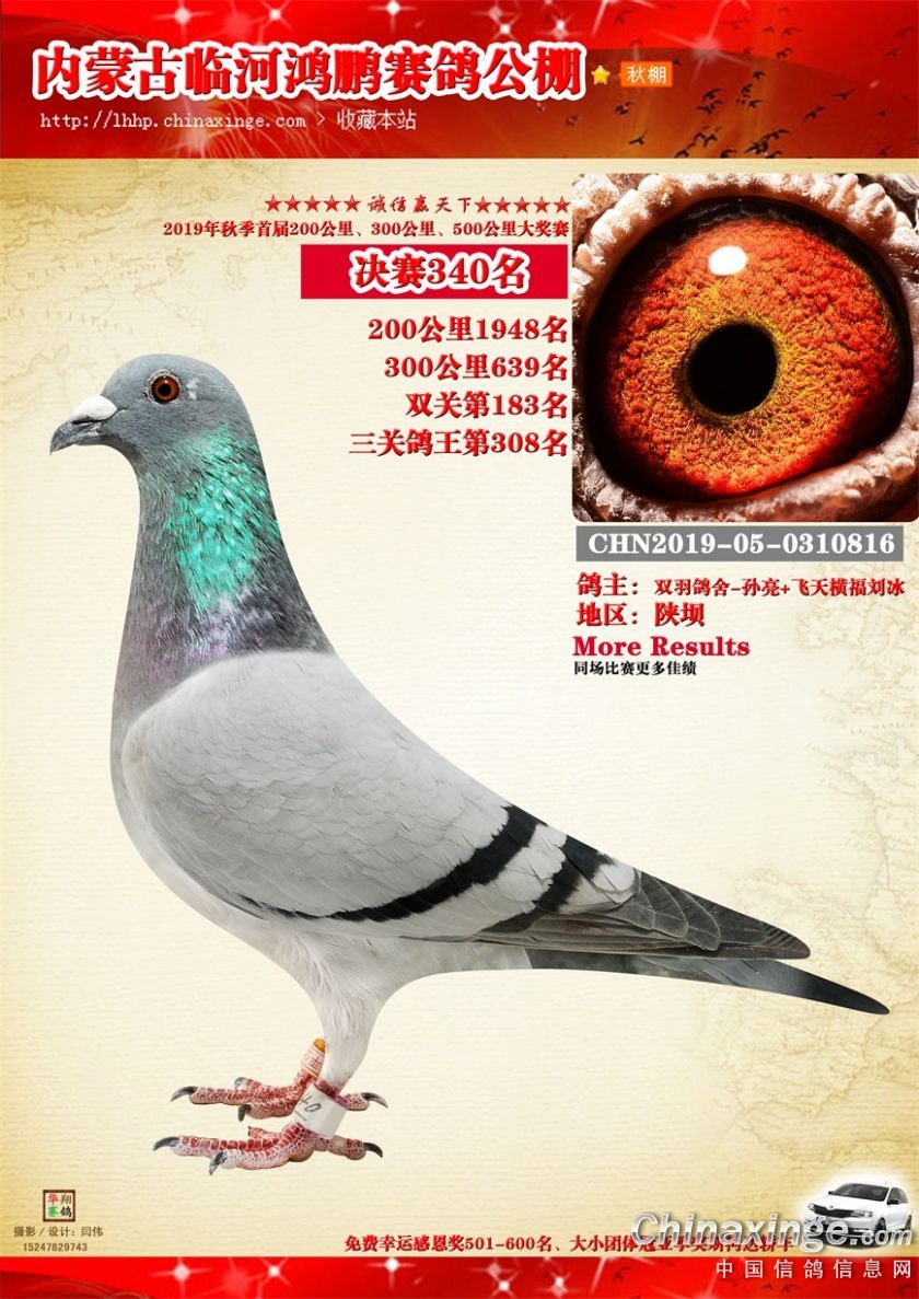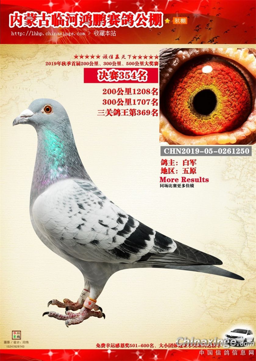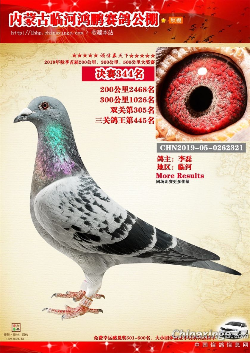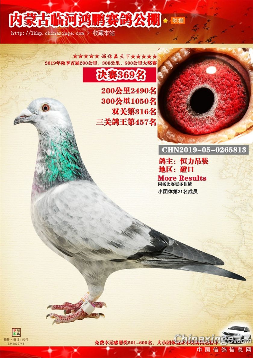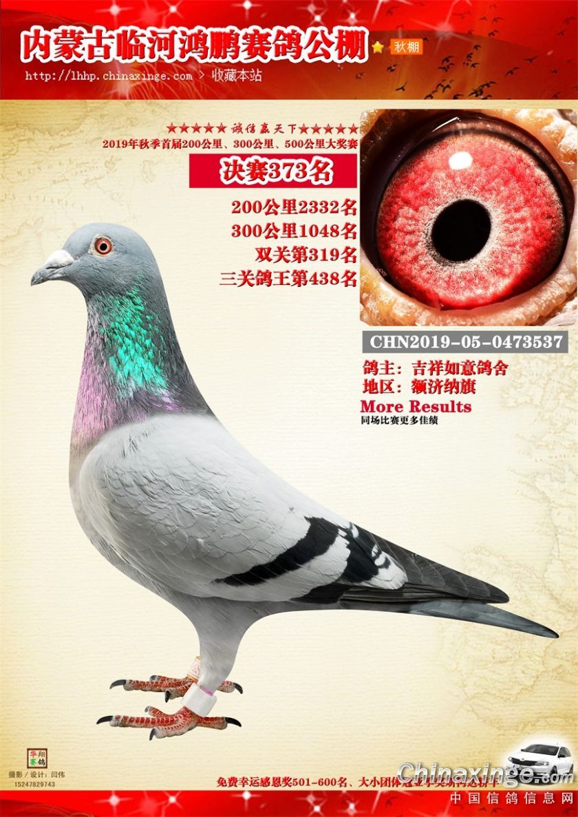 2019年临河鸿鹏赛鸽公棚获奖鸽321-380