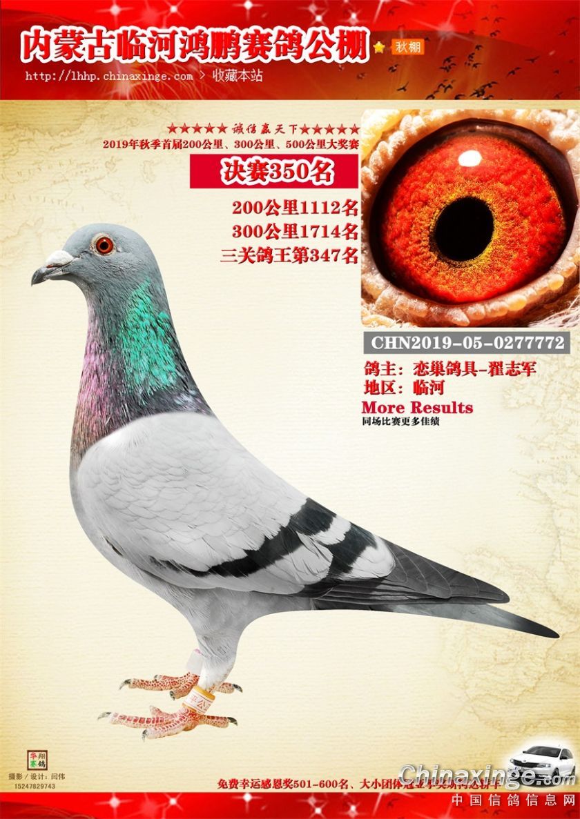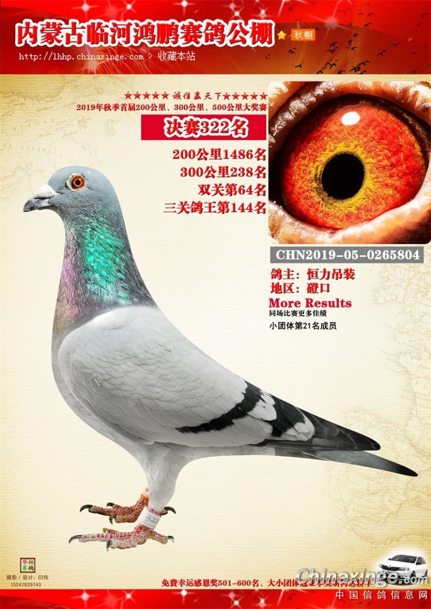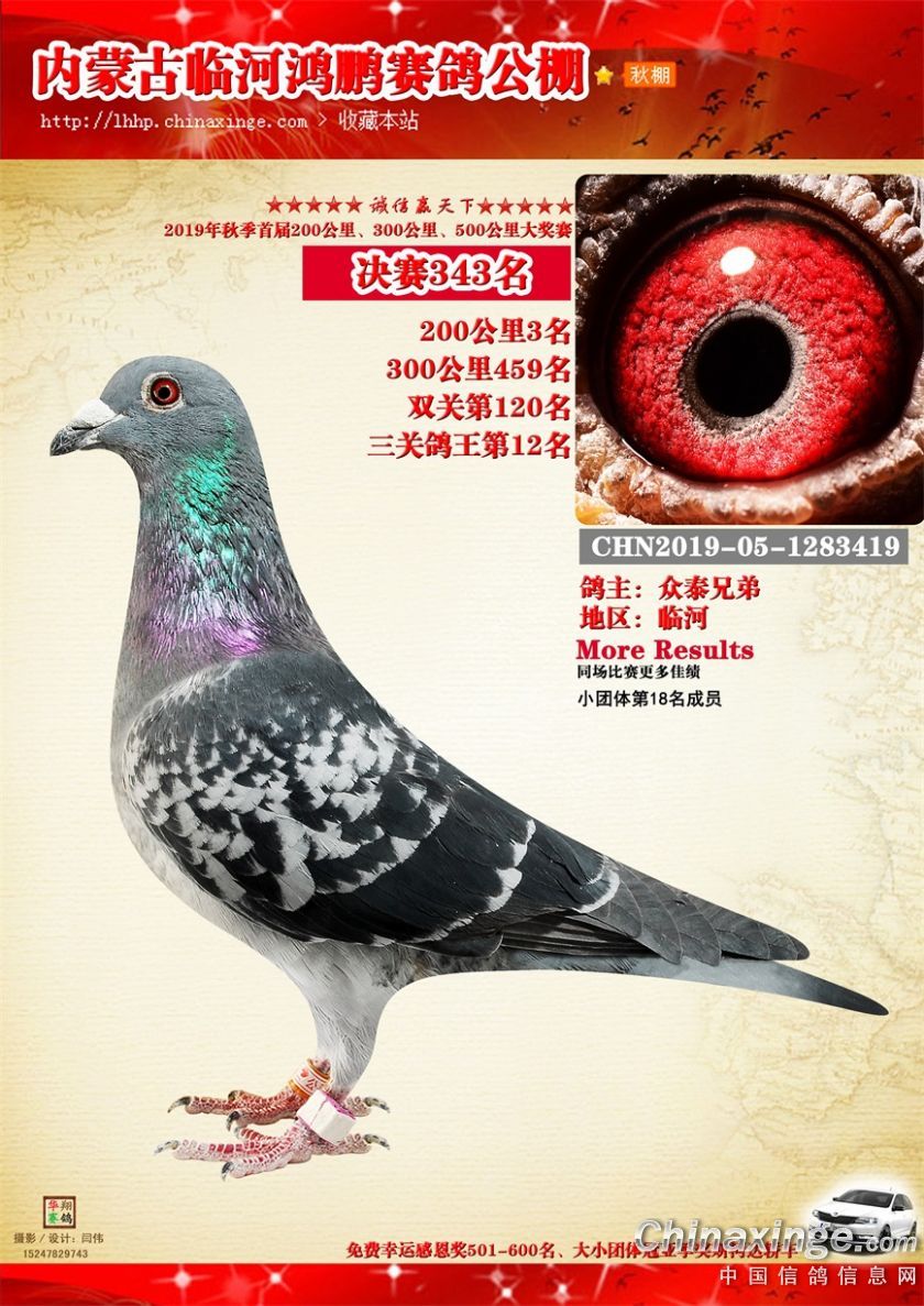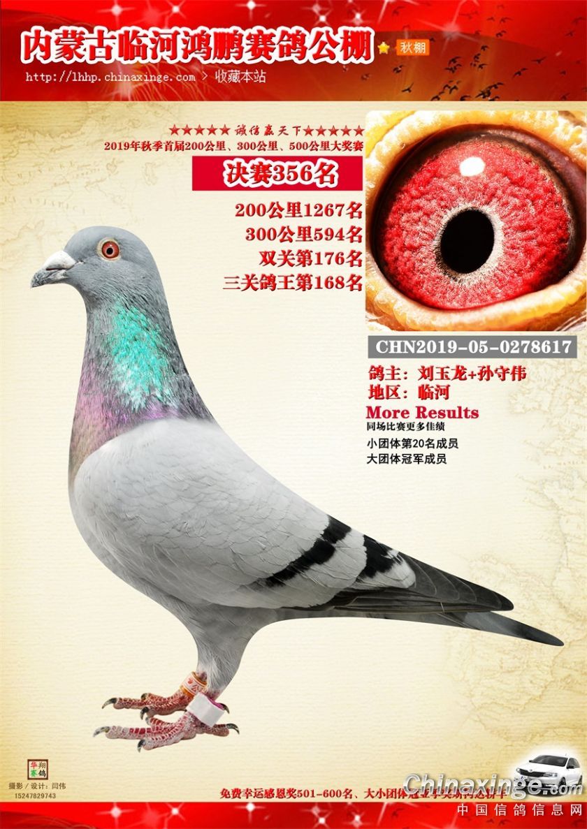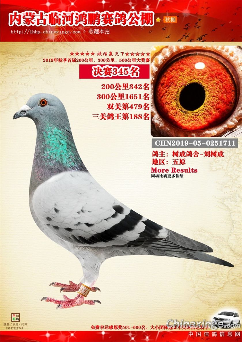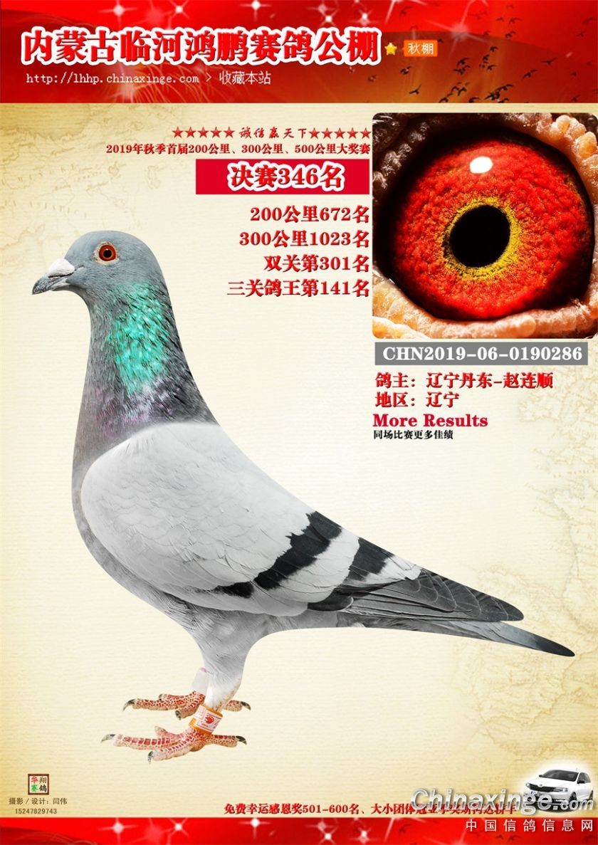 2019年临河鸿鹏赛鸽公棚获奖鸽321-380