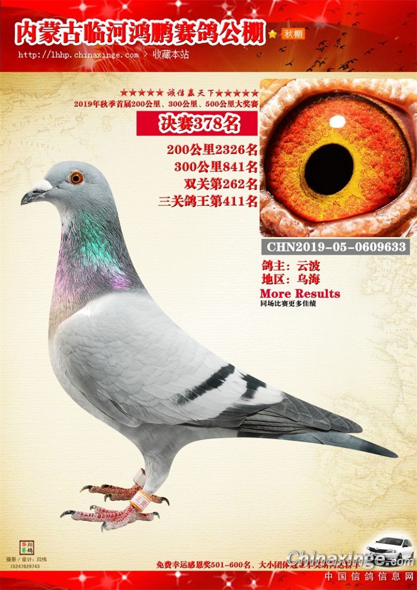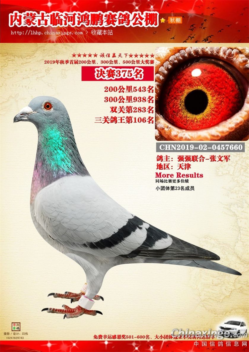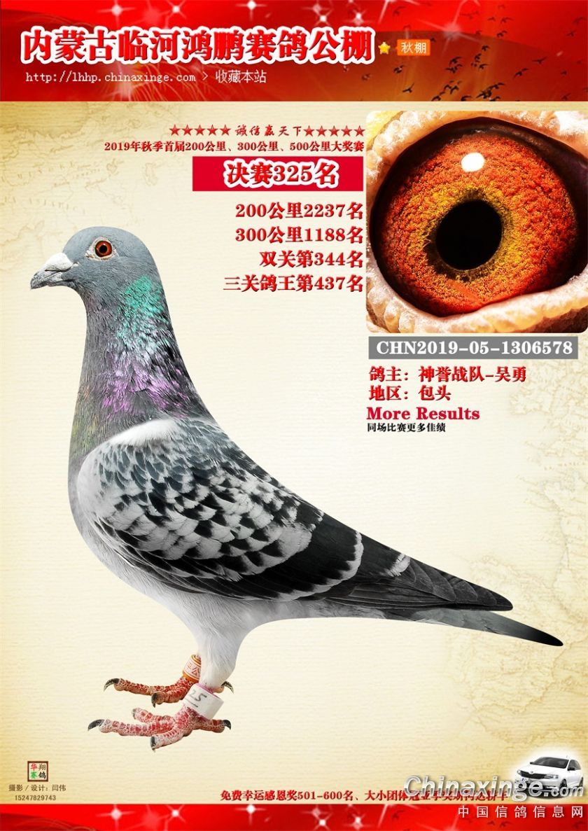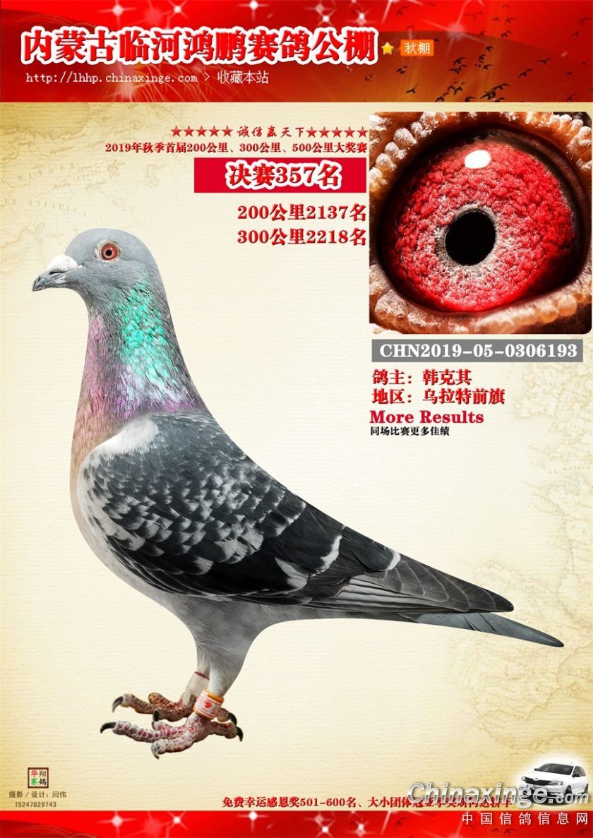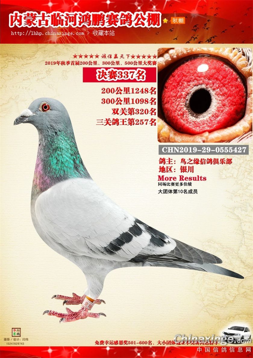 2019年临河鸿鹏赛鸽公棚获奖鸽321-380