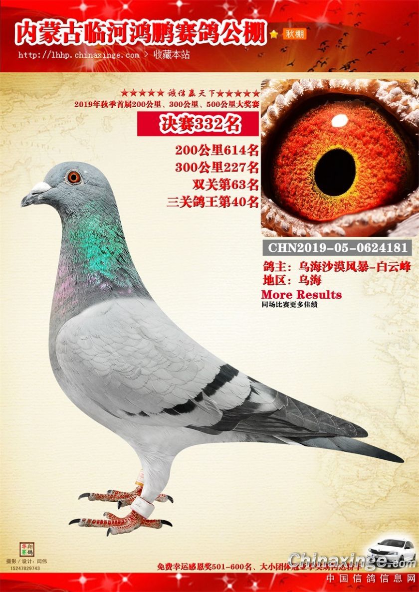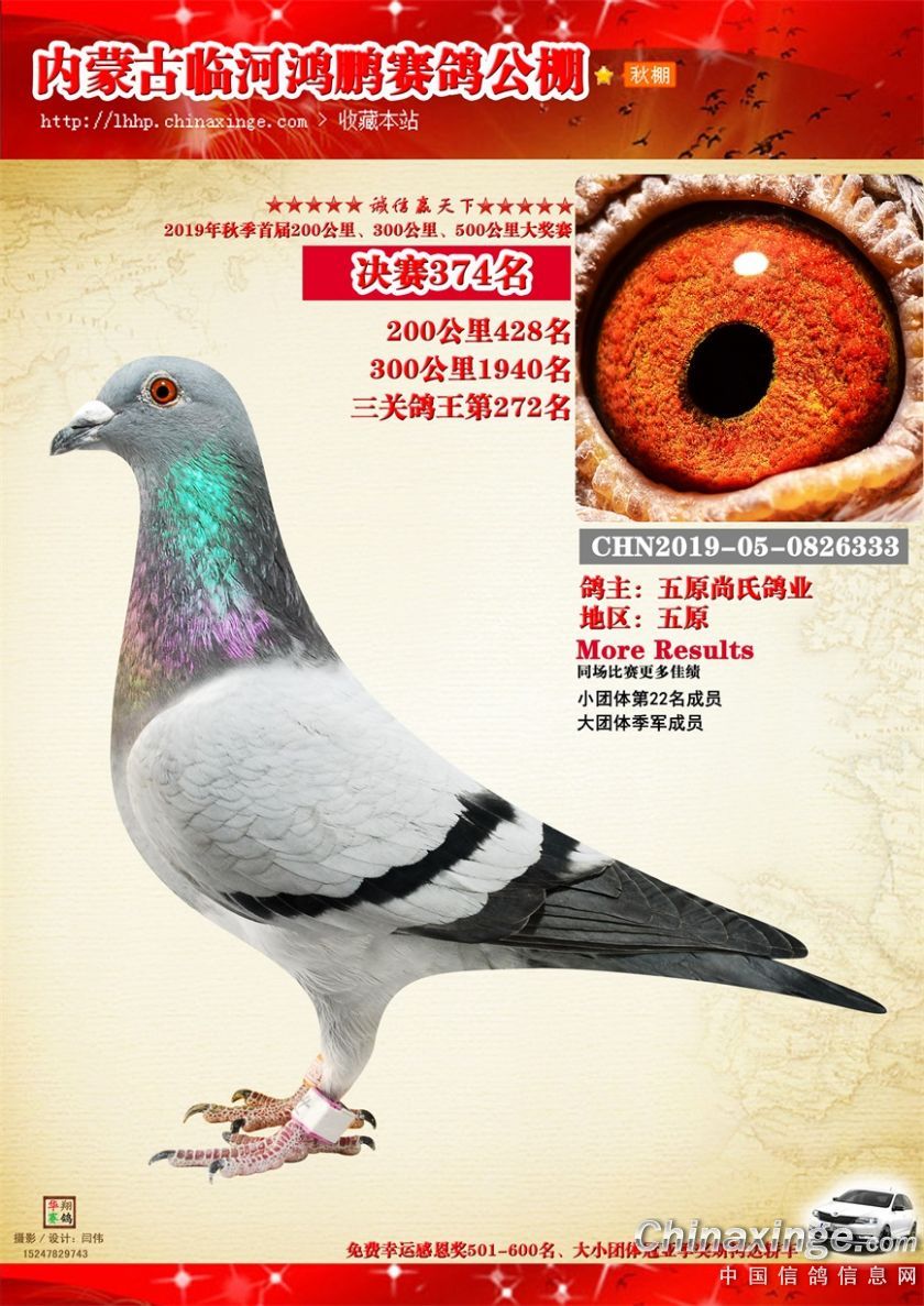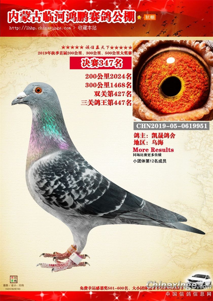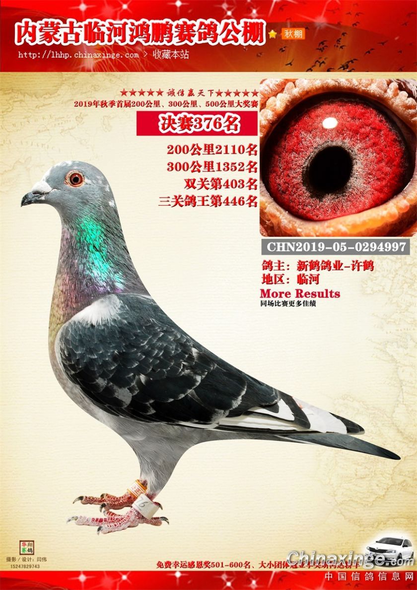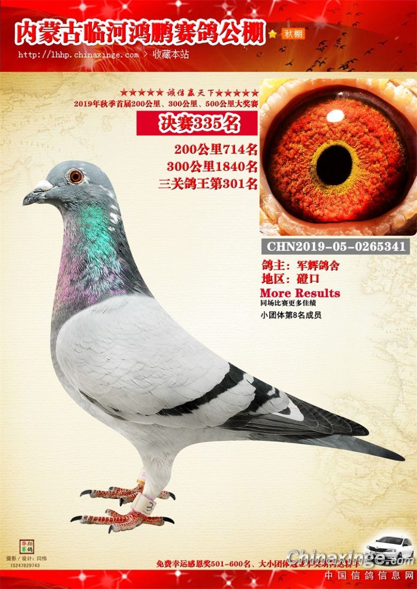 2019年临河鸿鹏赛鸽公棚获奖鸽321-380