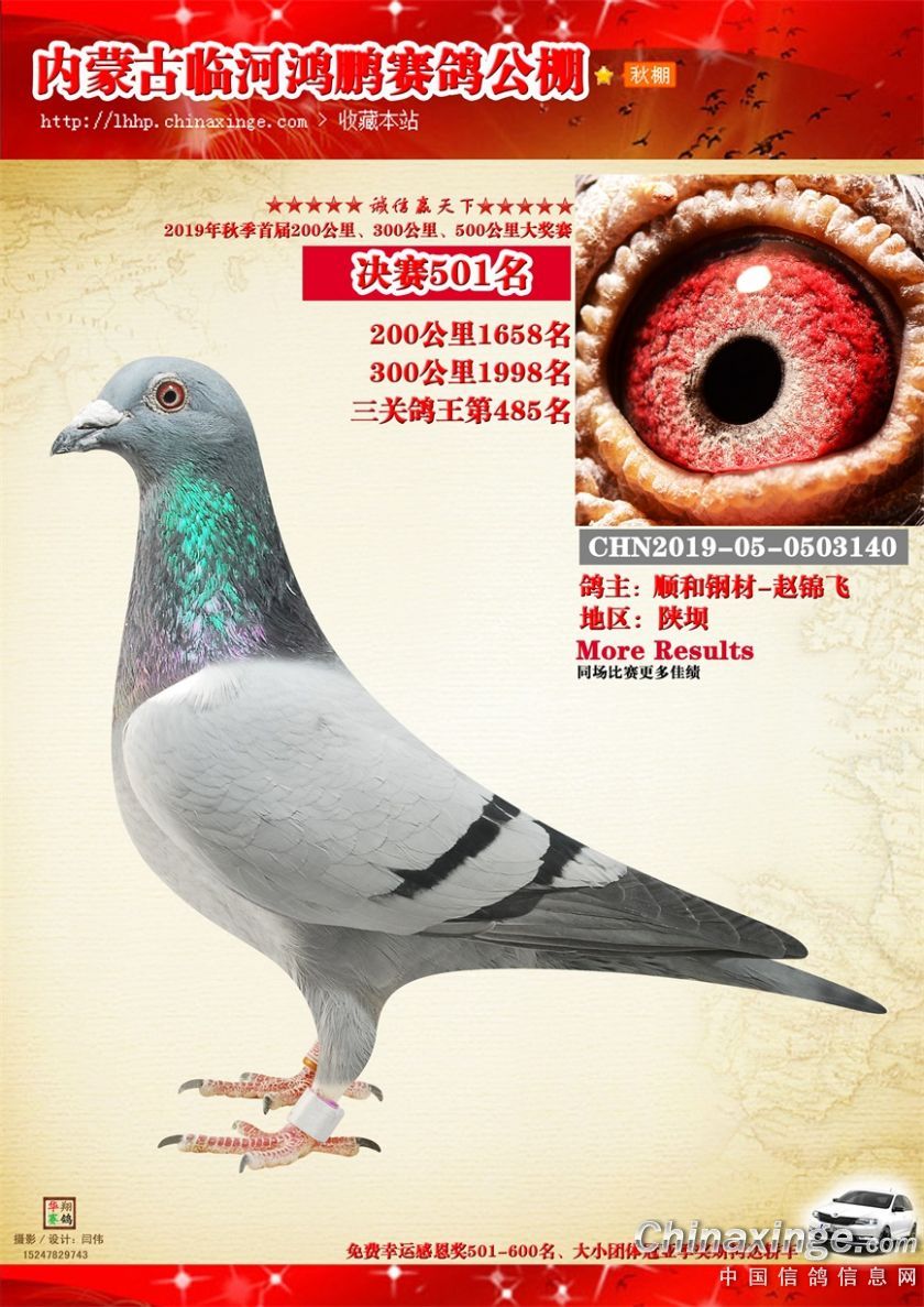 2019年临河鸿鹏赛鸽公棚获奖鸽501-502