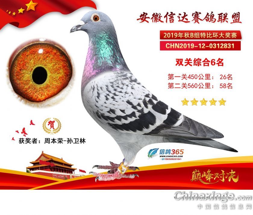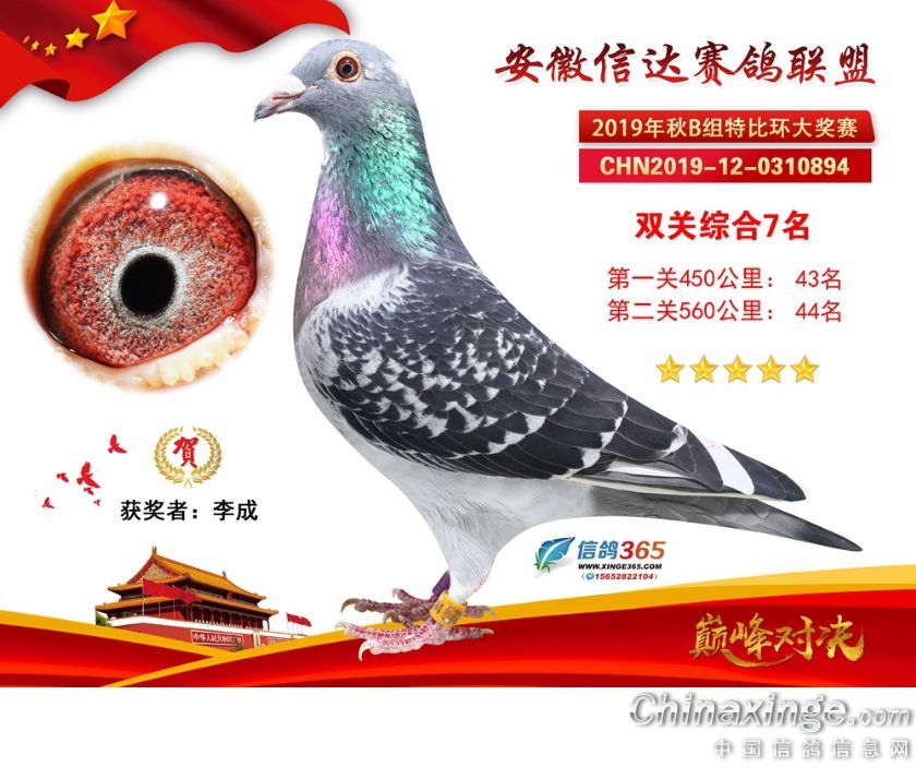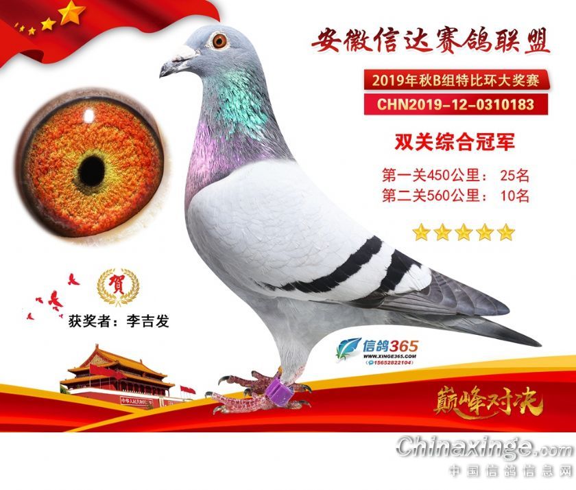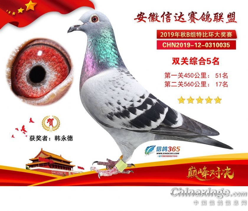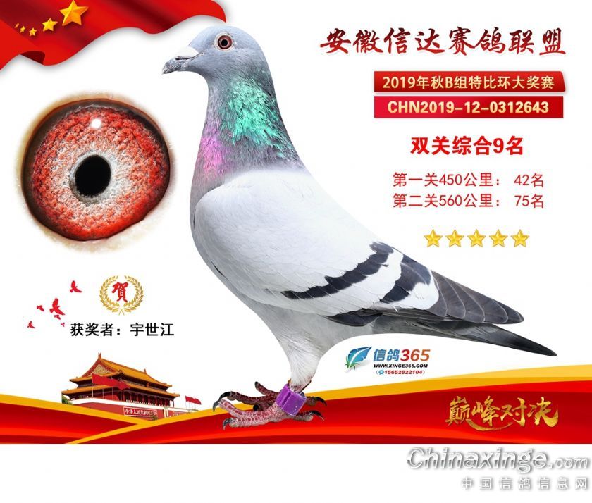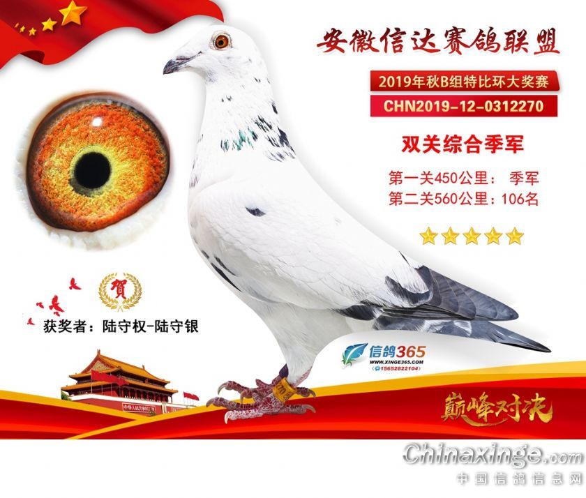 作品说明: 安徽信达联盟2019年秋季特比环B组获奖鸽