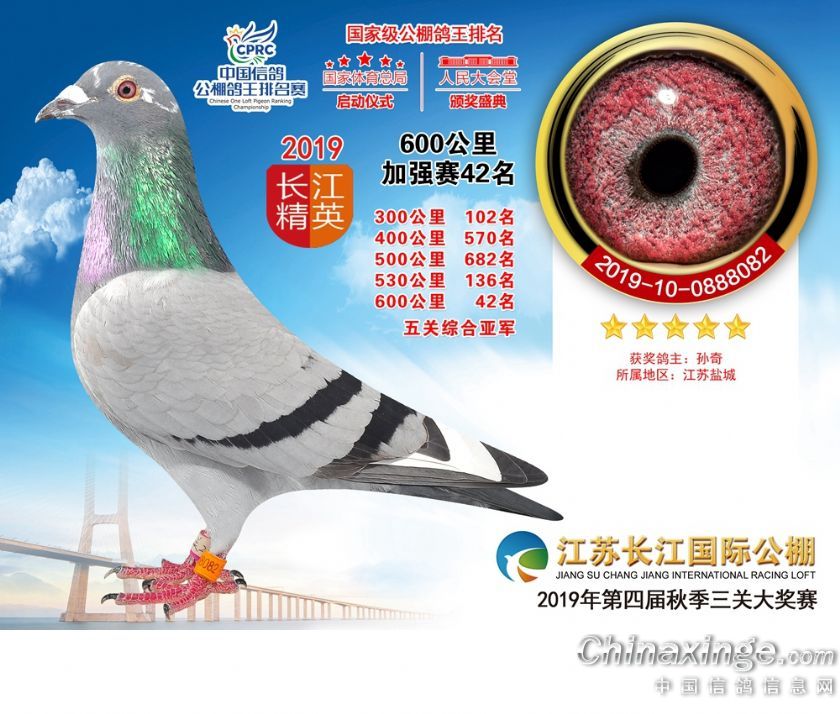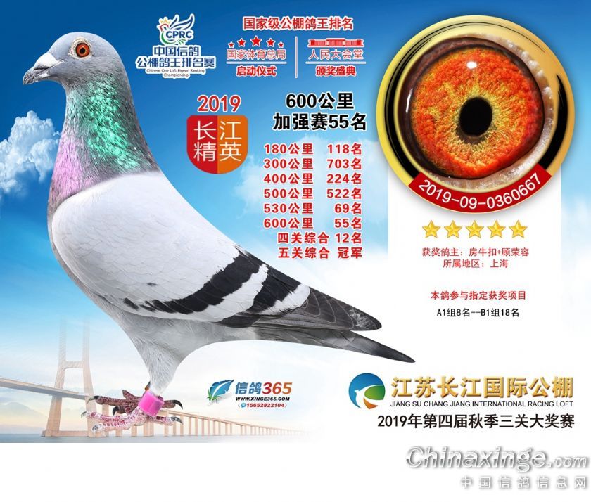作品说明: 江苏长江公棚2019年600公里五关鸽王前3名