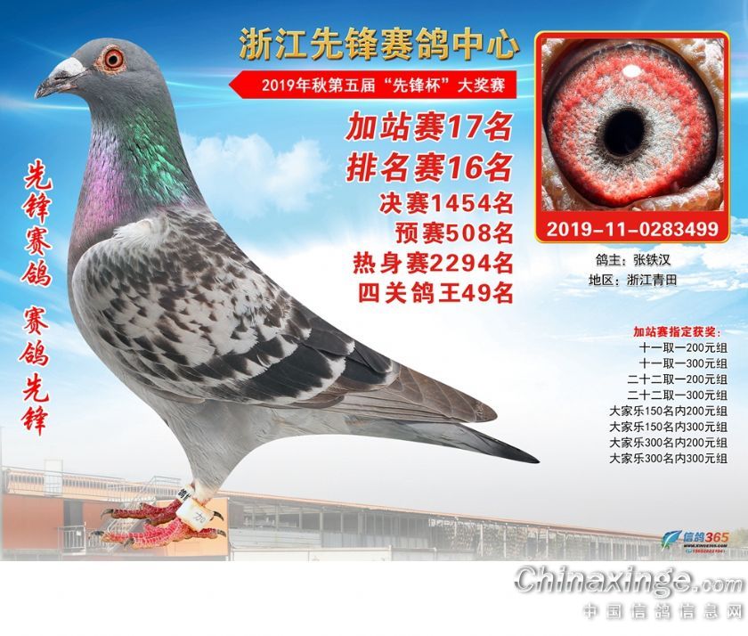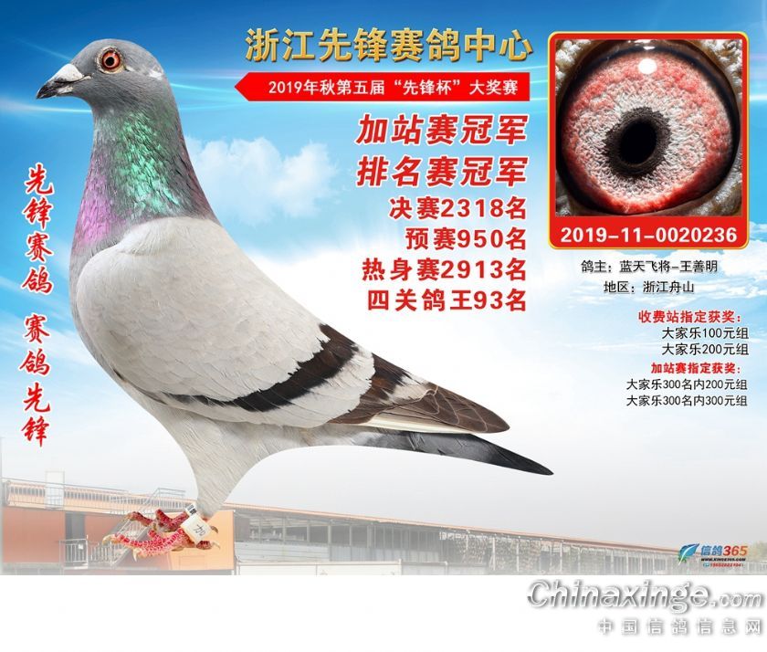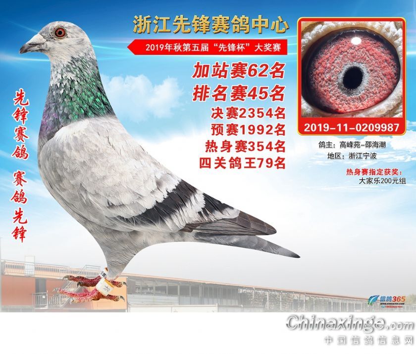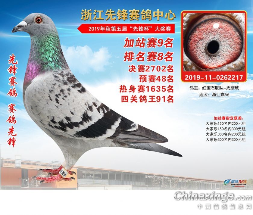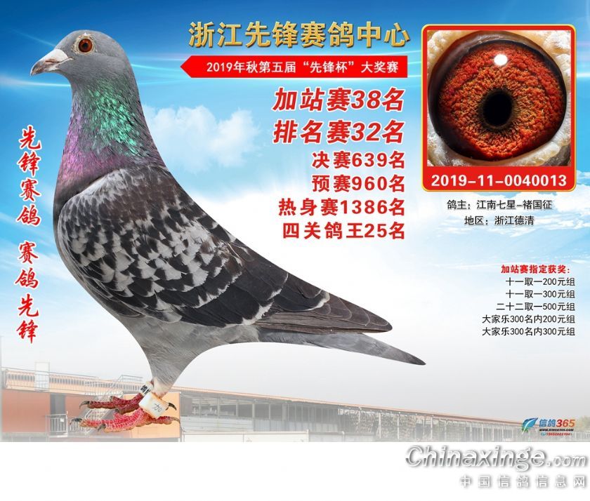浙江先锋赛鸽中心2019年加站赛获奖鸽1-80名