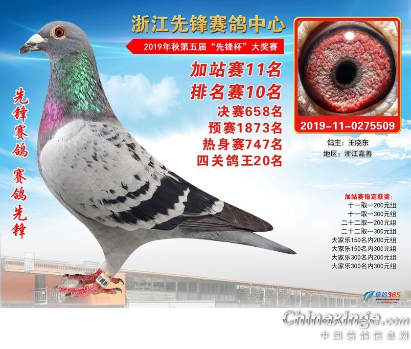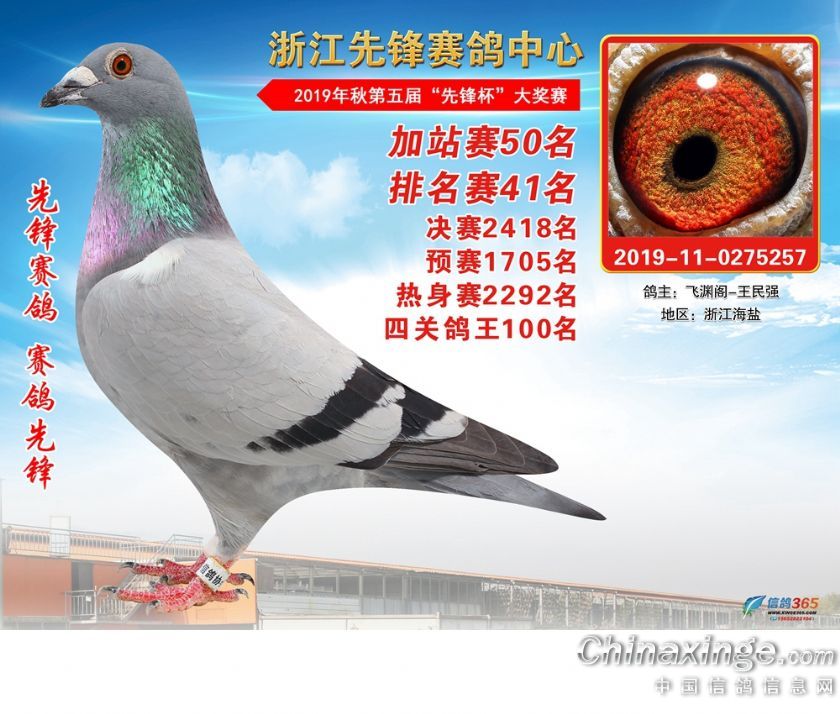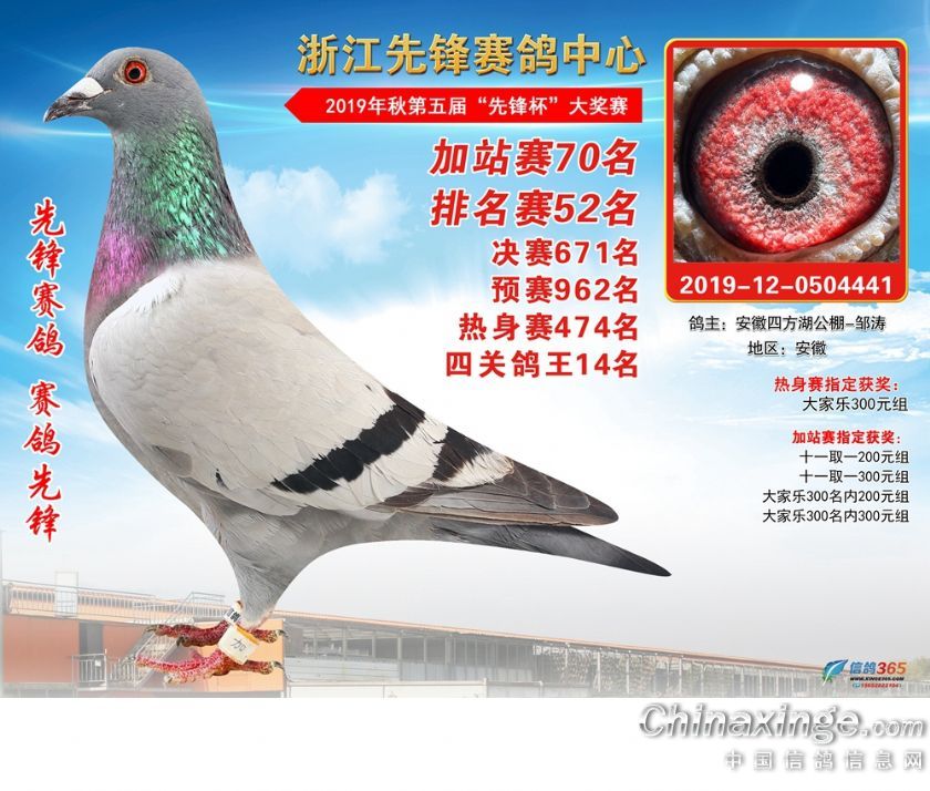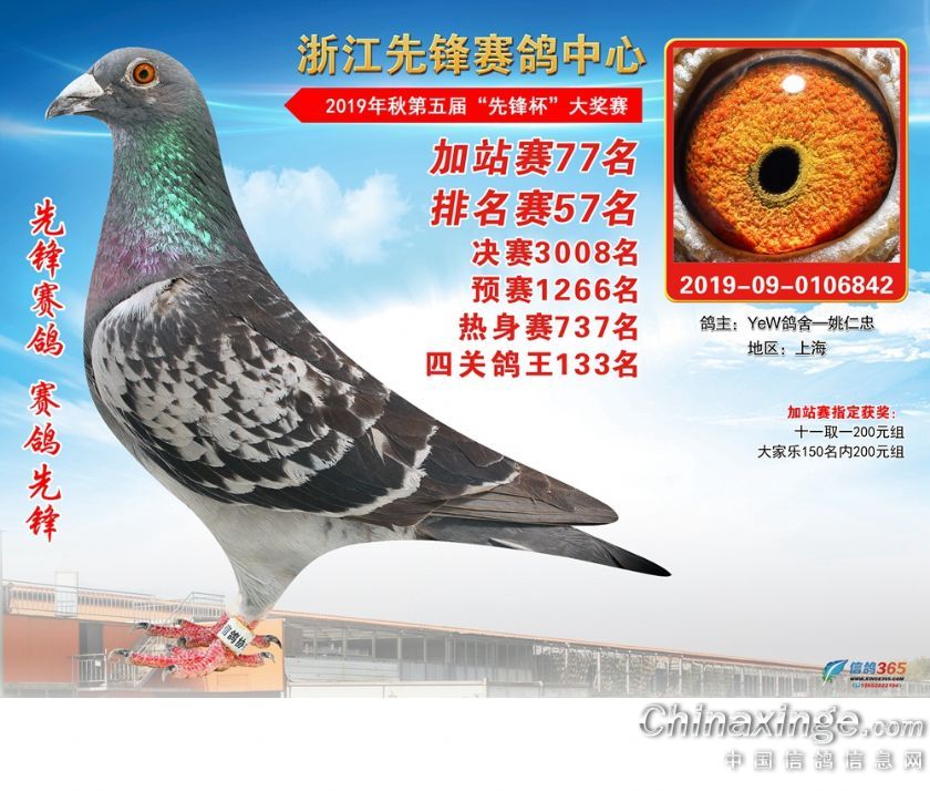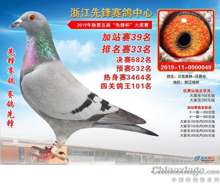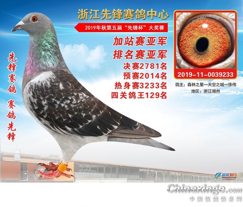 浙江先锋赛鸽中心2019年加站赛获奖鸽1-80名