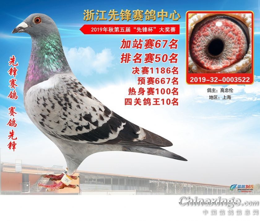 作品说明: 浙江先锋赛鸽中心2019年加站赛获奖鸽1-80名