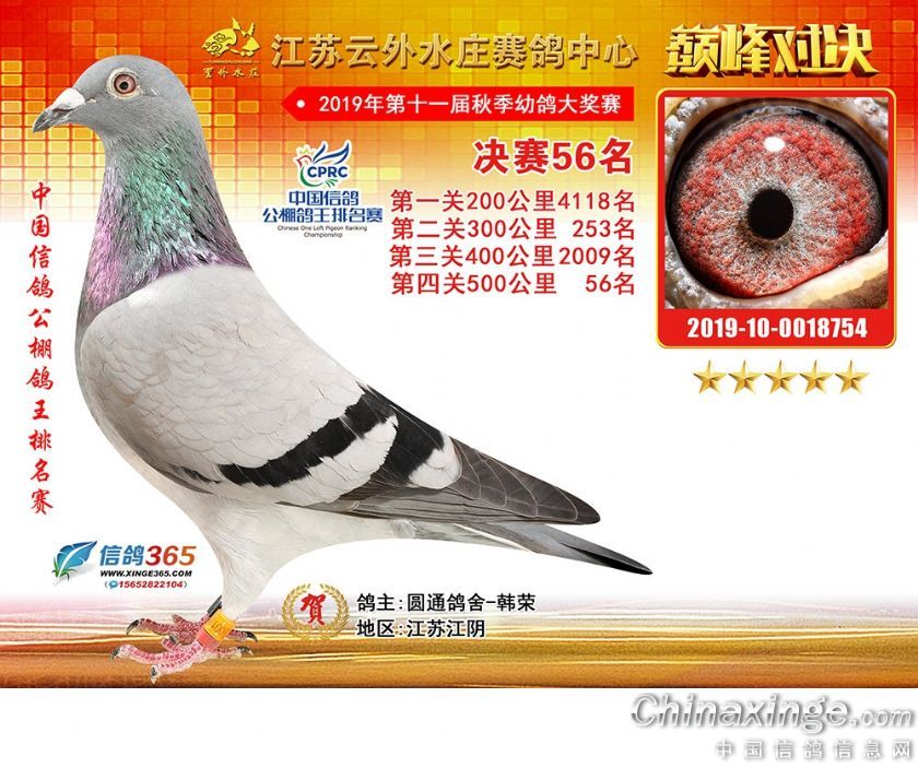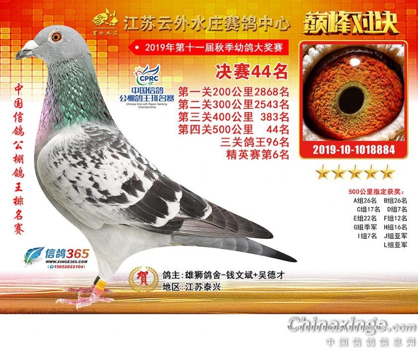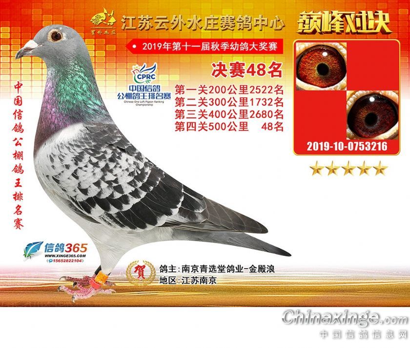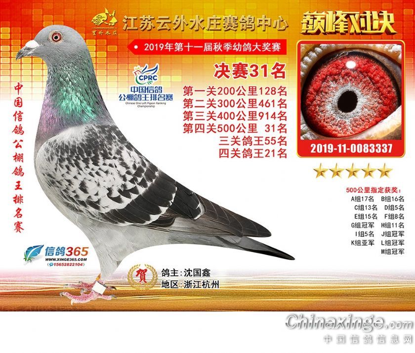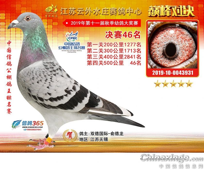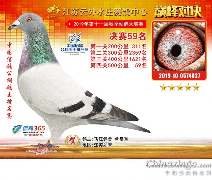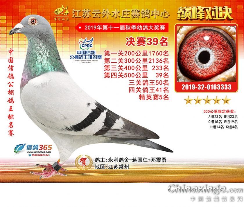 江苏云外水庄赛鸽中心2019年获奖鸽31-60名