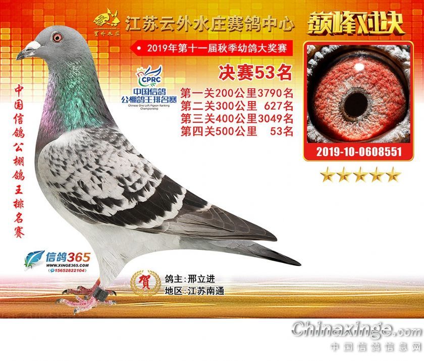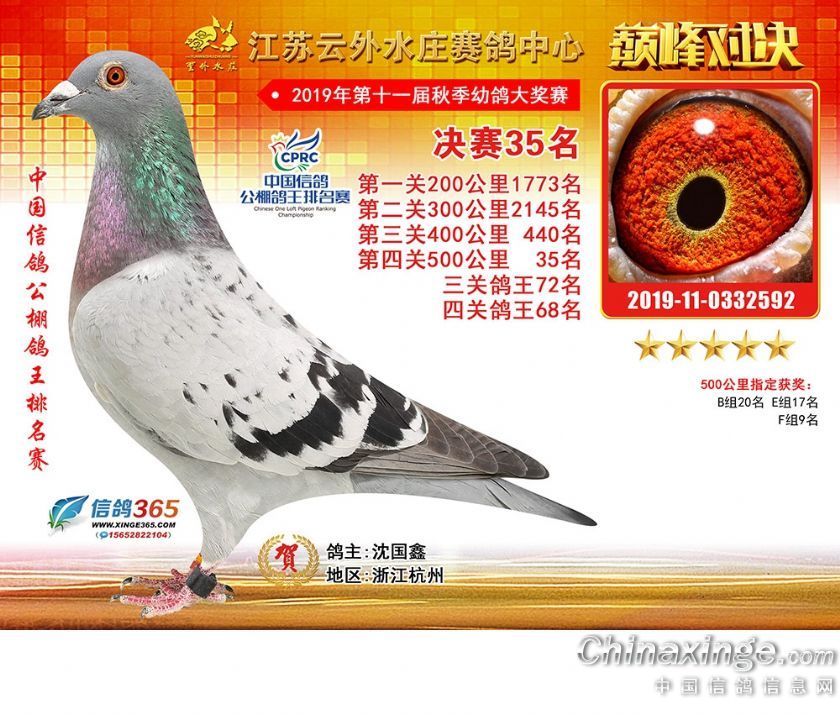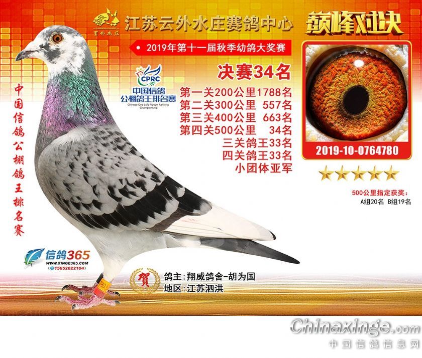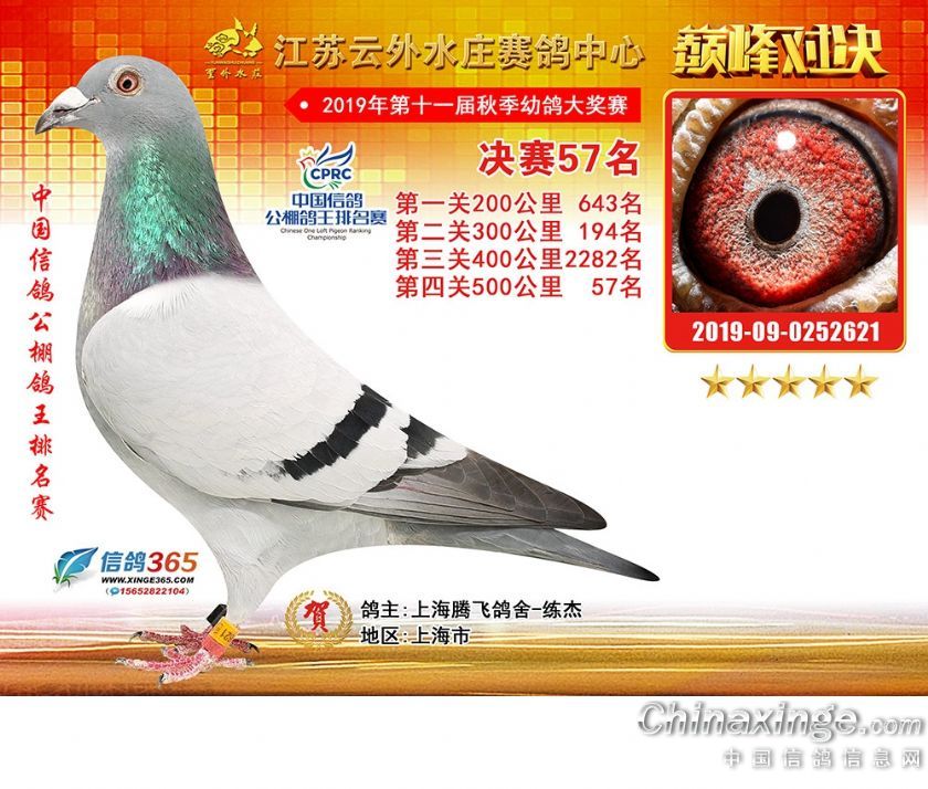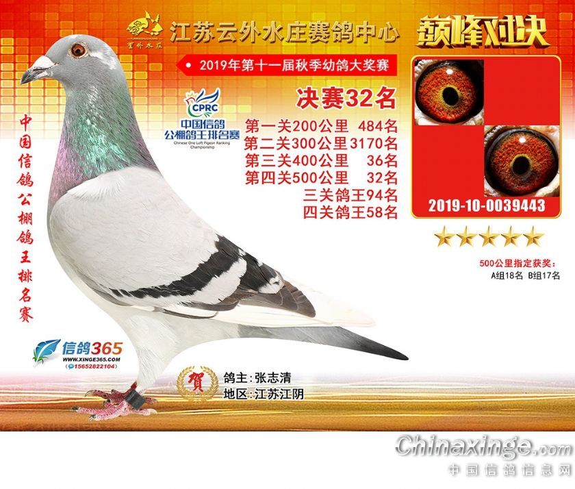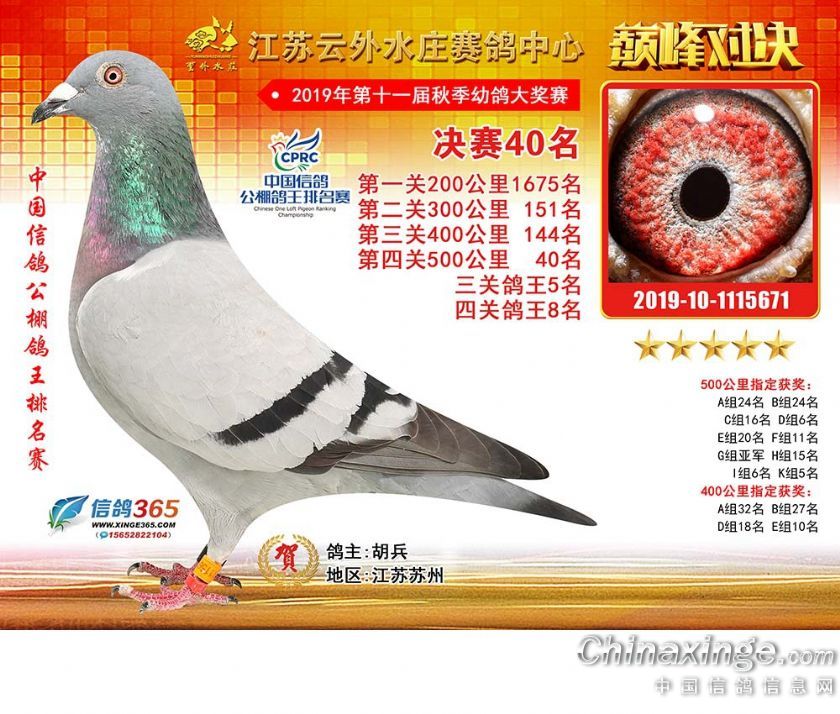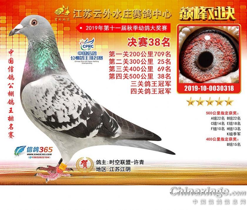 作品说明: 江苏云外水庄赛鸽中心2019年获奖鸽31-60名