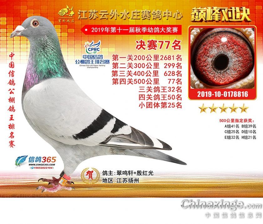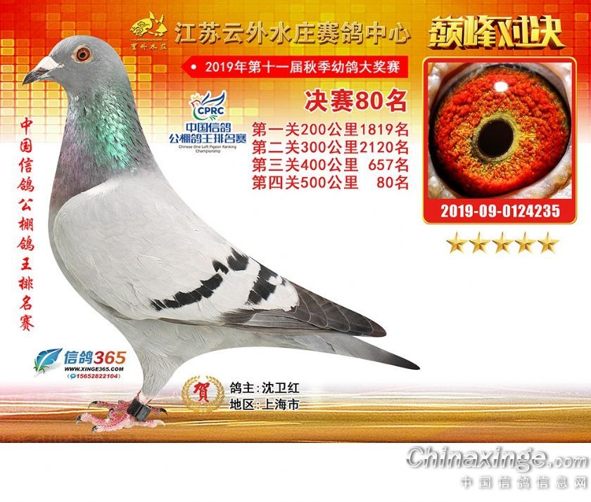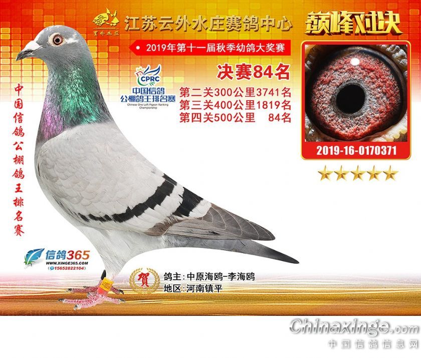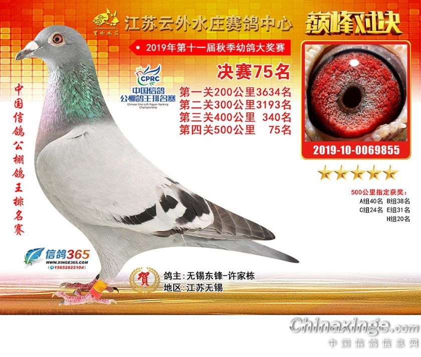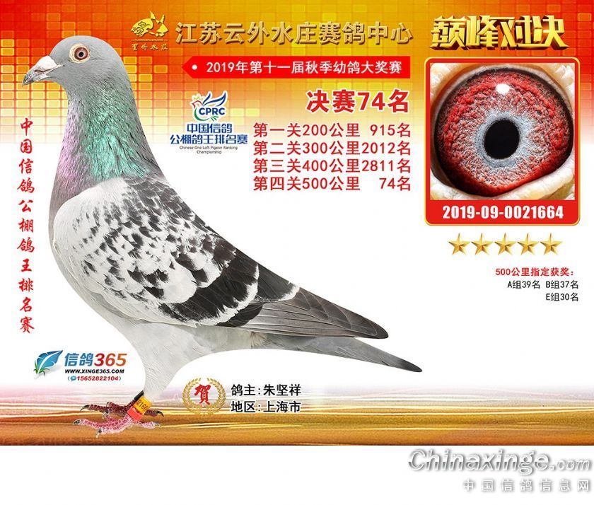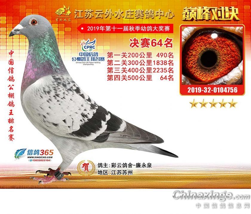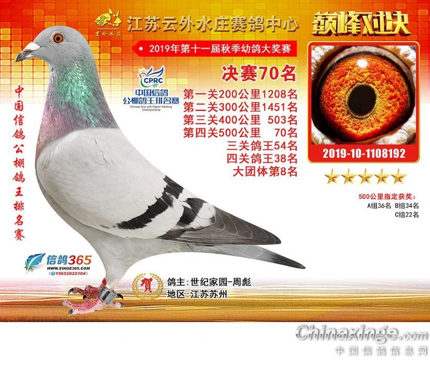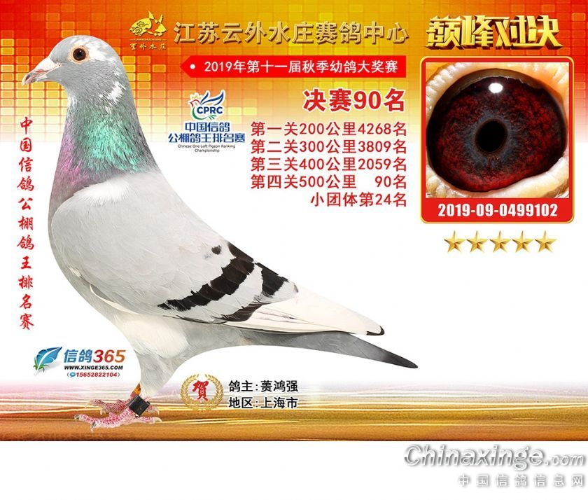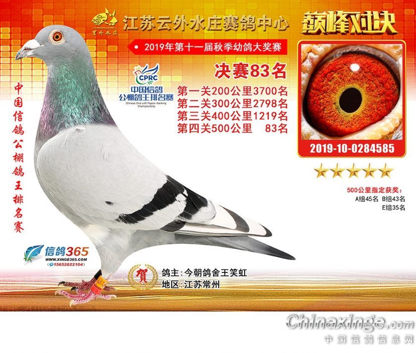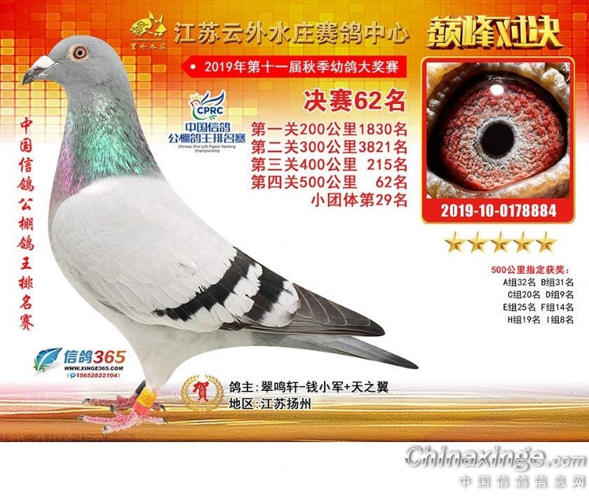 作品说明: 江苏云外水庄赛鸽中心2019年获奖鸽61-90名