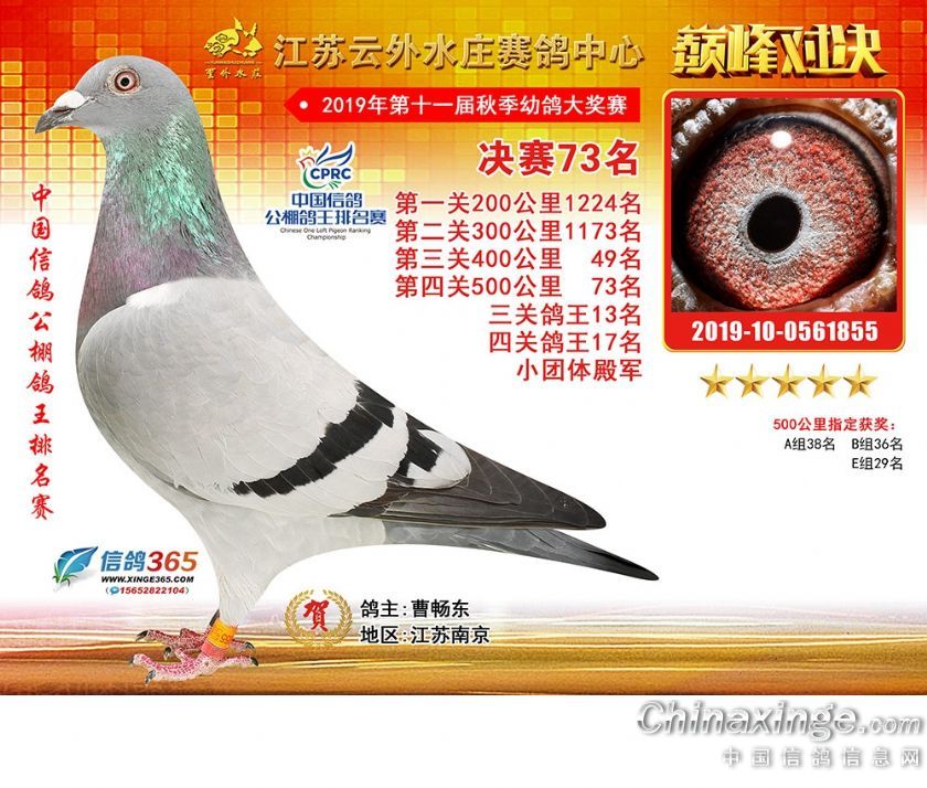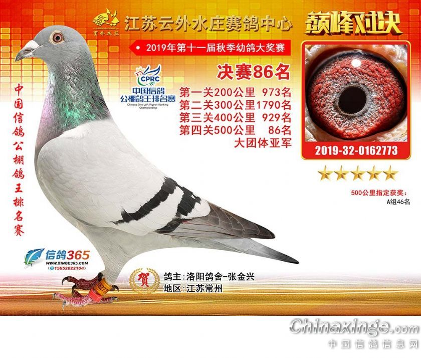 江苏云外水庄赛鸽中心2019年获奖鸽61-90名