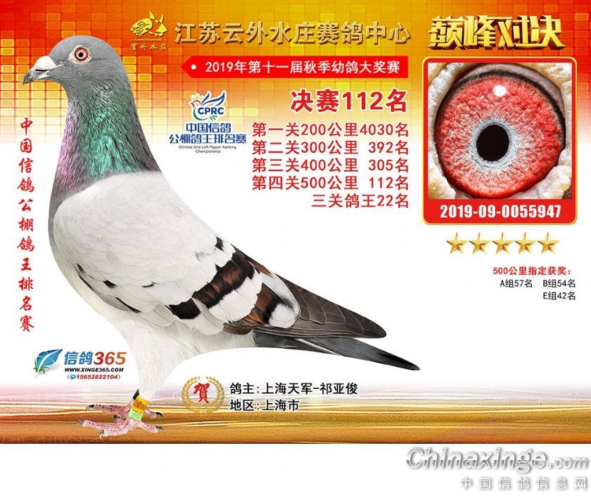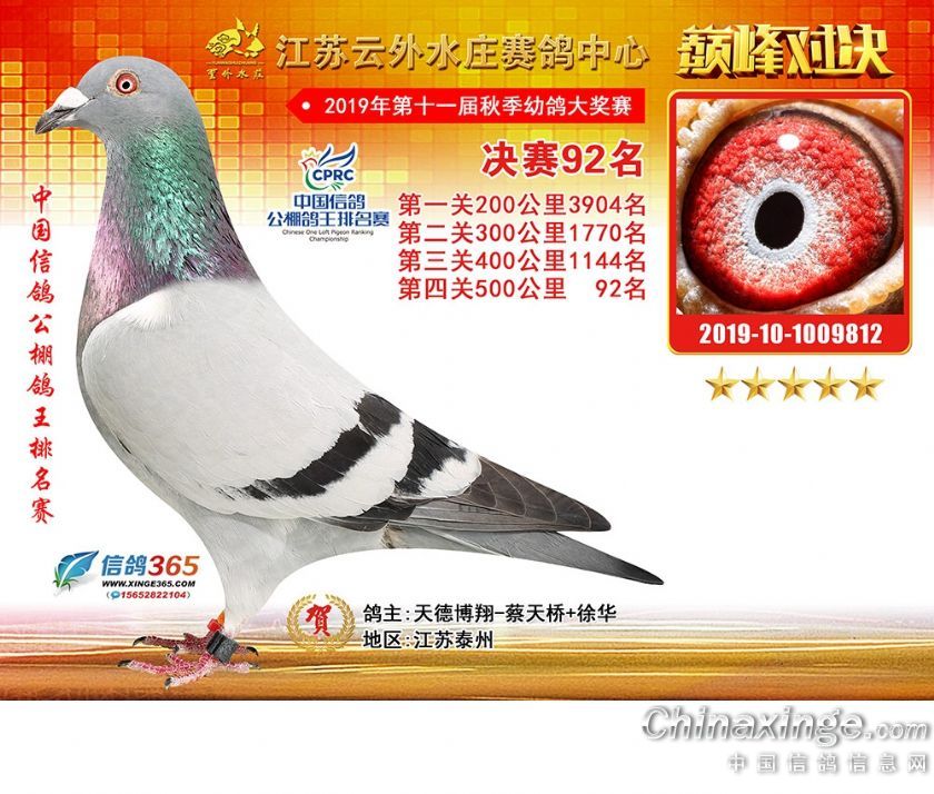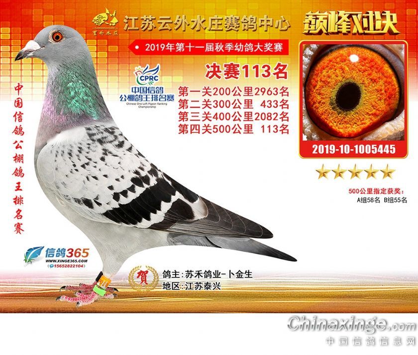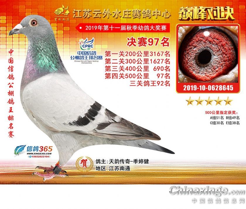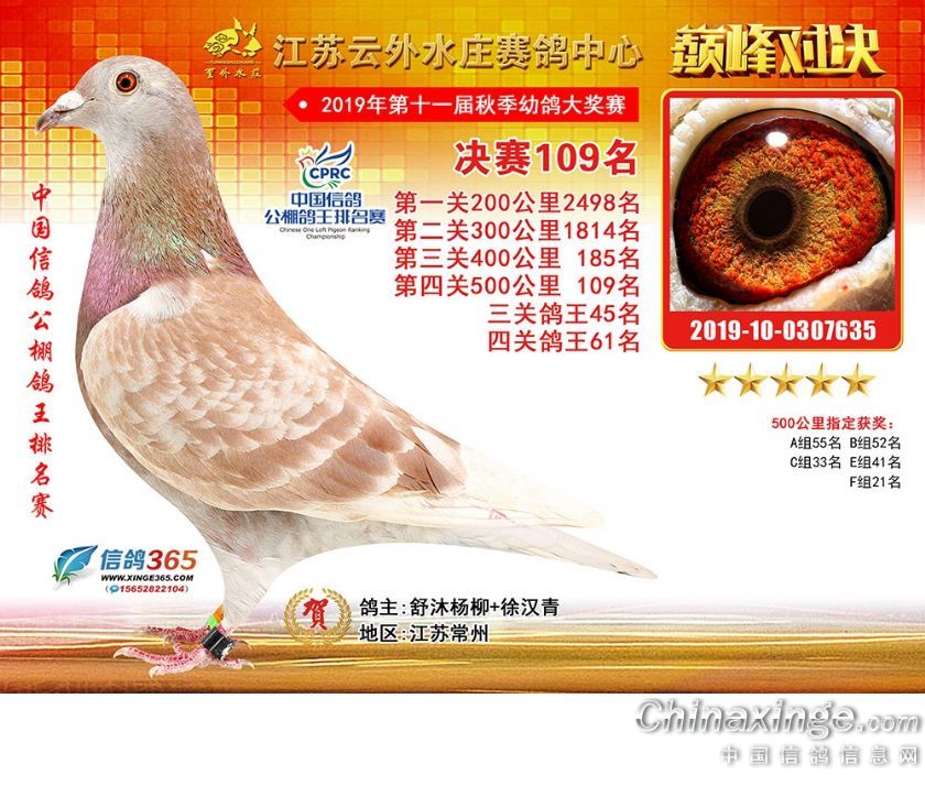 江苏云外水庄赛鸽中心2019年获奖鸽91-120名