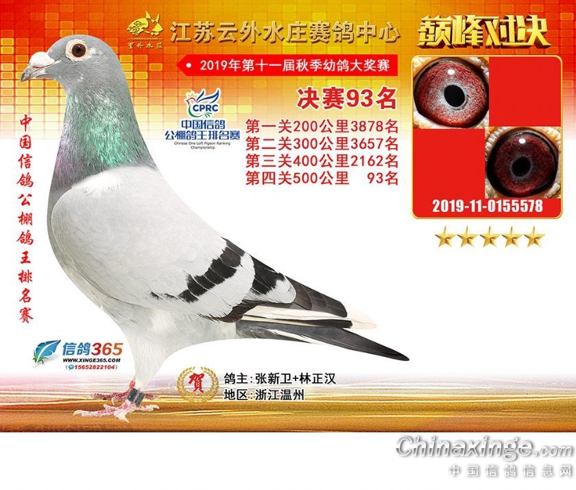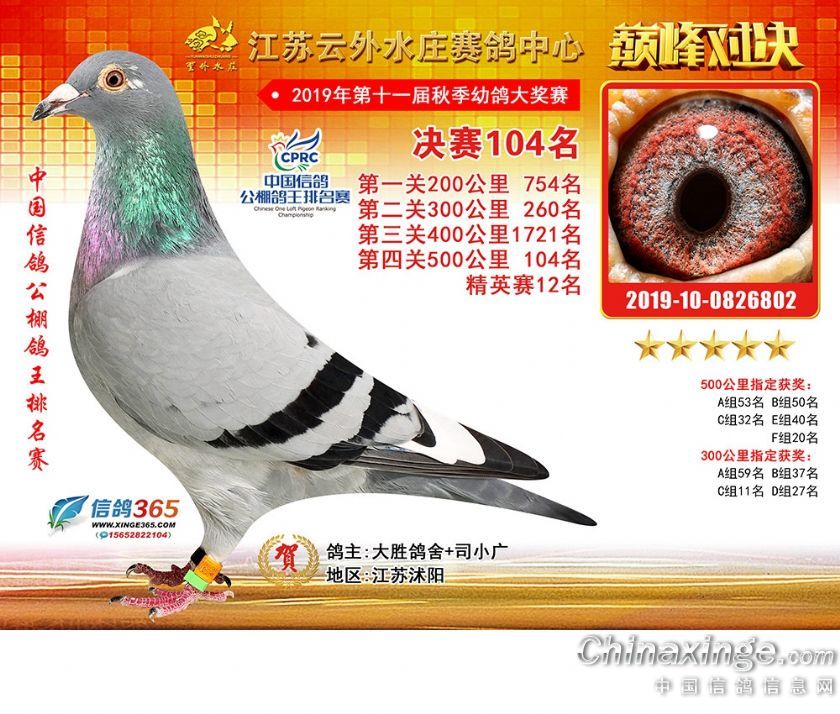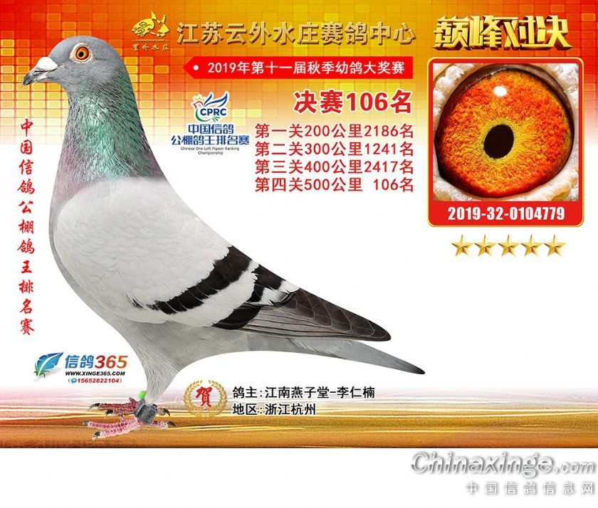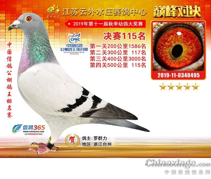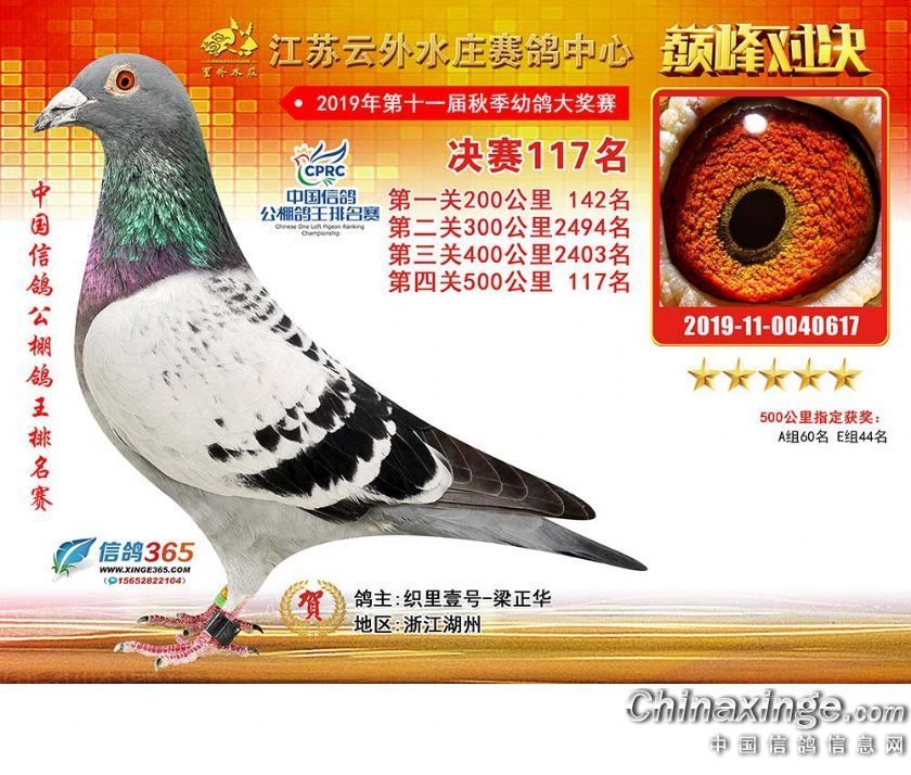 作品说明: 江苏云外水庄赛鸽中心2019年获奖鸽91-120名