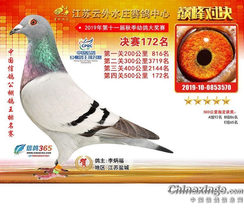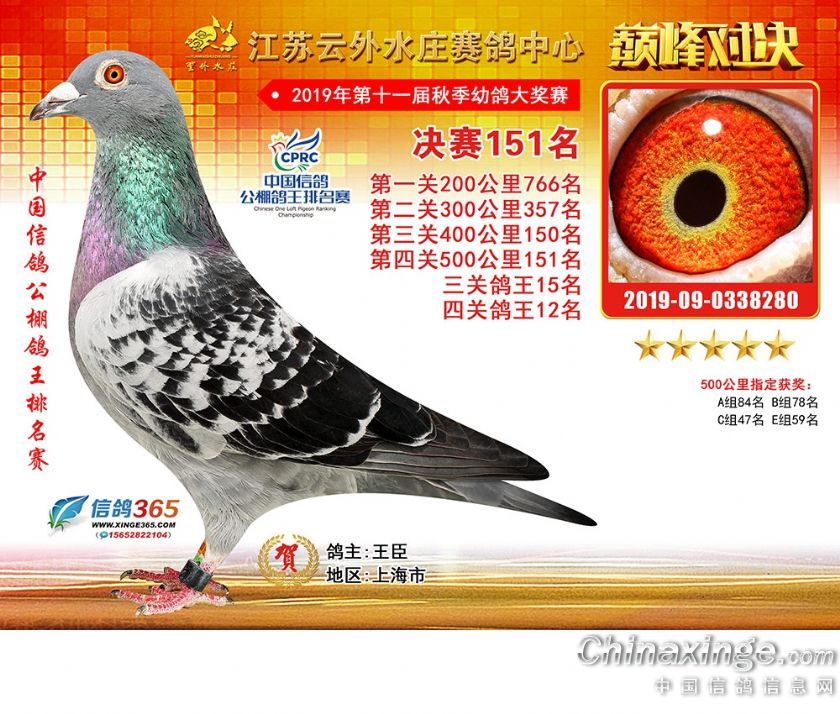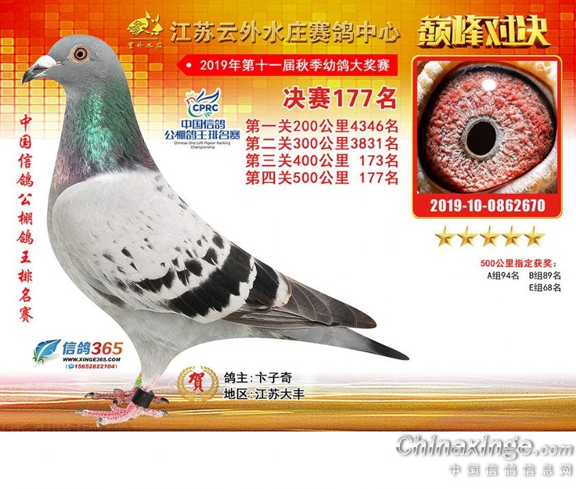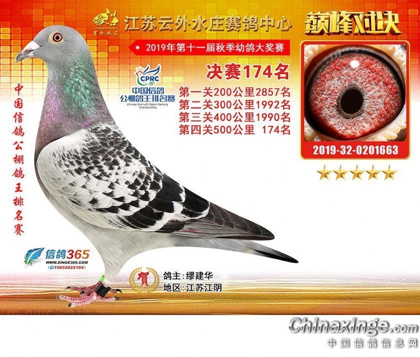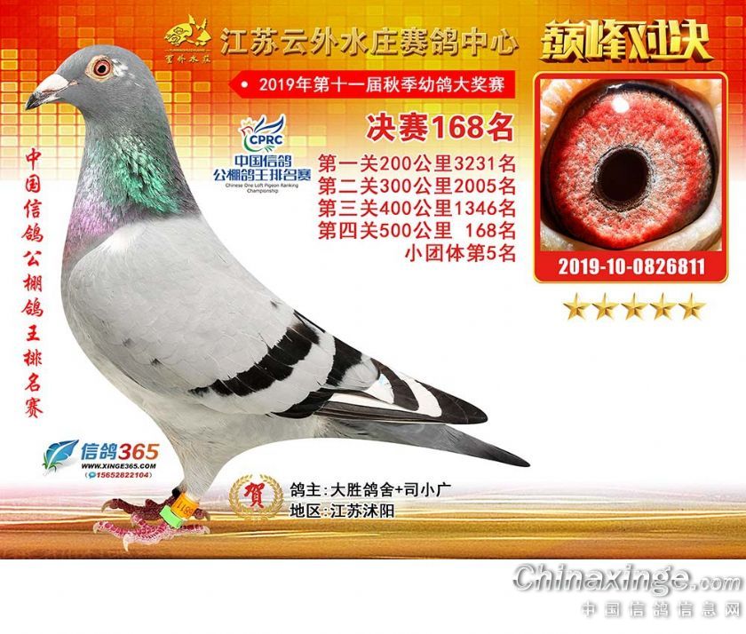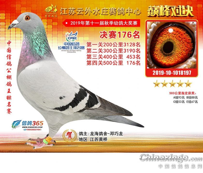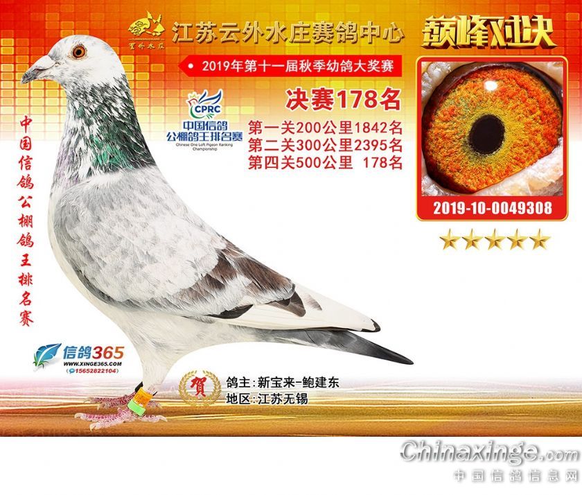 作品说明: 江苏云外水庄赛鸽中心2019年获奖鸽151-180名