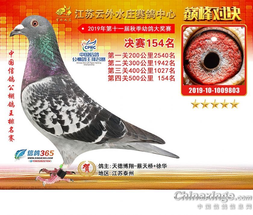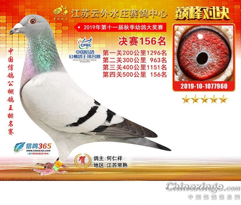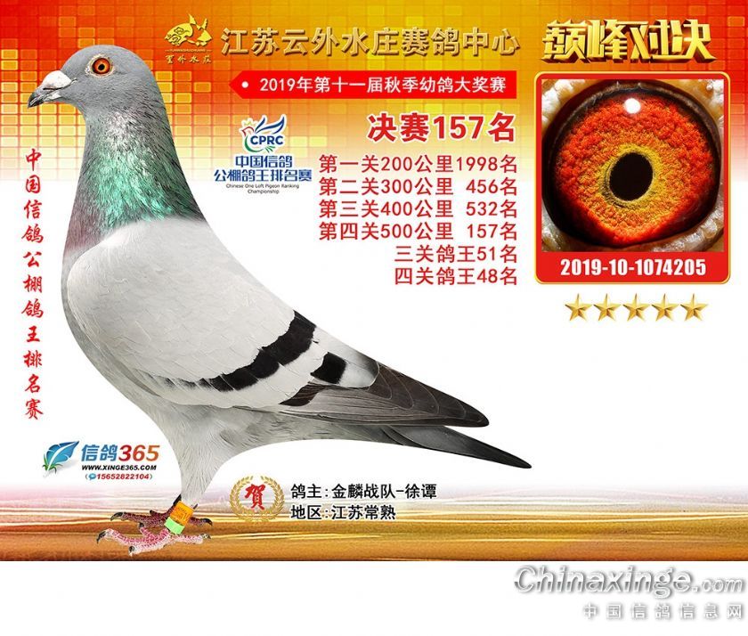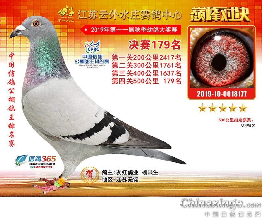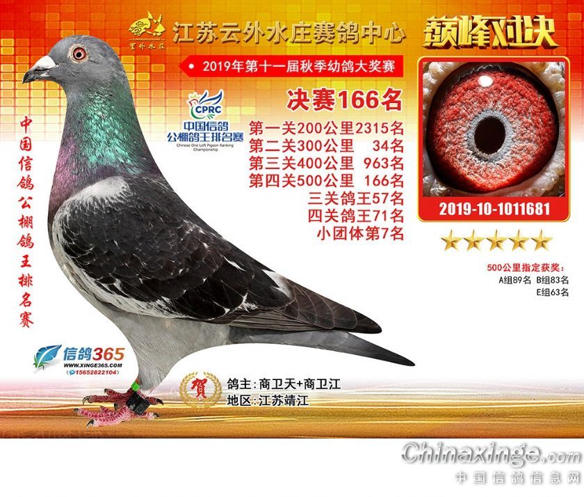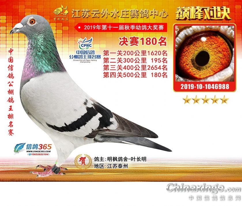 江苏云外水庄赛鸽中心2019年获奖鸽151-180名
