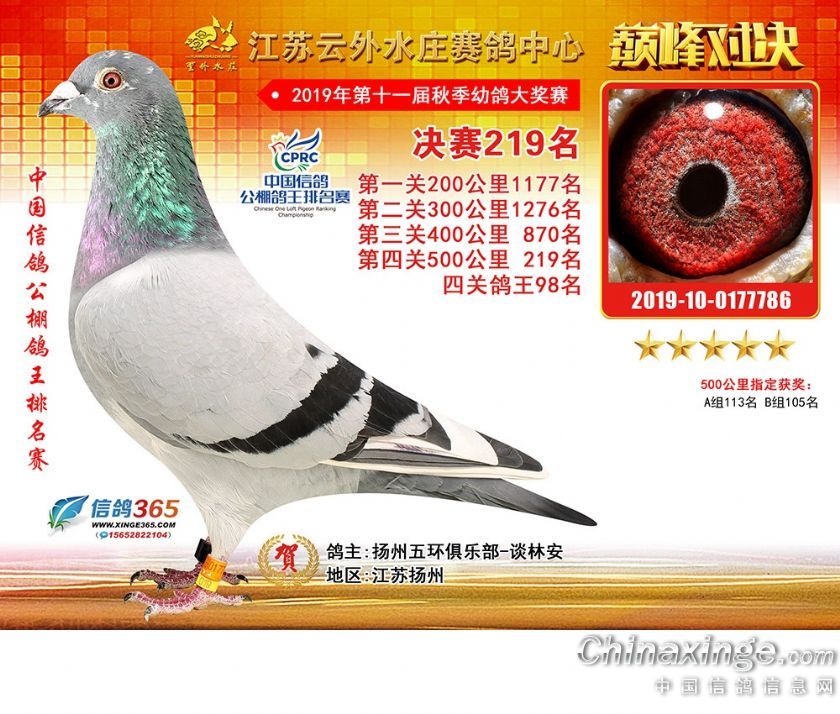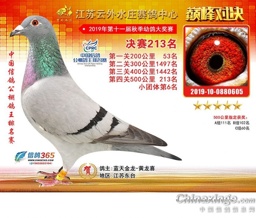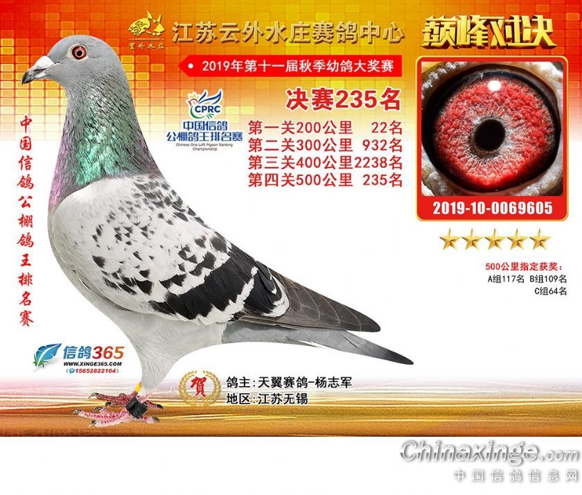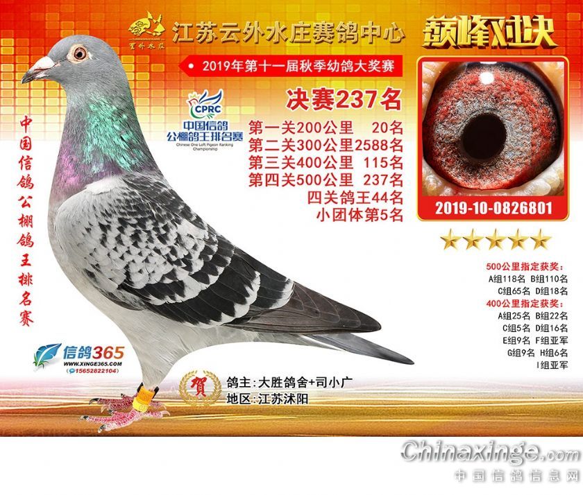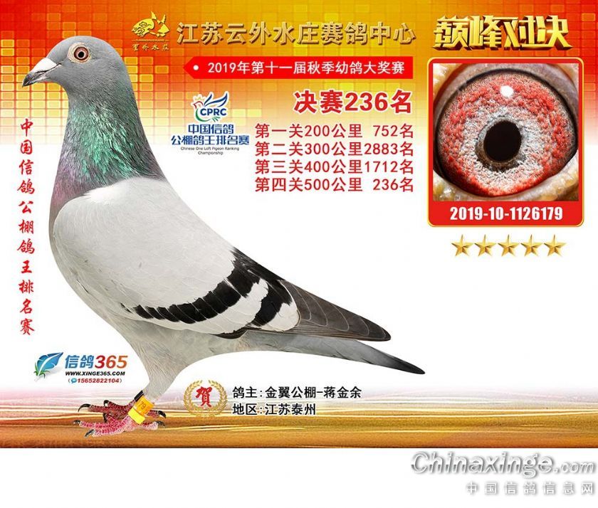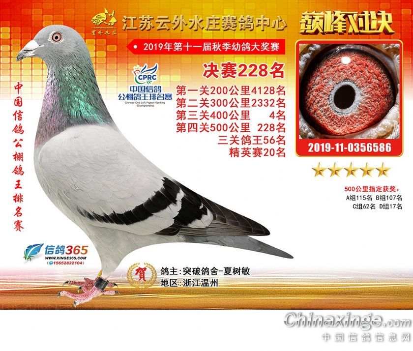 作品说明: 江苏云外水庄赛鸽中心2019年获奖鸽211-240名