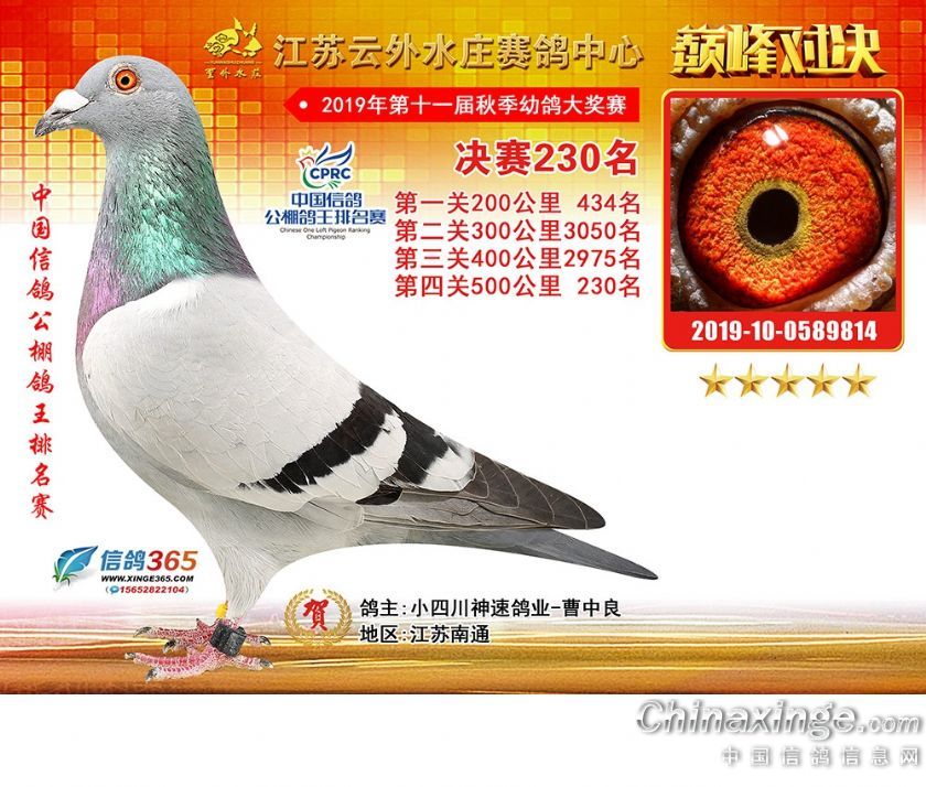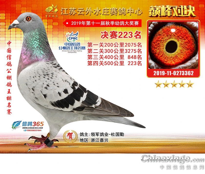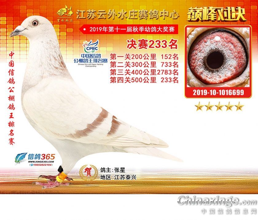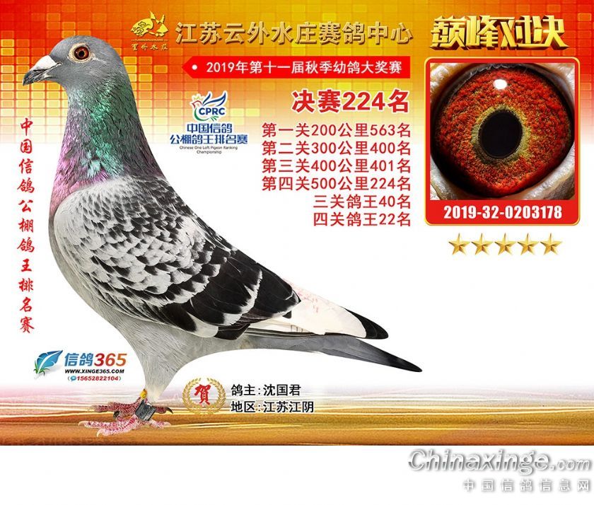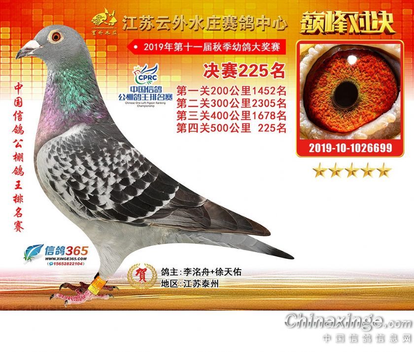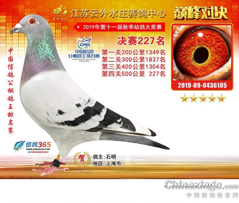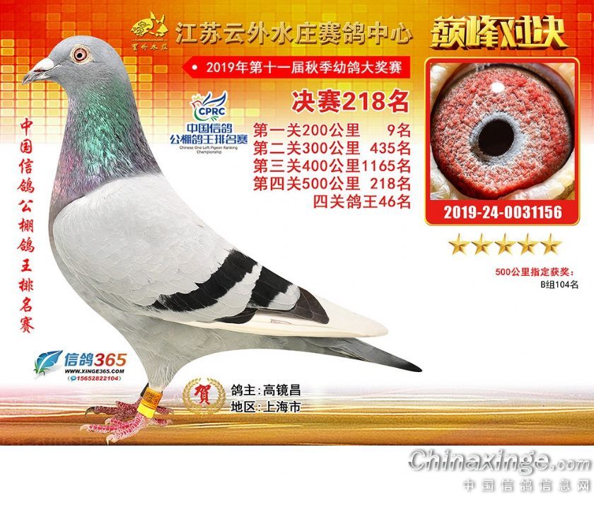 作品说明: 江苏云外水庄赛鸽中心2019年获奖鸽211-240名