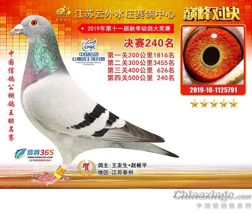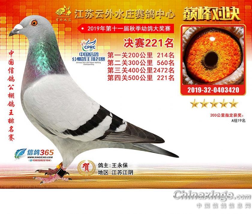 江苏云外水庄赛鸽中心2019年获奖鸽211-240名