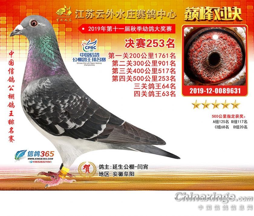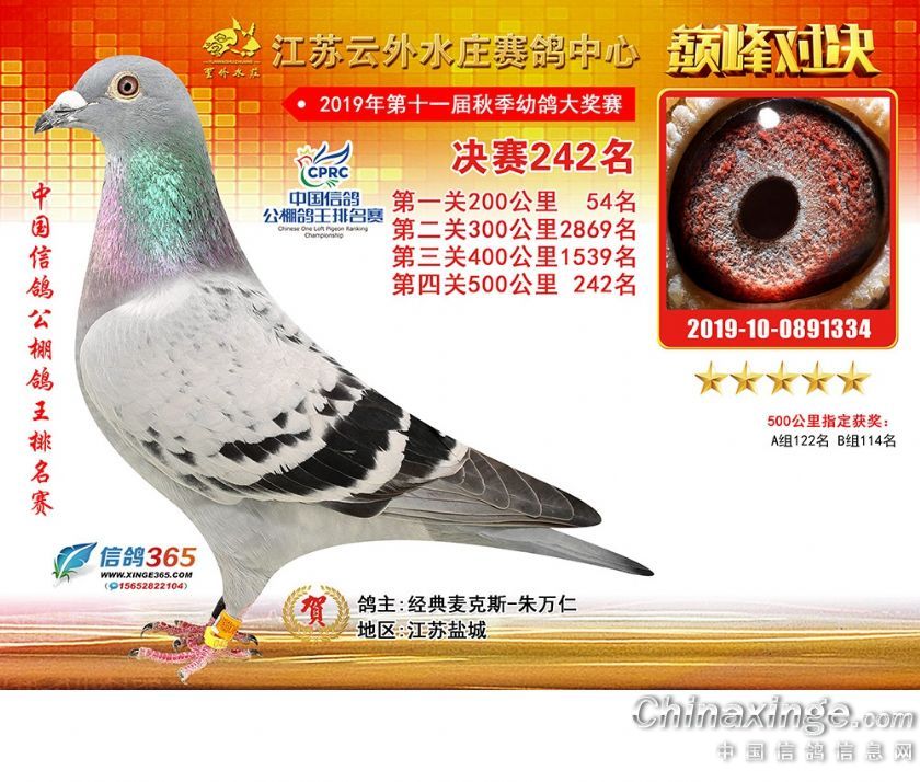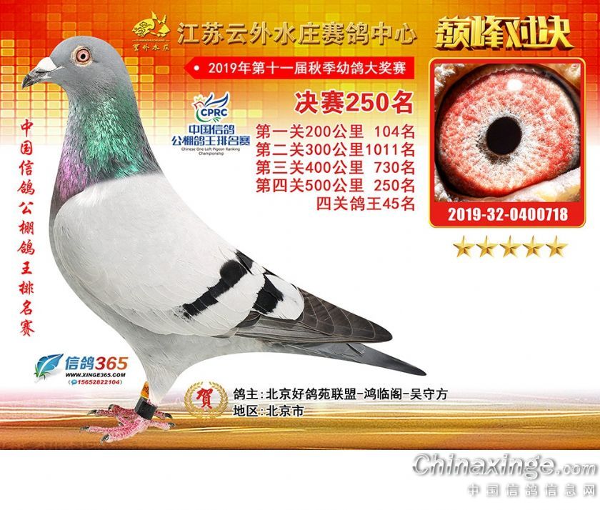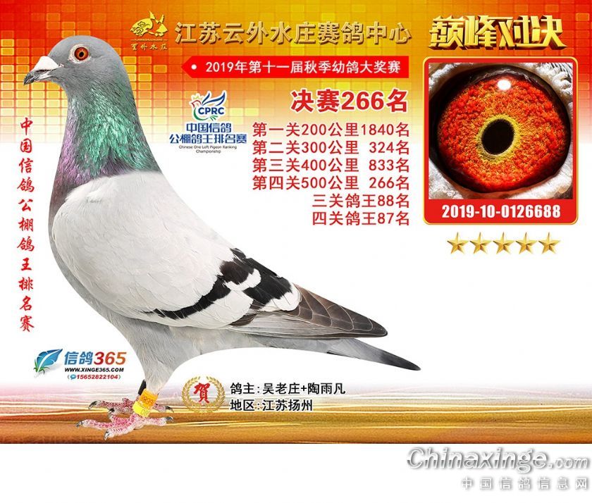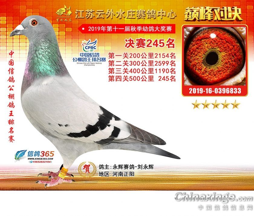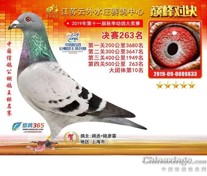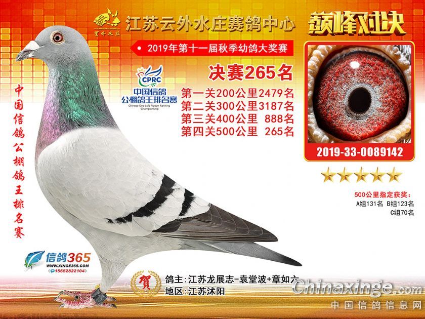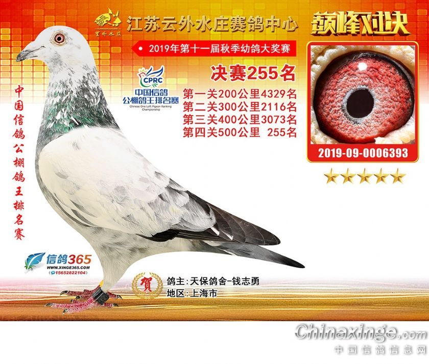作品说明: 江苏云外水庄赛鸽中心2019年获奖鸽241-270名