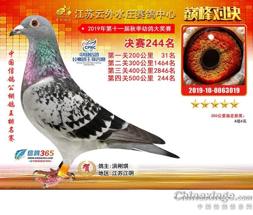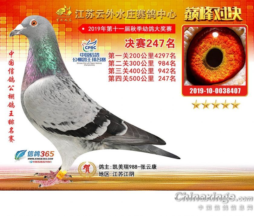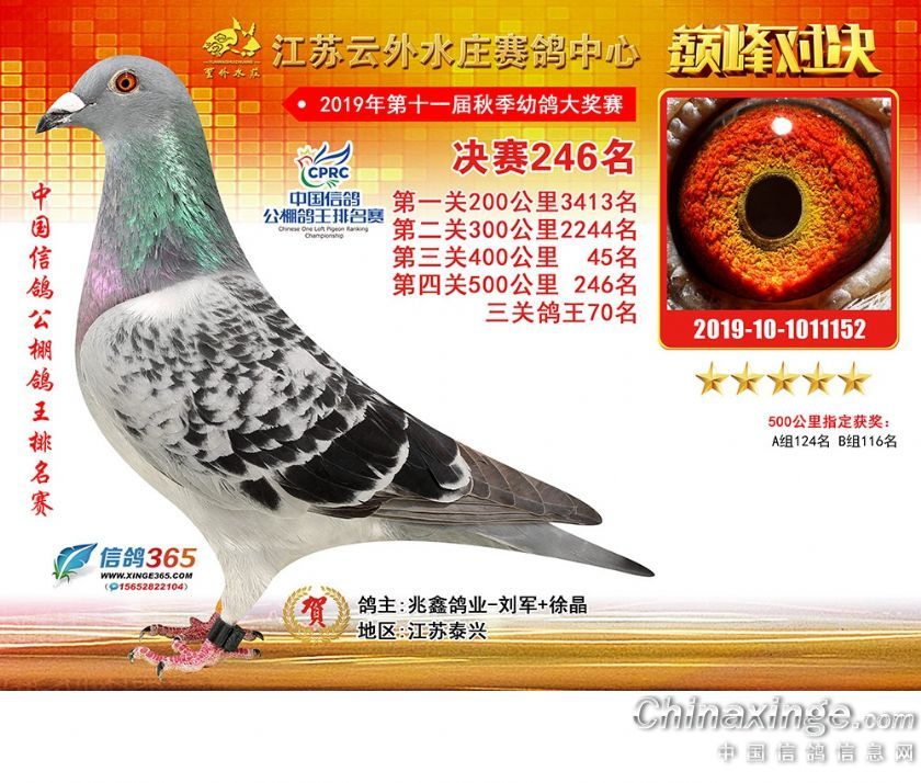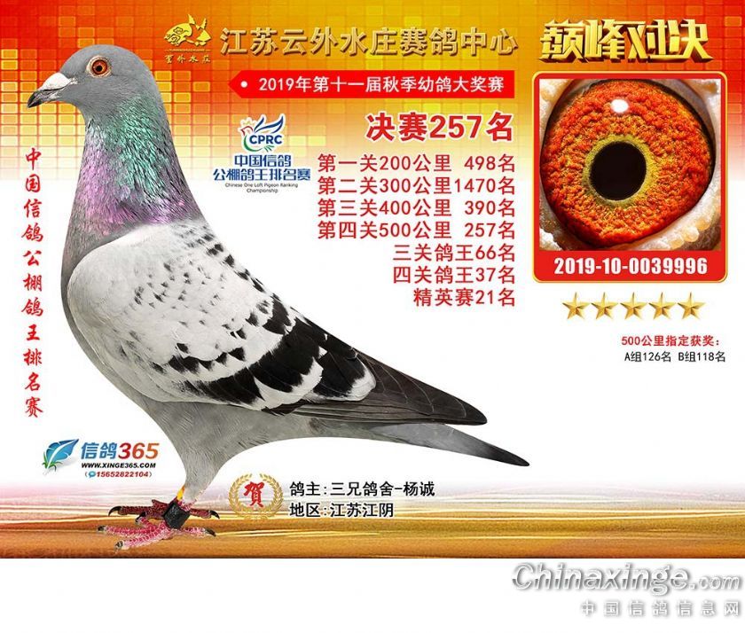 江苏云外水庄赛鸽中心2019年获奖鸽241-270名